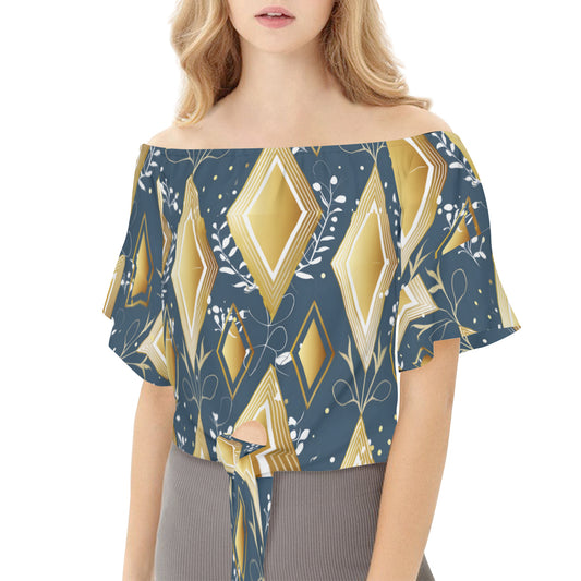 Golden Branches Women's One-shoulder Tie Short Sleeves T-shirt