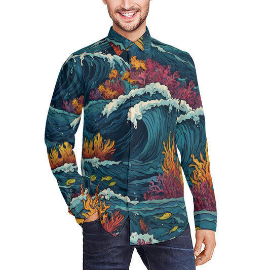 Ocean Waves Men's Classic Long-Sleeved Shirt | Polyester