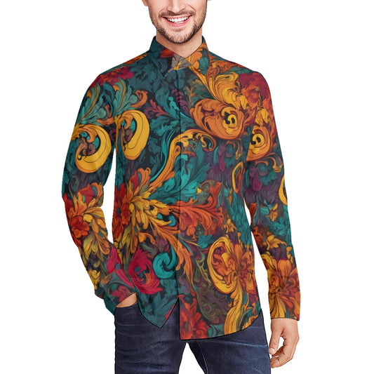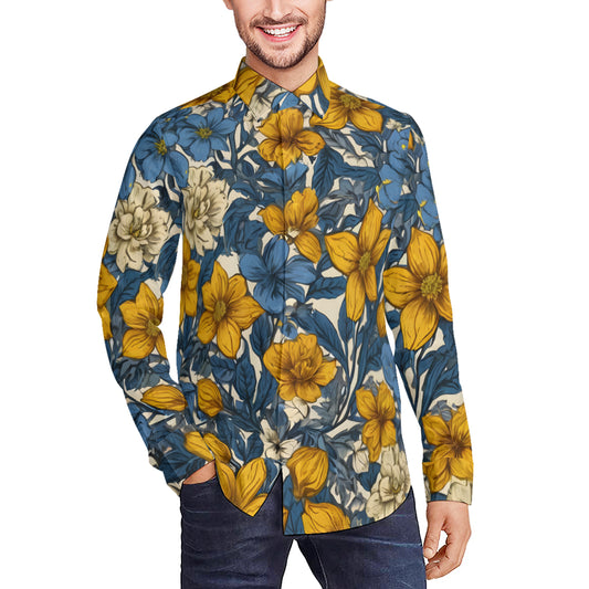 Beautiful Floral Men's Classic Long-Sleeved Shirt | Polyester