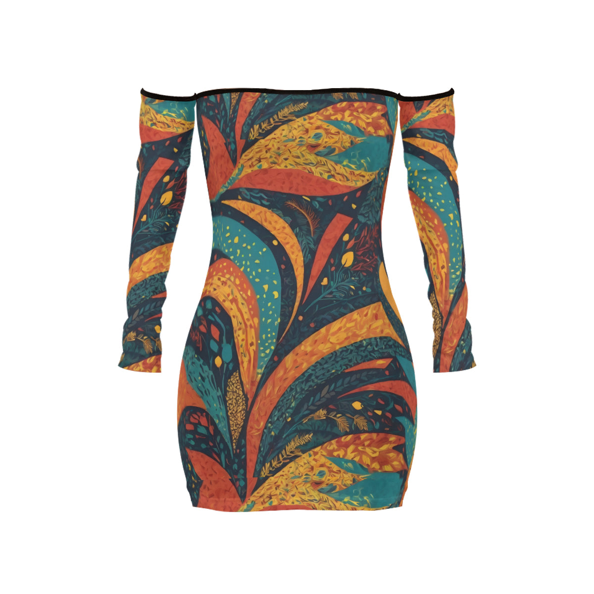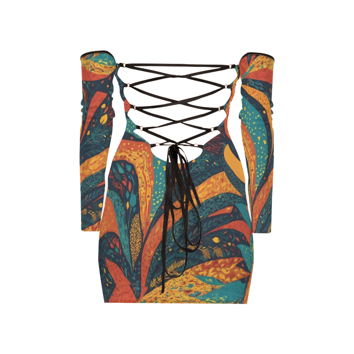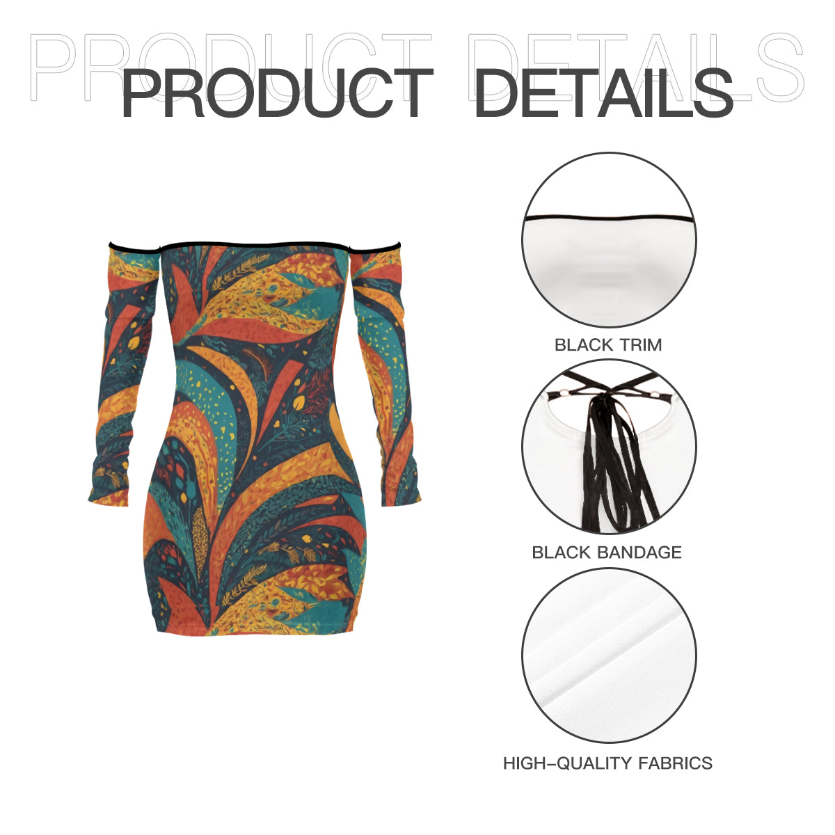 Abstract Beauty Women's Off-shoulder Back Lace-up Dress | Polyester