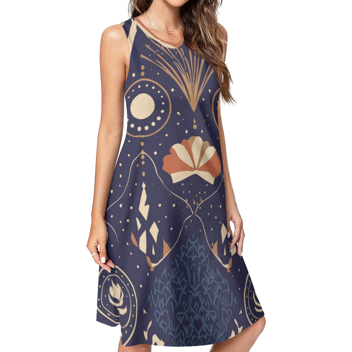 - Casual and comfortable, cool and breathable, unique all-over print sleeveless dress