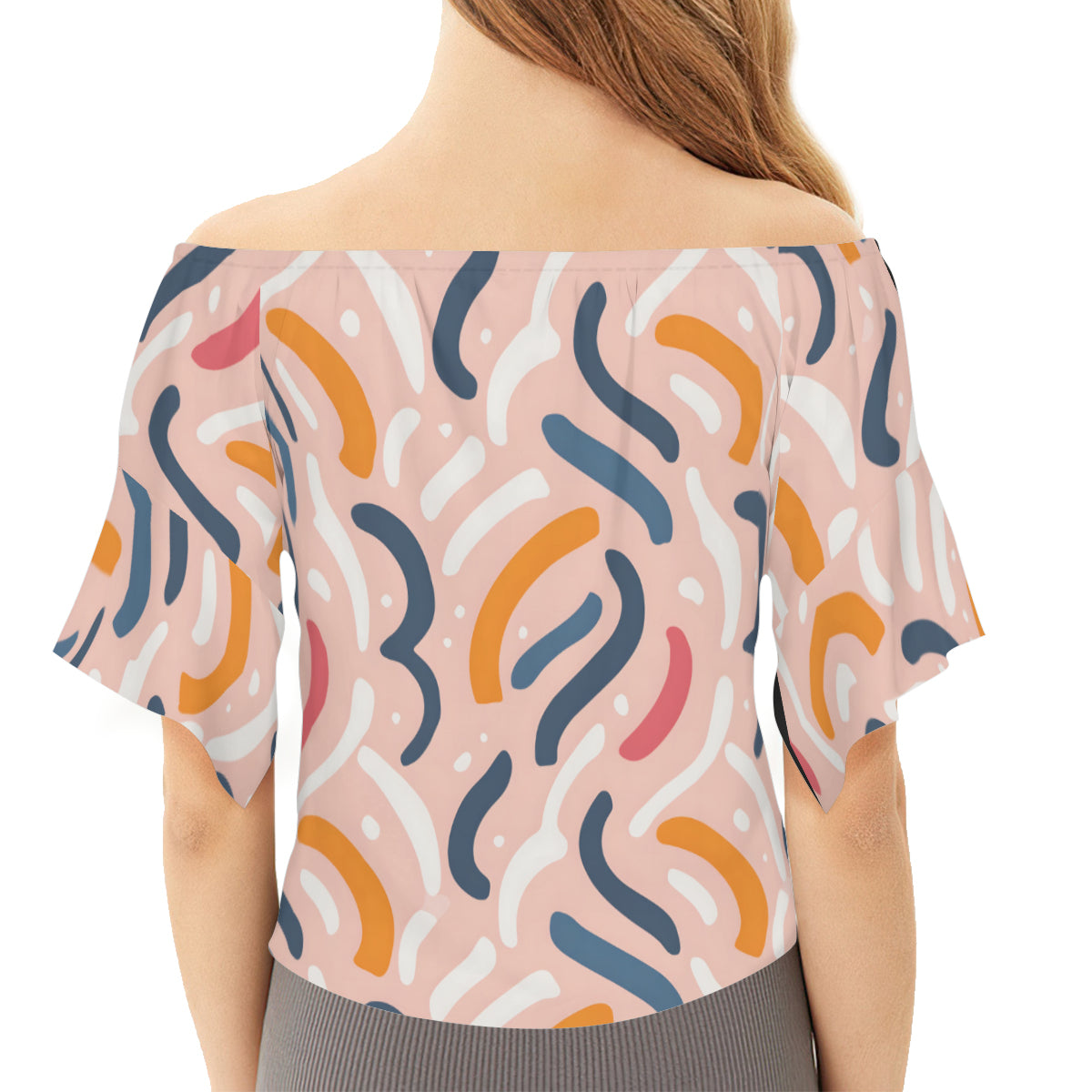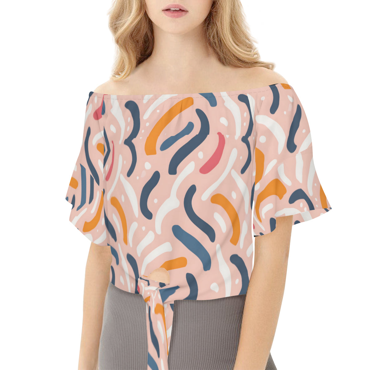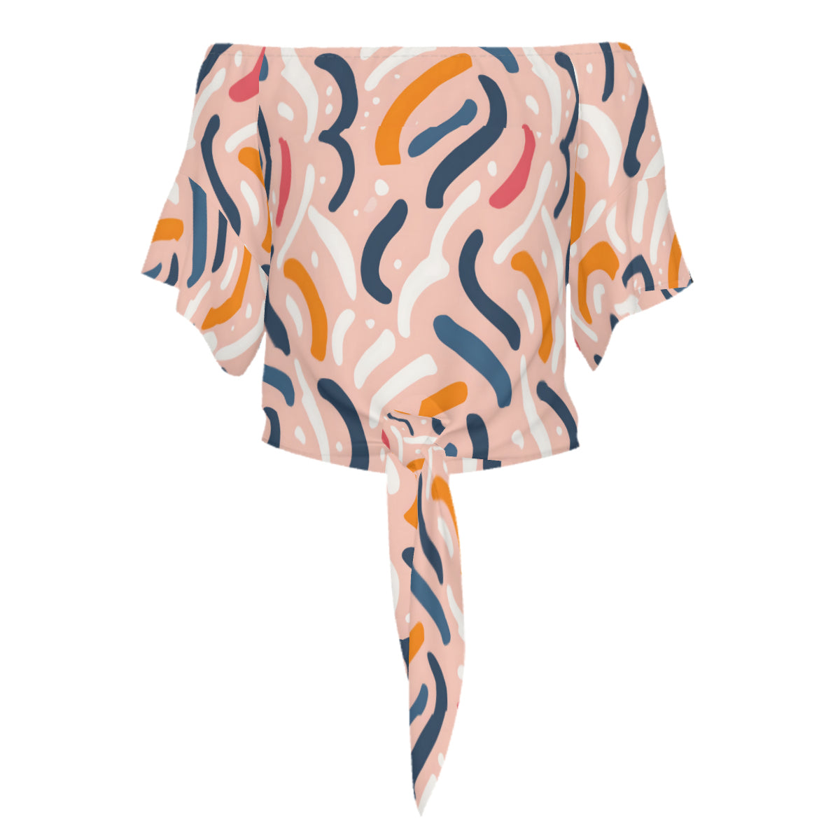 Design area: All-Over Print Abstract Design Women's One-shoulder Tie Short Sleeves T-shirt | Polyester
