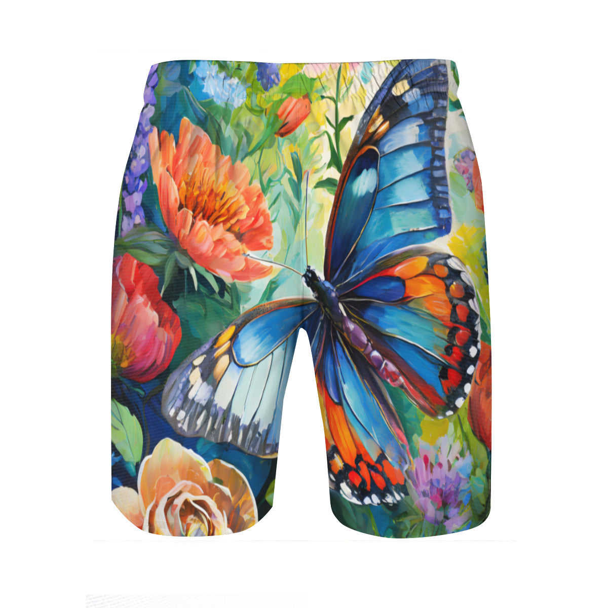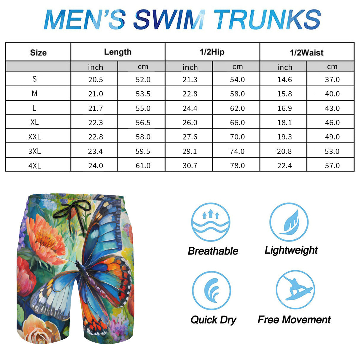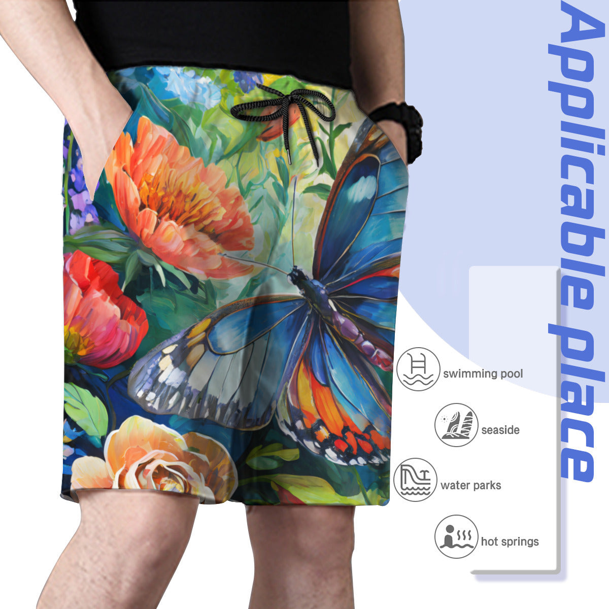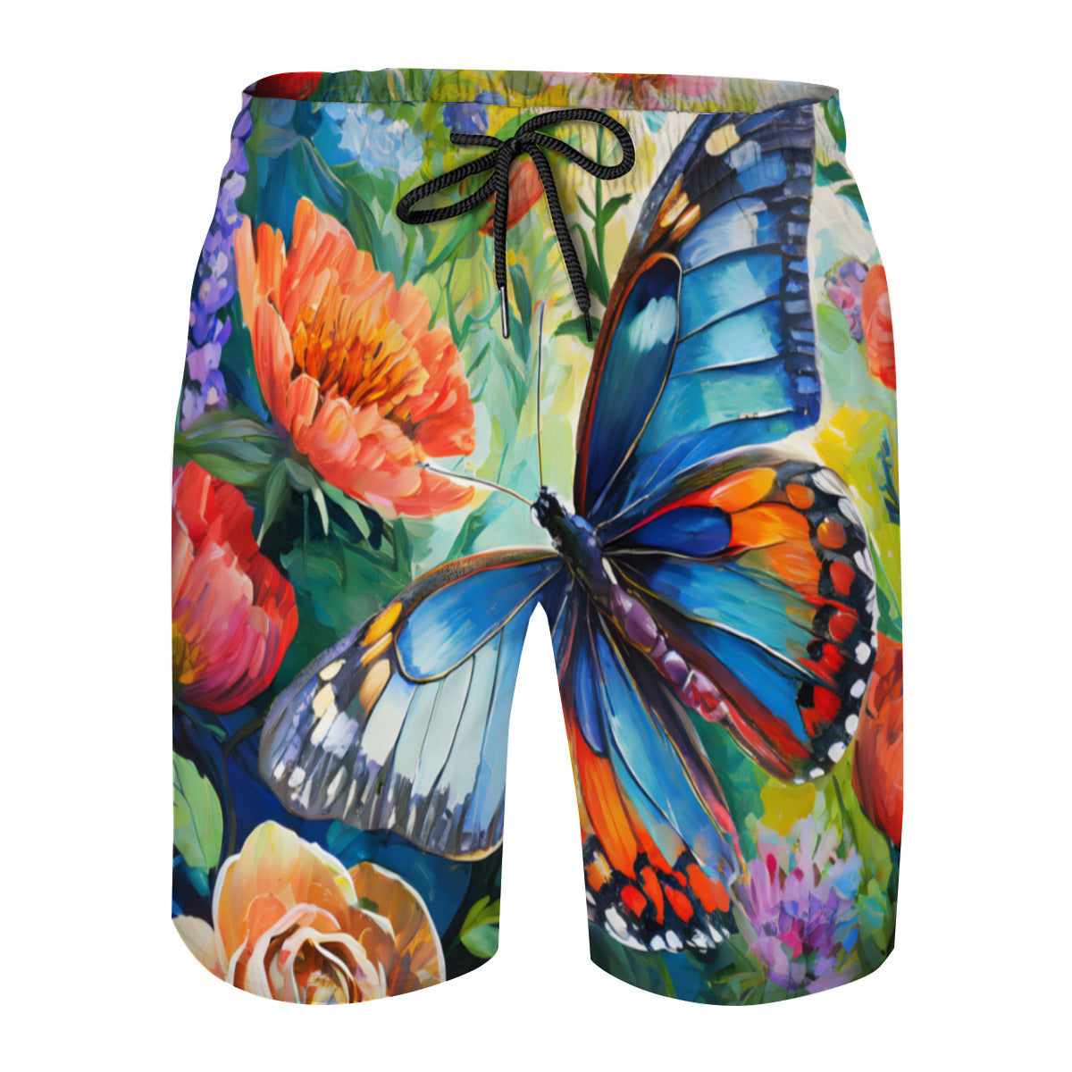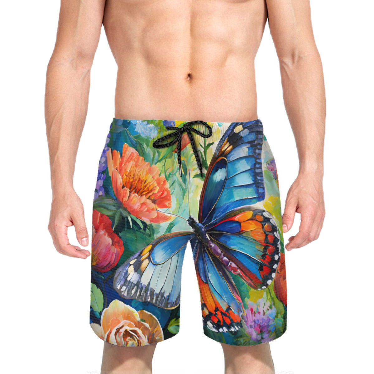 Abstract Floral Men's Beach Shorts (Not Mesh Lined) | Polyester