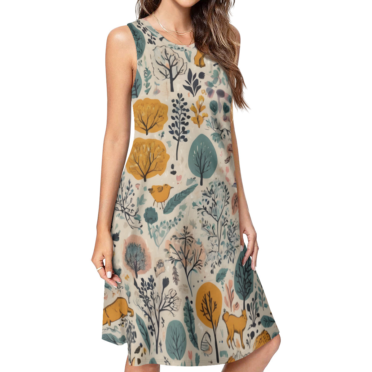 - Casual and comfortable, cool and breathable, unique all-over print sleeveless dress
