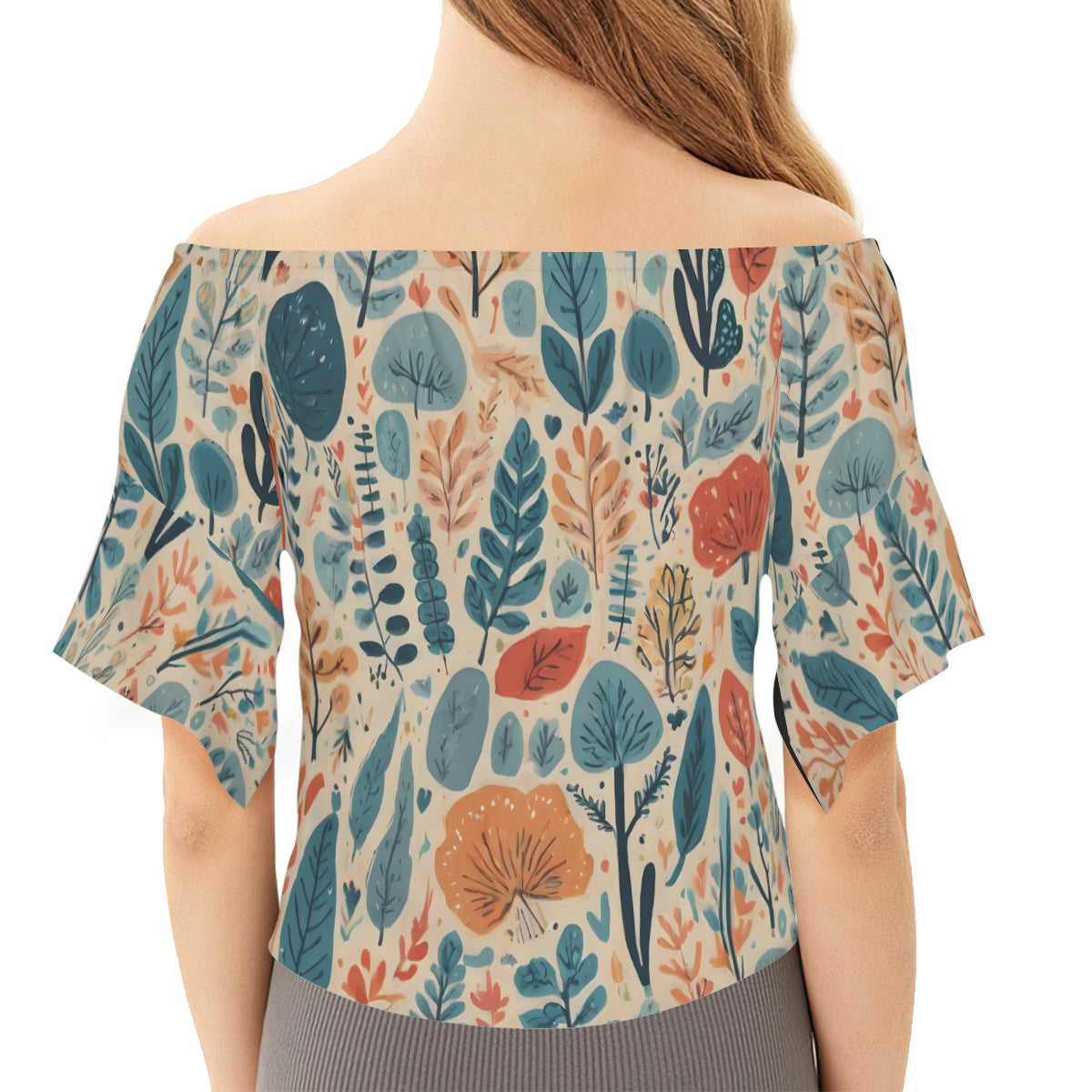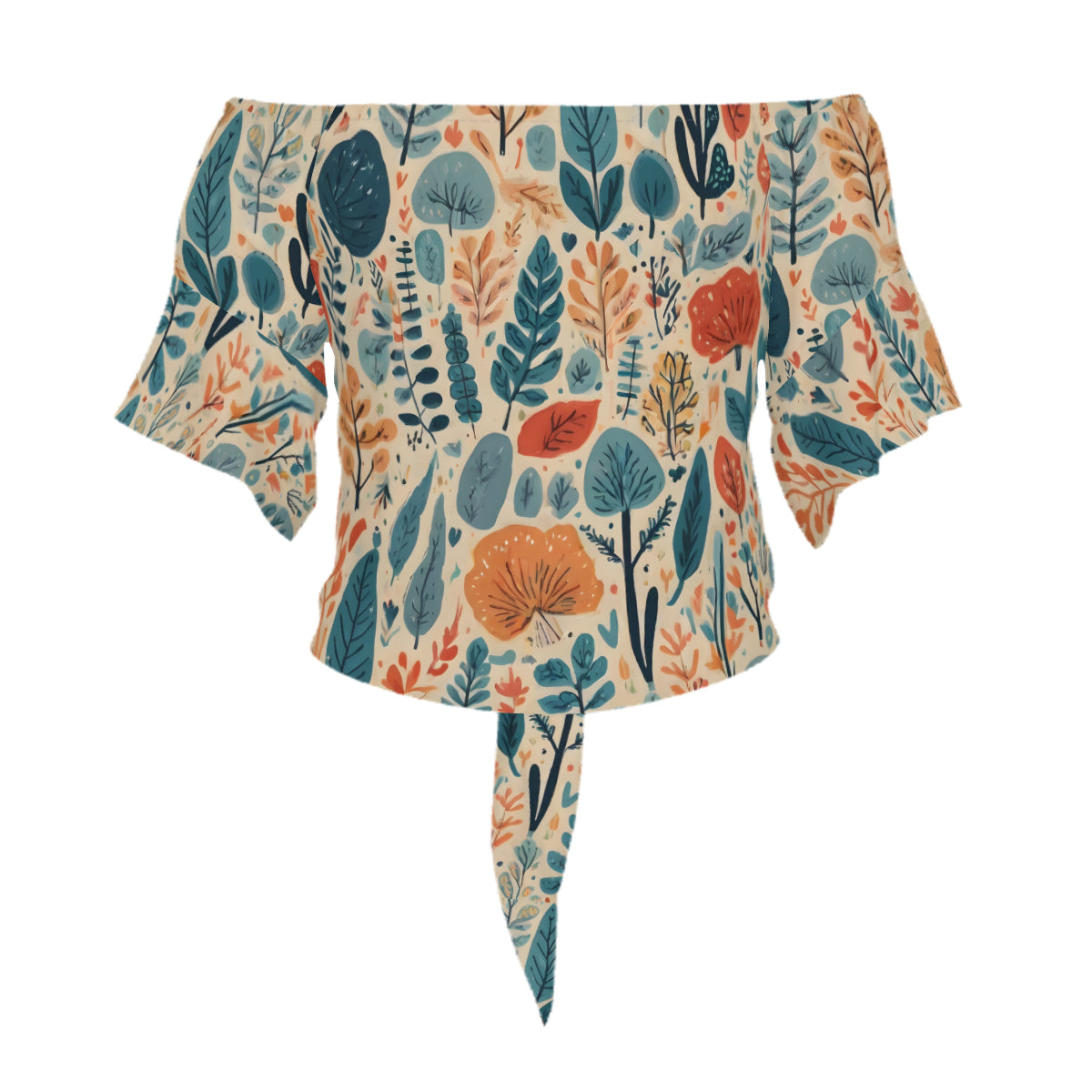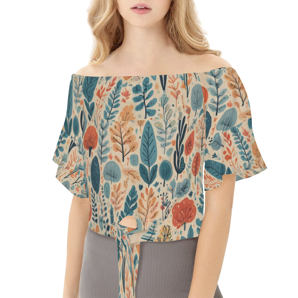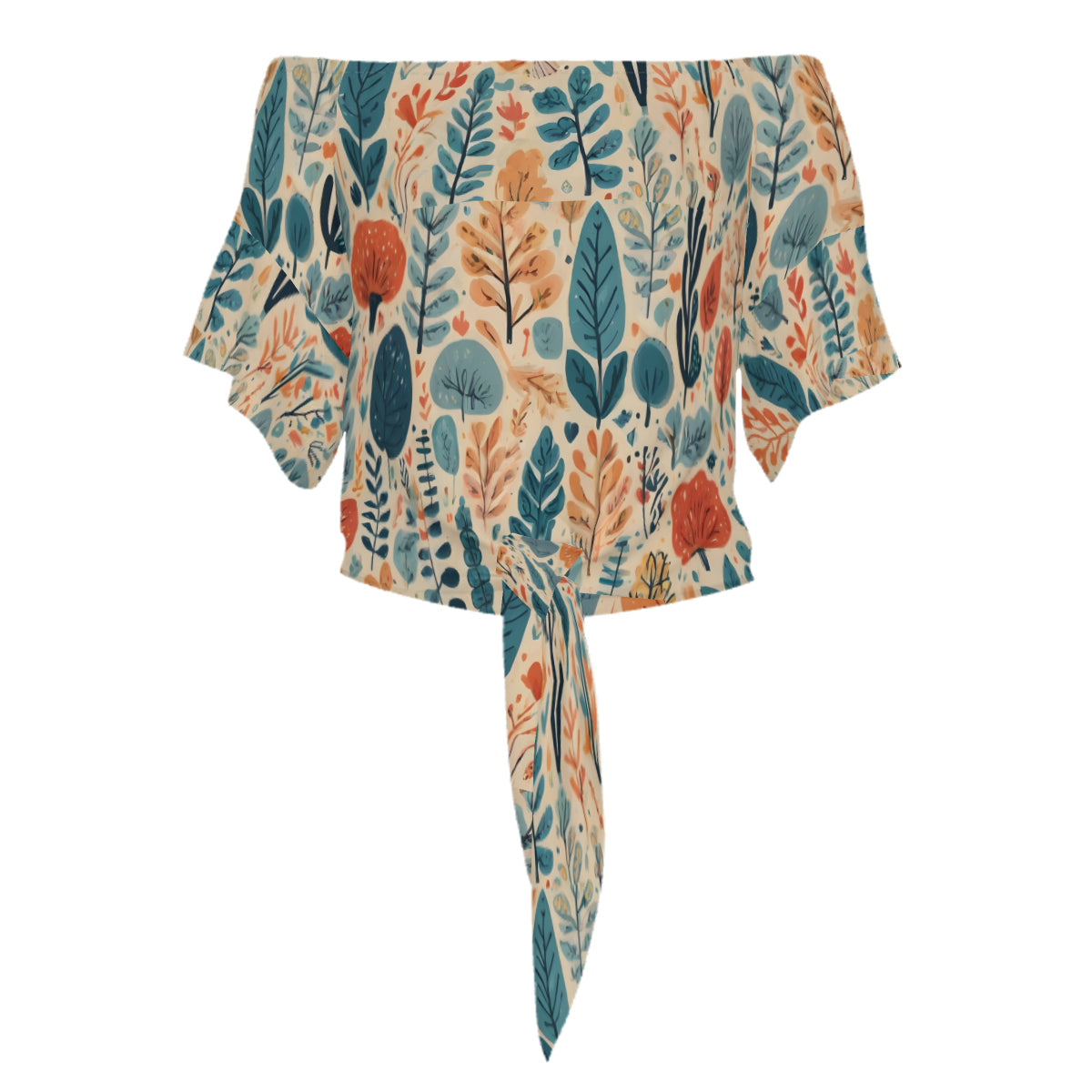 Abstract Floral Women's One-shoulder Tie Short Sleeves T-shirt | Polyester