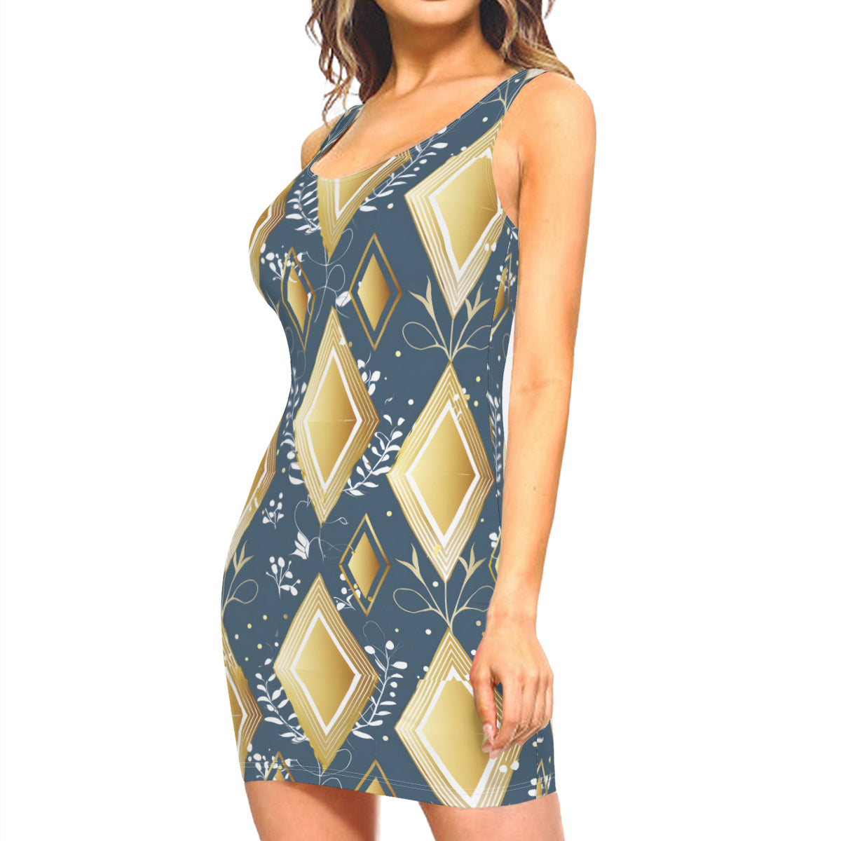 Abstract Gold Sleeveless Slim-Fit Euro-Size Tank Slip Dress