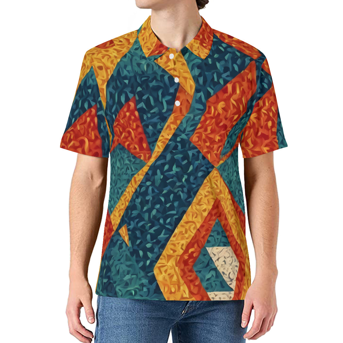 Abstract Pattern Men's Premium European Size POLO Shirt | 95% Polyester+5% Spandex