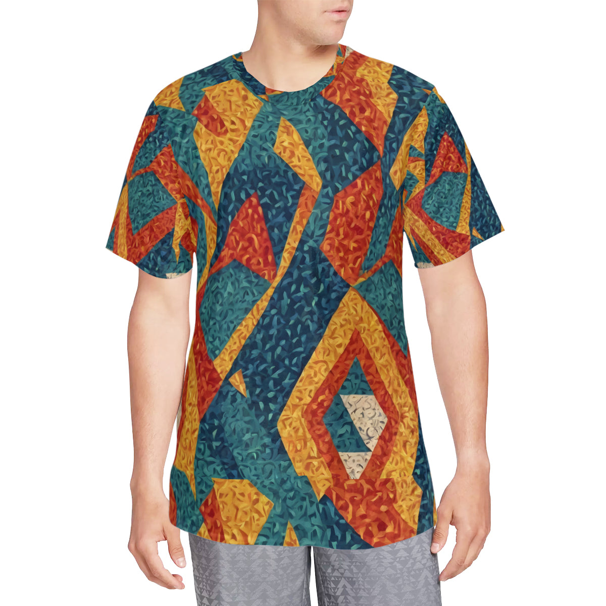 Design area: All-Over Print Abstract Pattern O-Neck Vintage Men's T-Shirt | Velvet