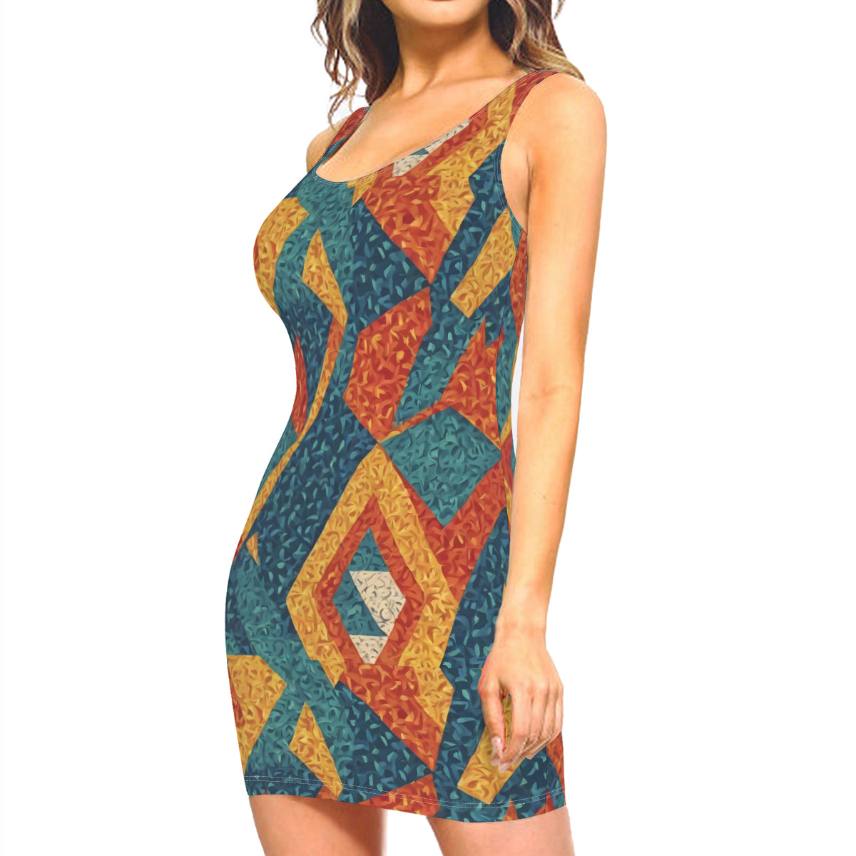 Abstract Pattern Sleeveless Slim-Fit Euro-Size Tank Slip Dress | Polyester