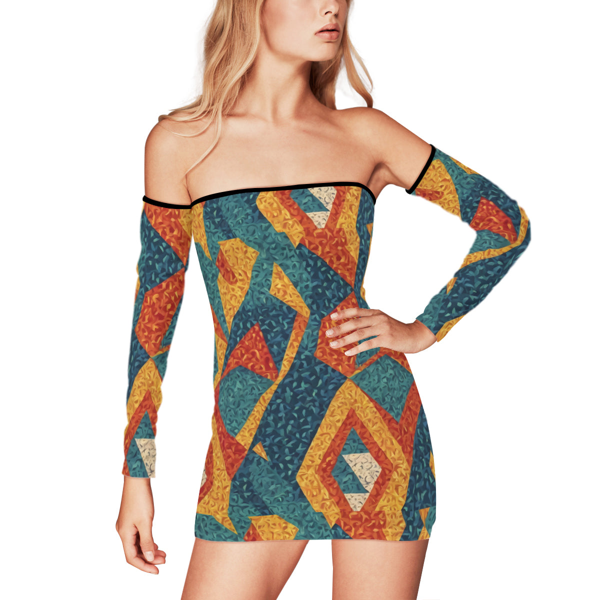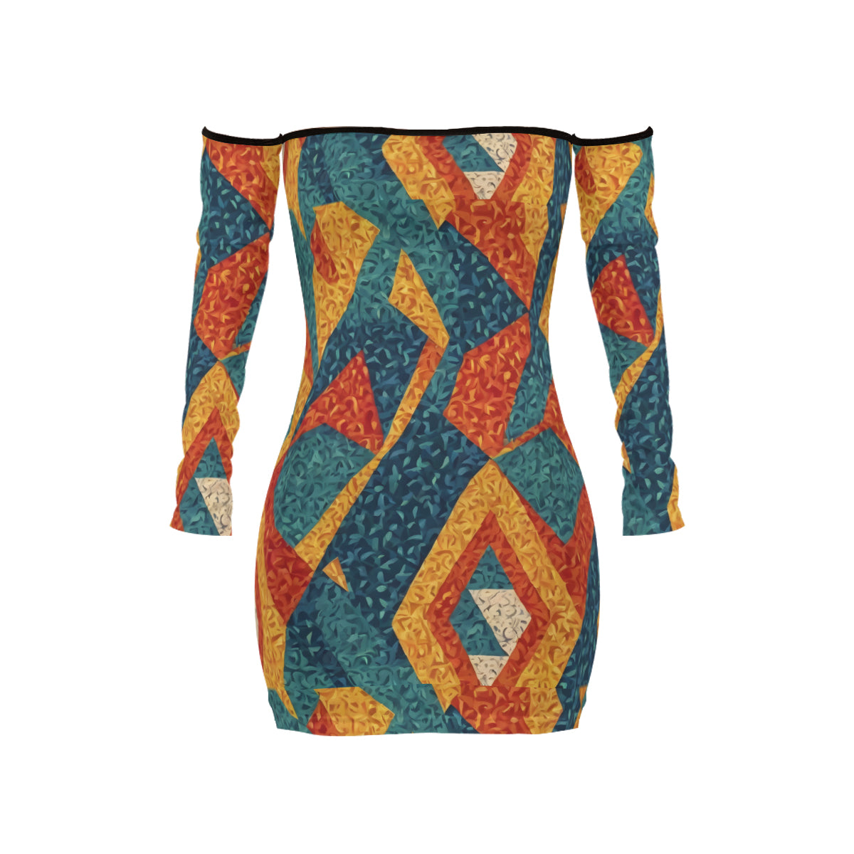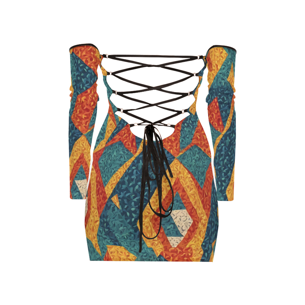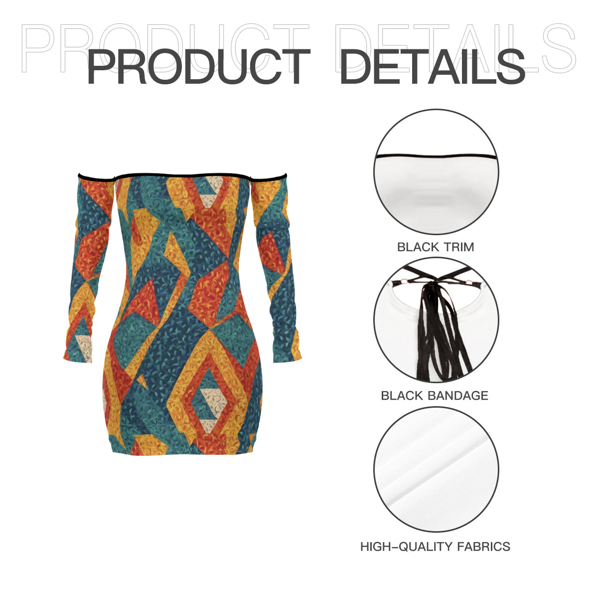 Abstract Pattern Women's Off-shoulder Back Lace-up Dress | Polyester