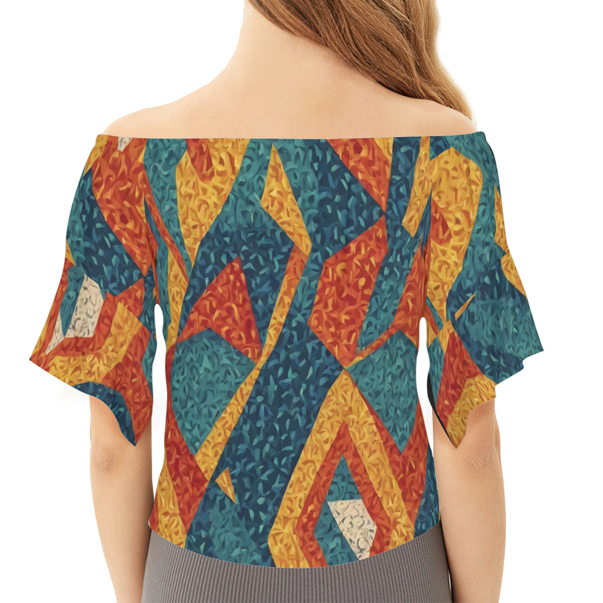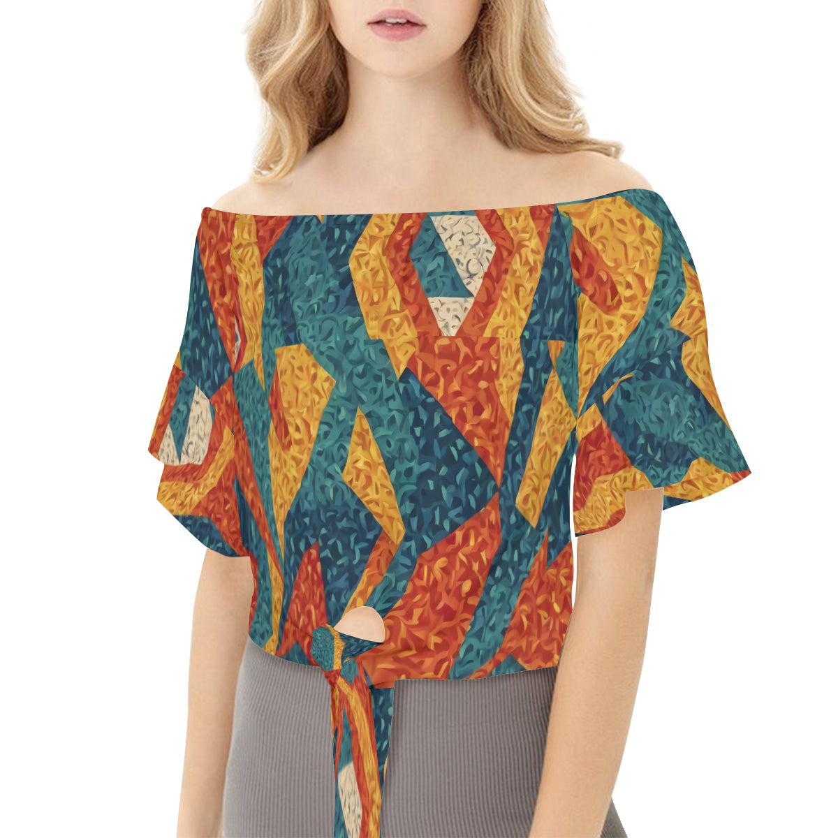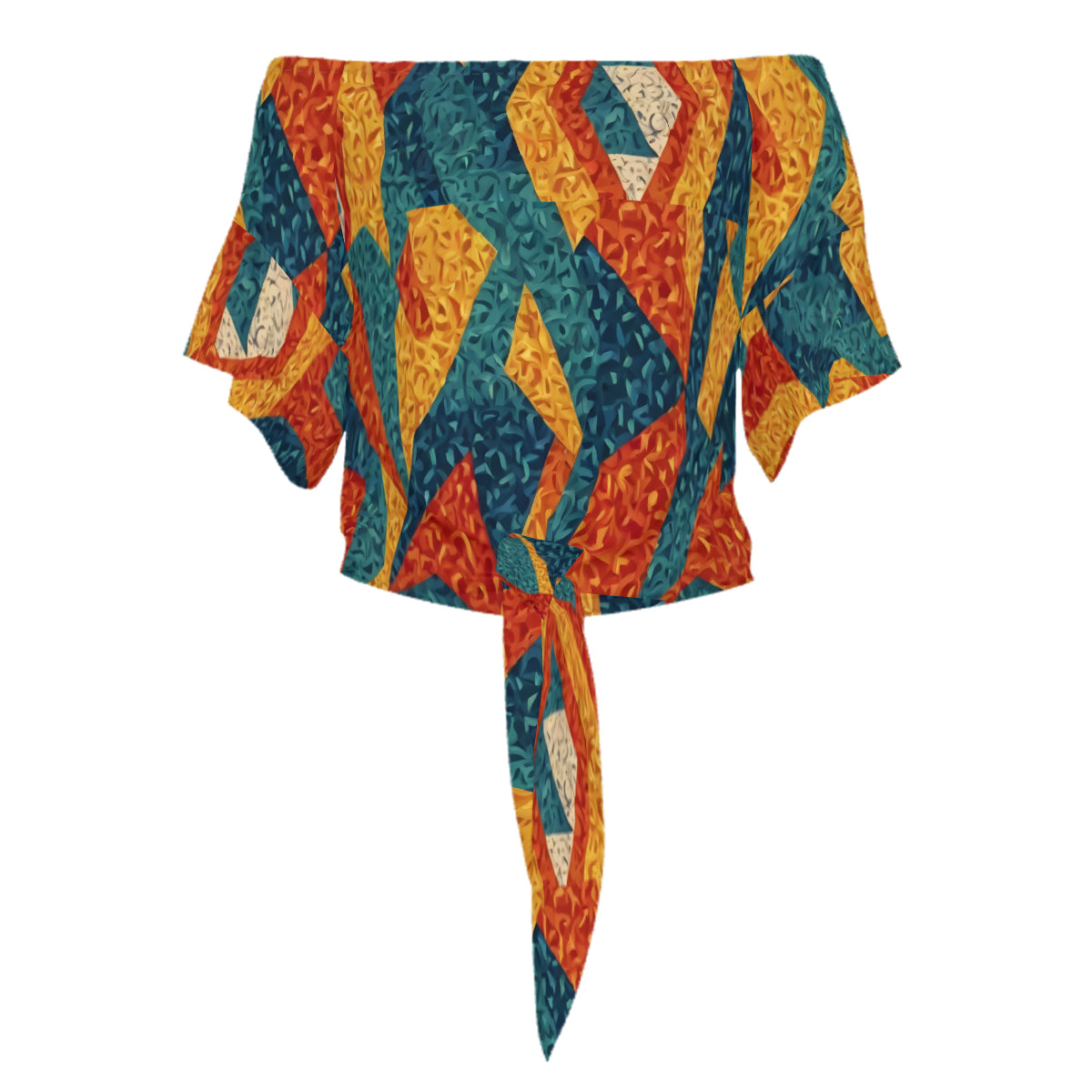 Abstract Pattern Women's One-shoulder Tie Short Sleeves T-shirt | Polyester