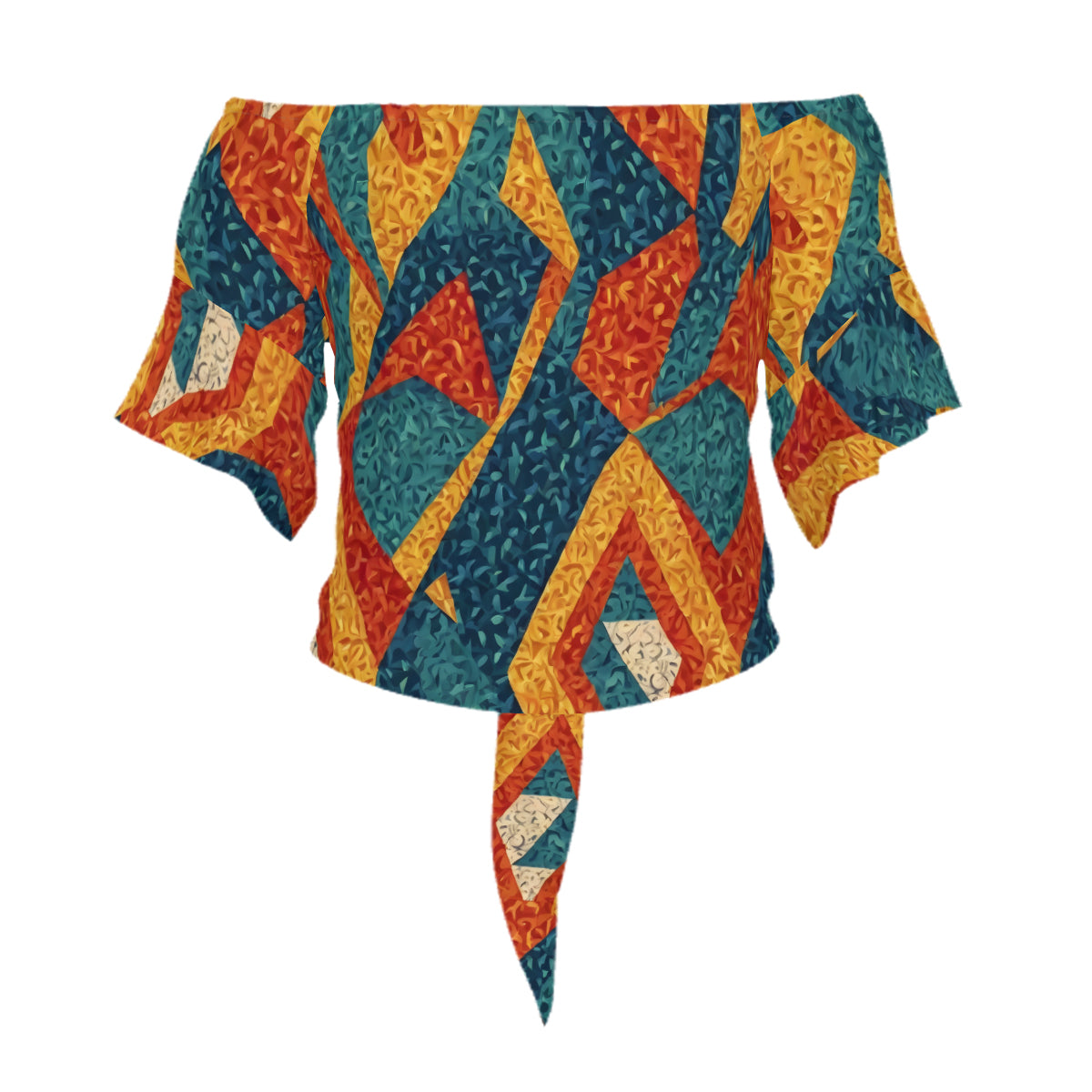 Design area: All-Over Print Abstract Pattern Women's One-shoulder Tie Short Sleeves T-shirt | Polyester