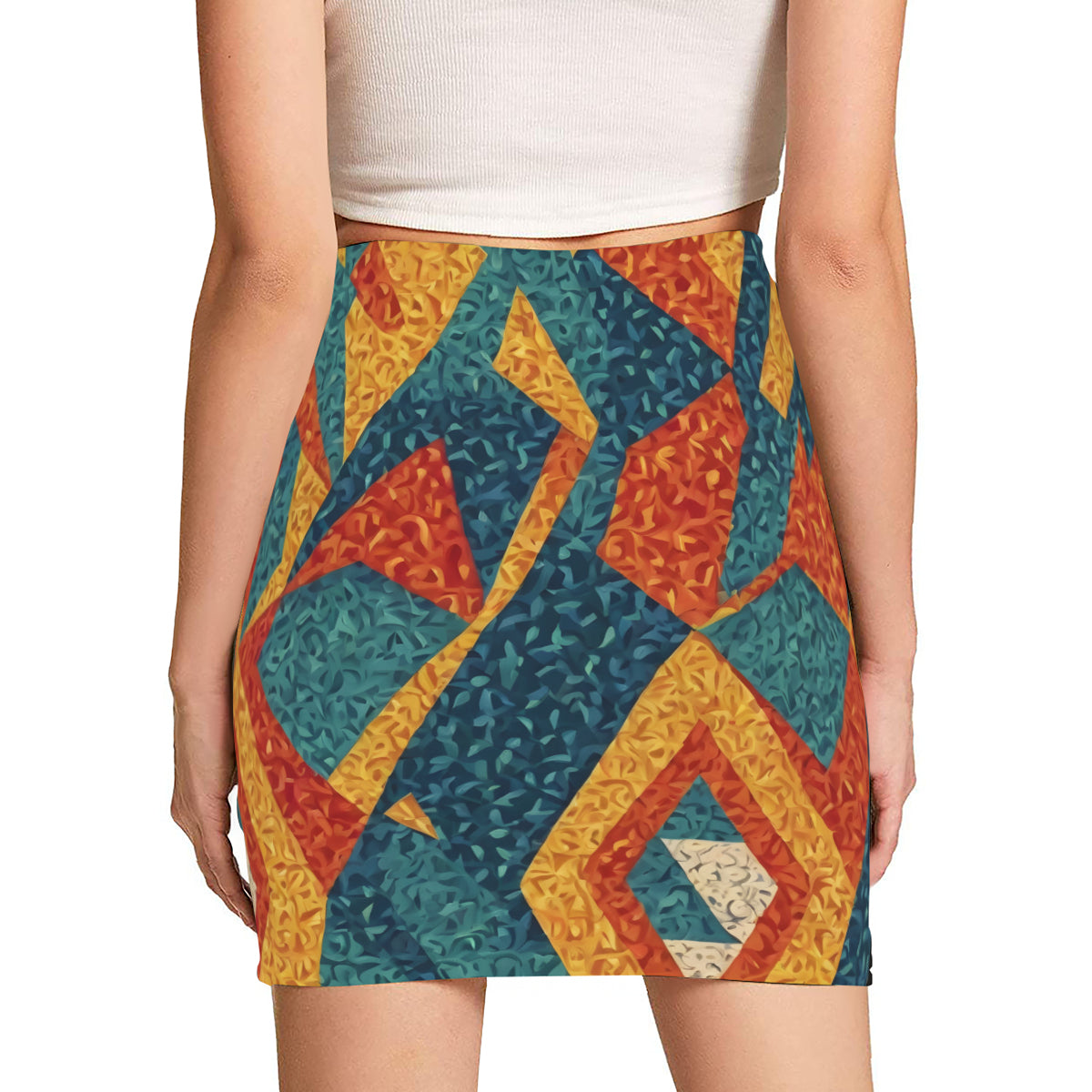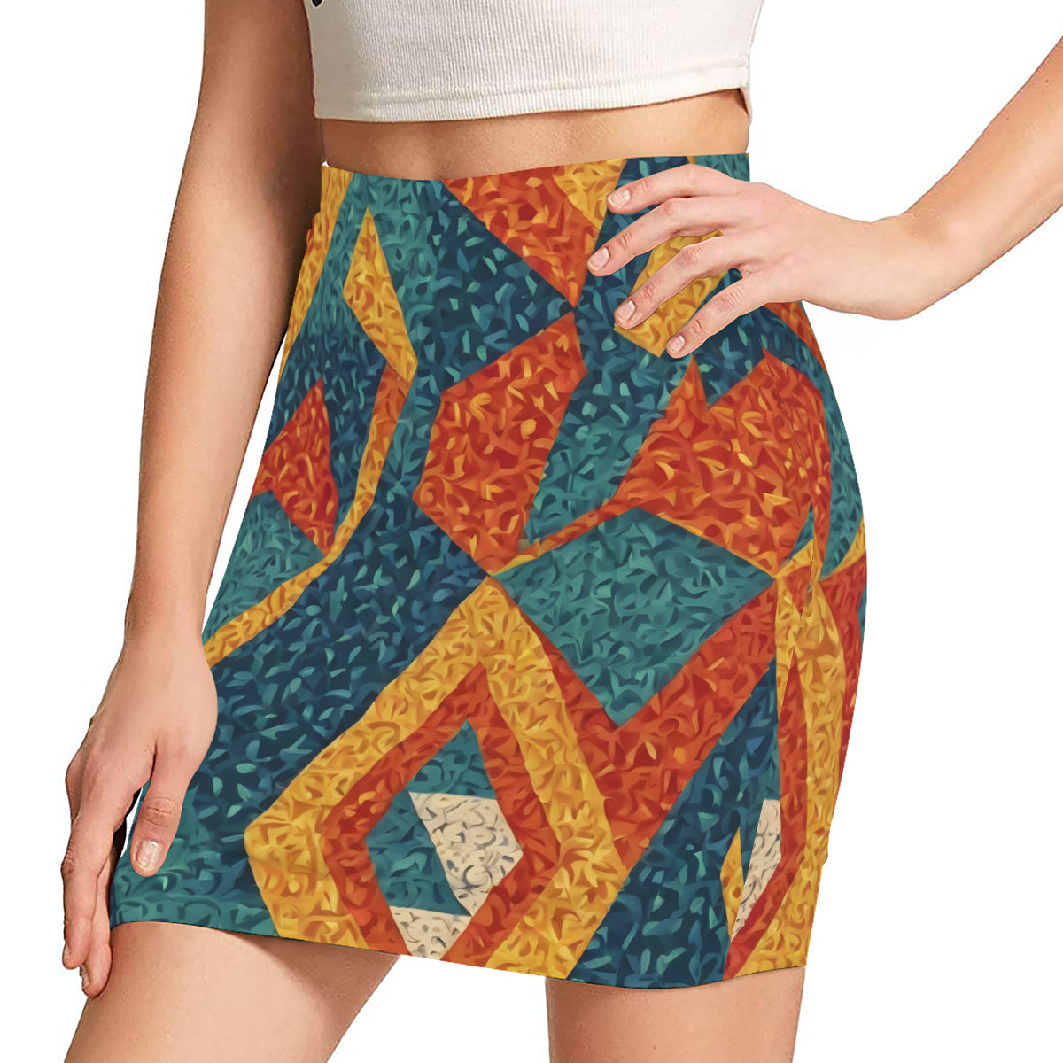 Abstract Pattern Wrap Hip Skirt|Polyester