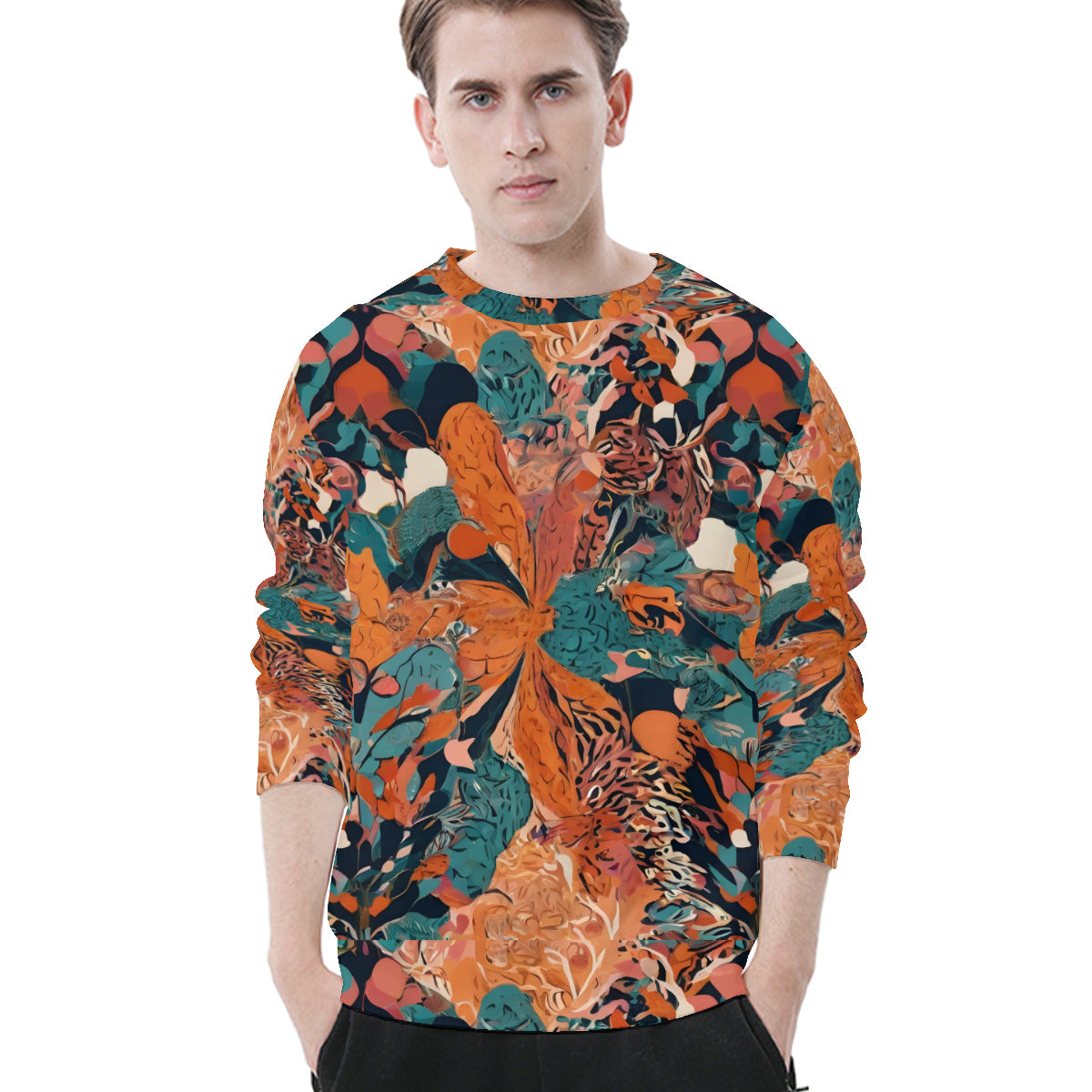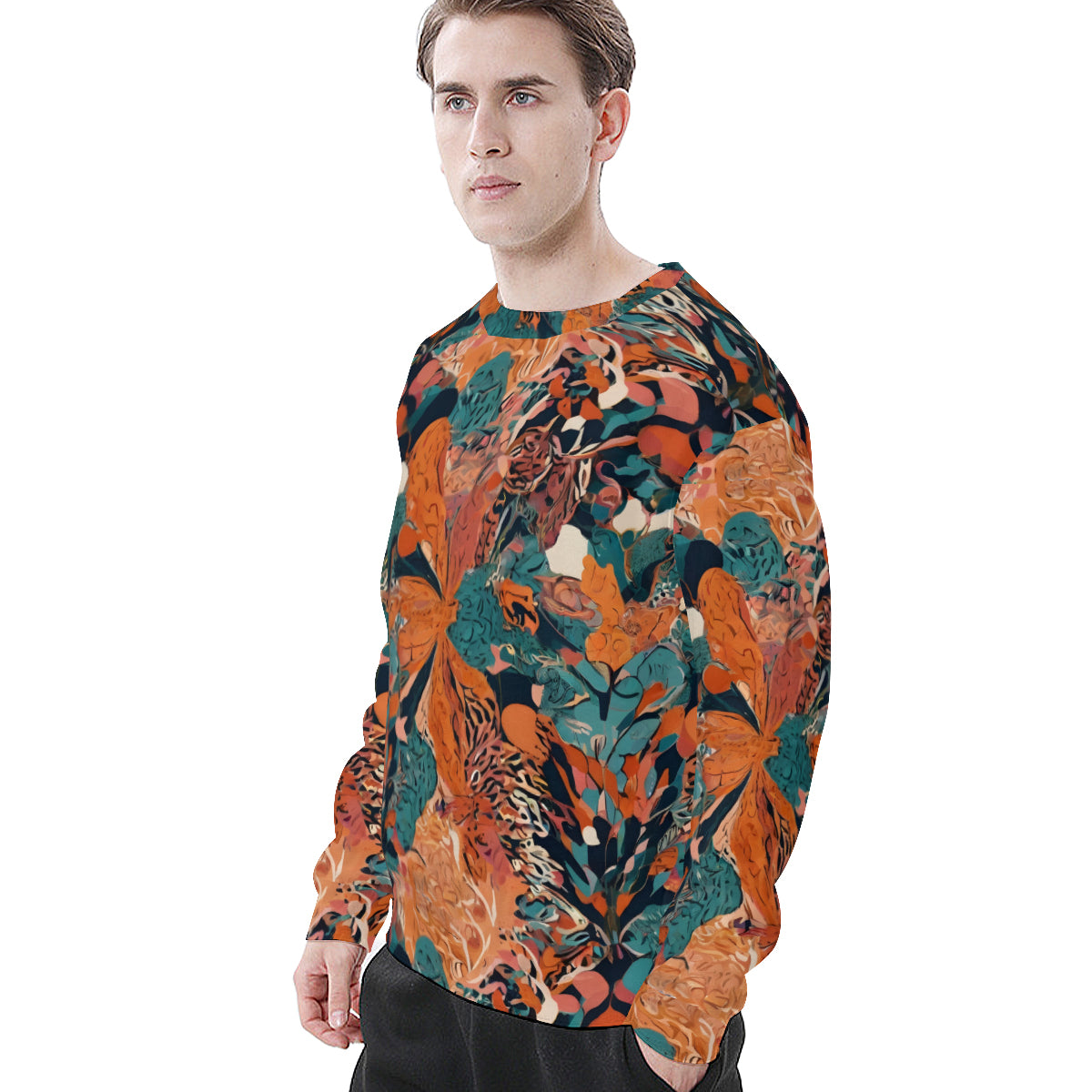 Design area: All-Over Print Abstract Vibes Men's O-Neck EU Size Long-Sleeved T-Shirt | 180GSM Cotton