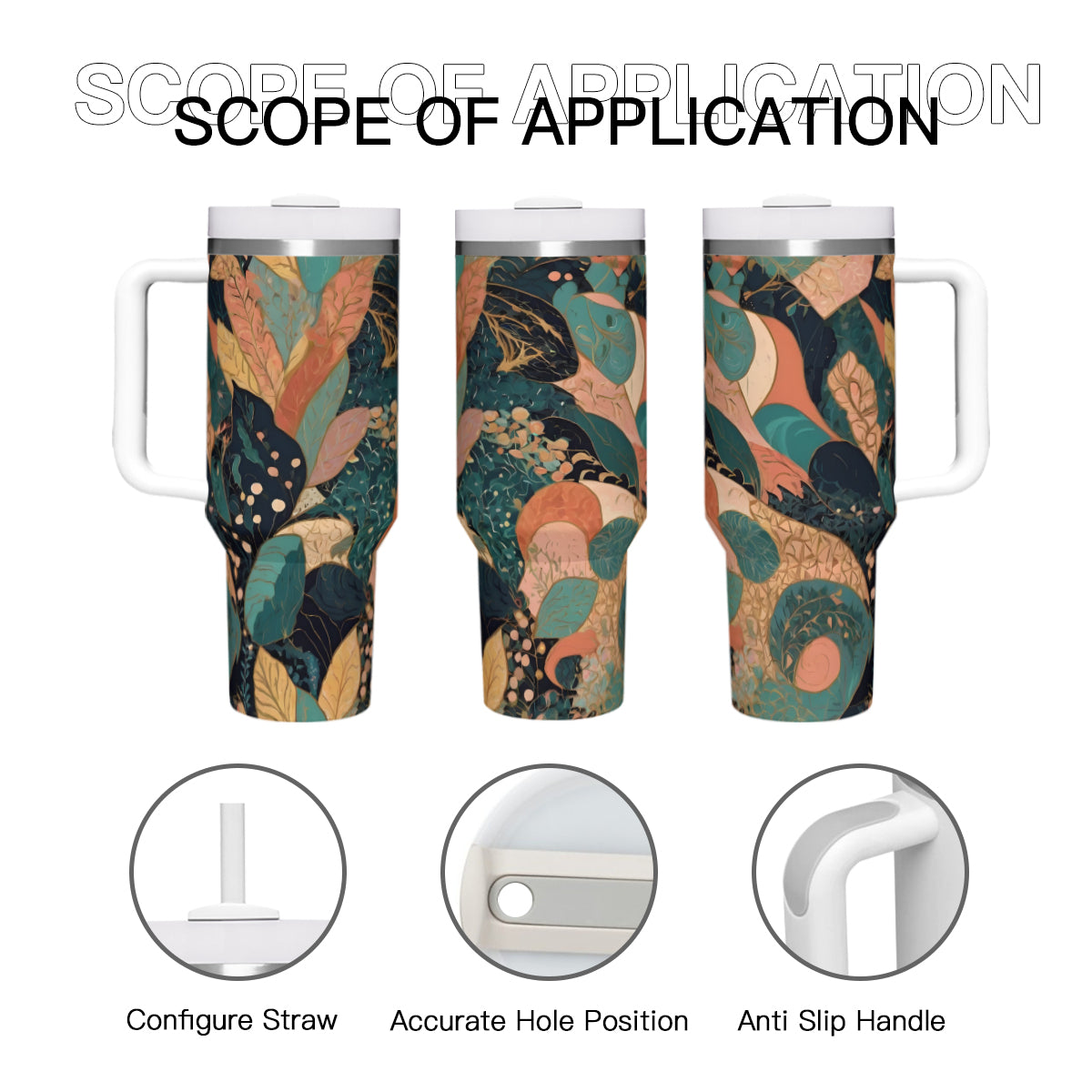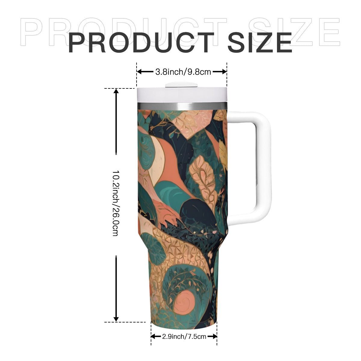 Design area: All-Over Print Abstract Wonder Large Capacity Tumbler with Handle(1100ml/40oz) | Stainless Steel 304