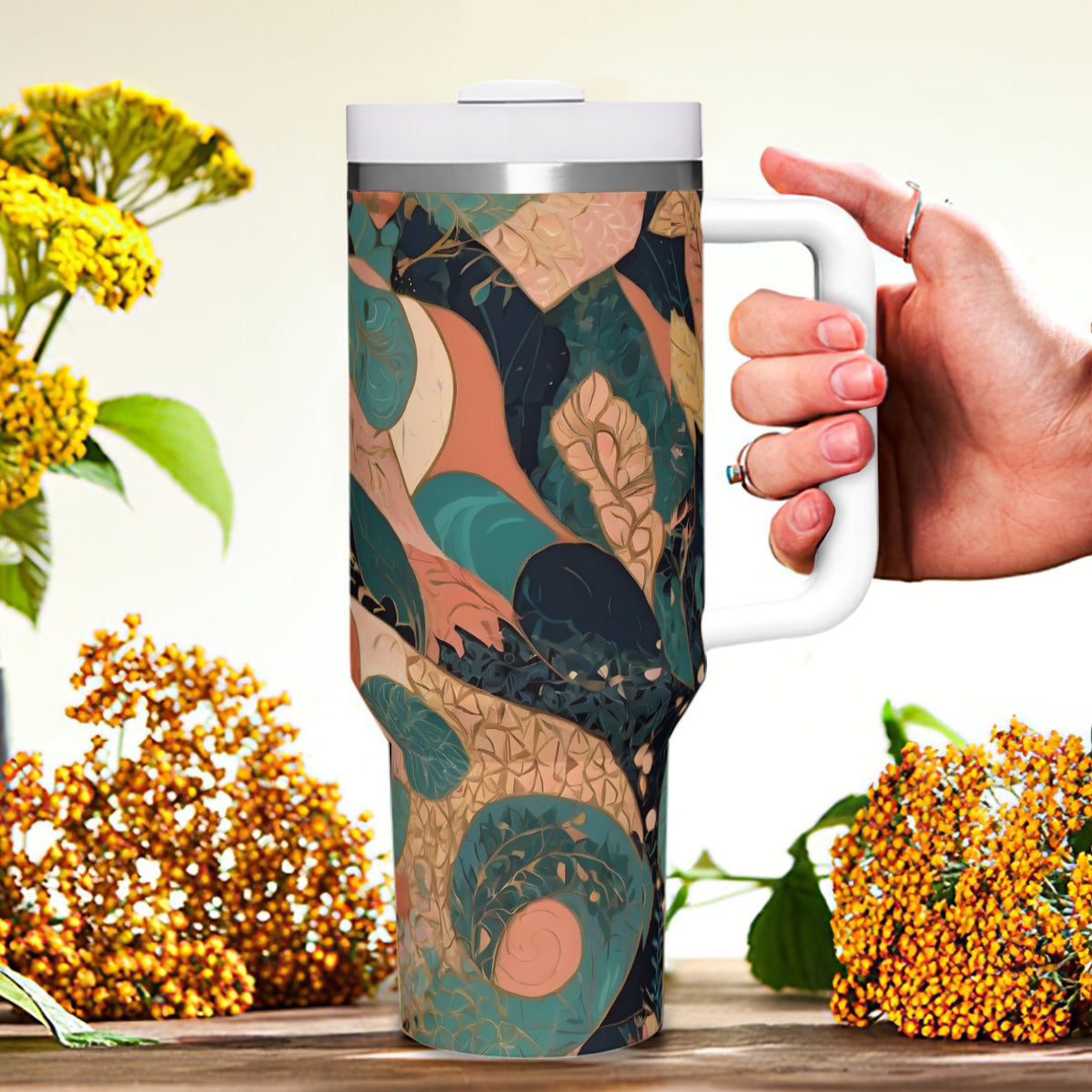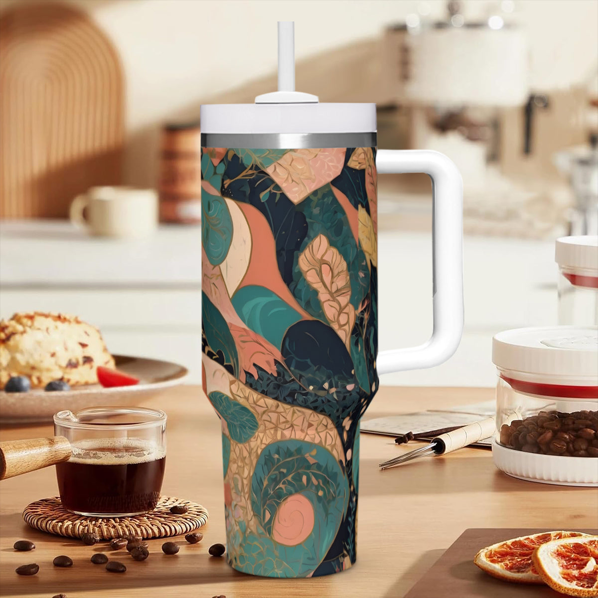 Abstract Wonder Large Capacity Tumbler with Handle