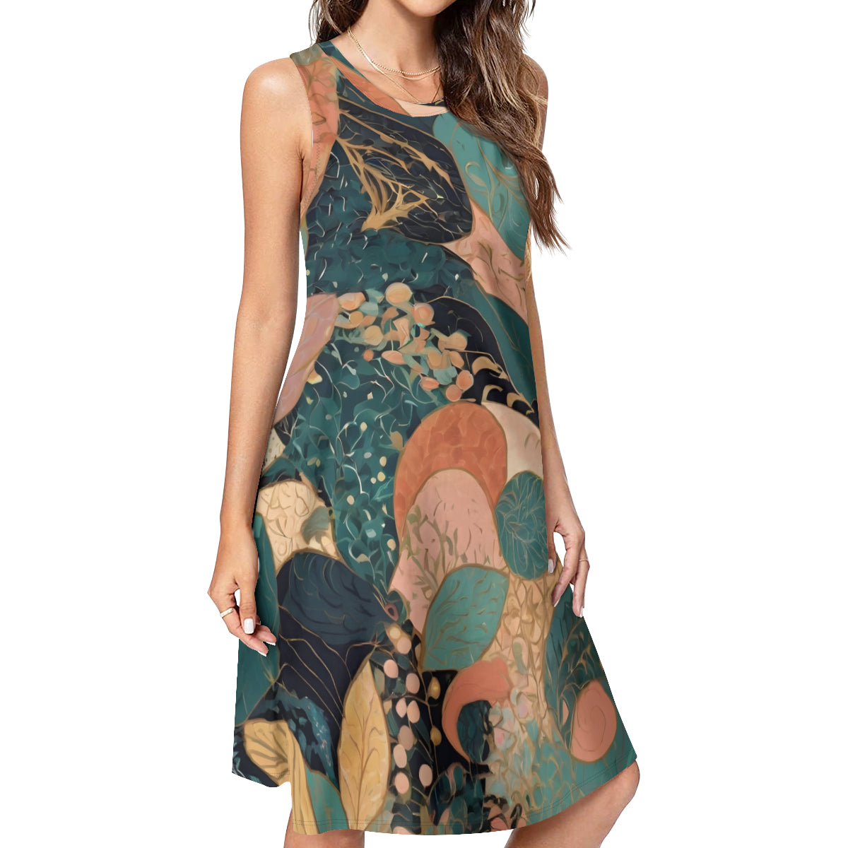 - Casual and comfortable, cool and breathable, unique all-over print sleeveless dress