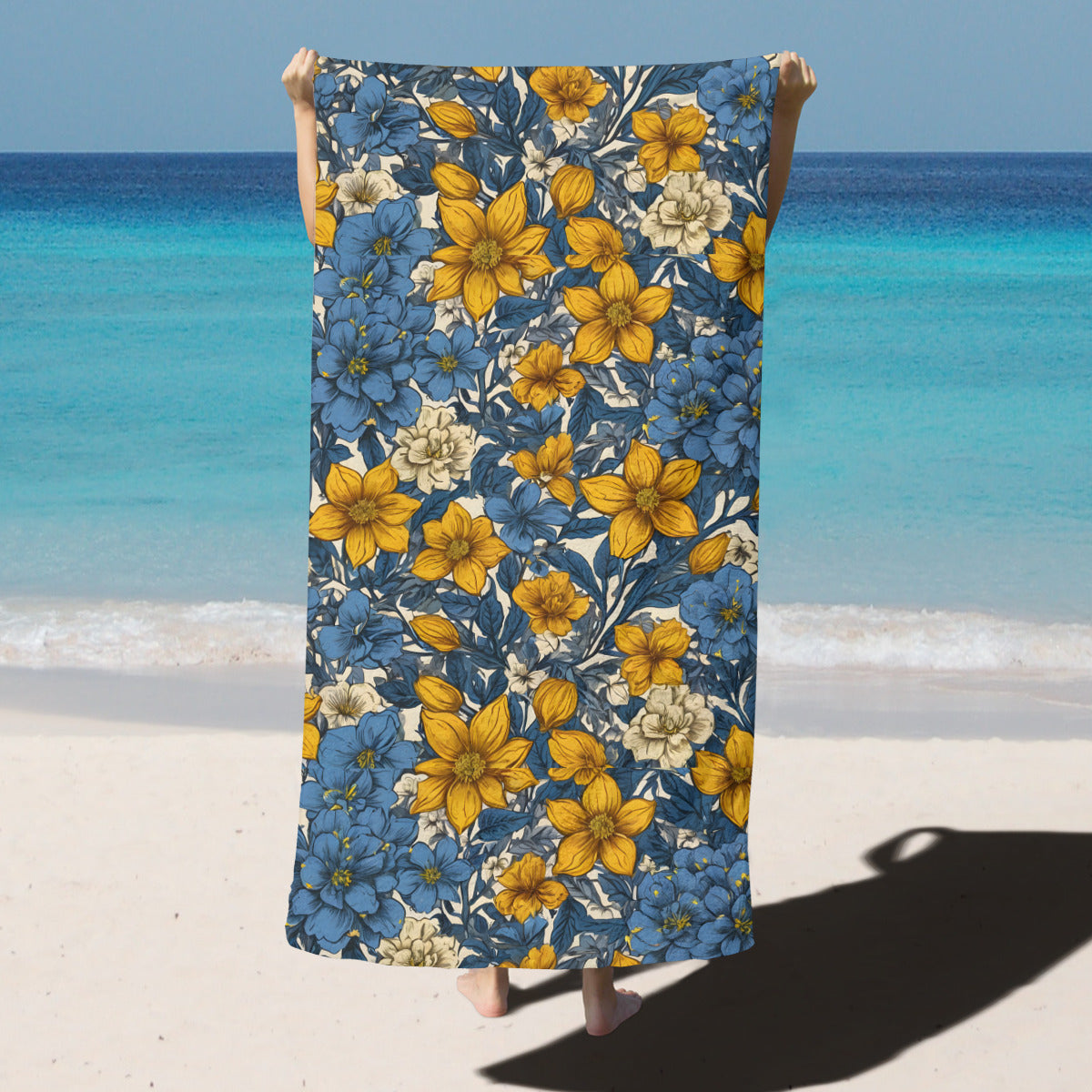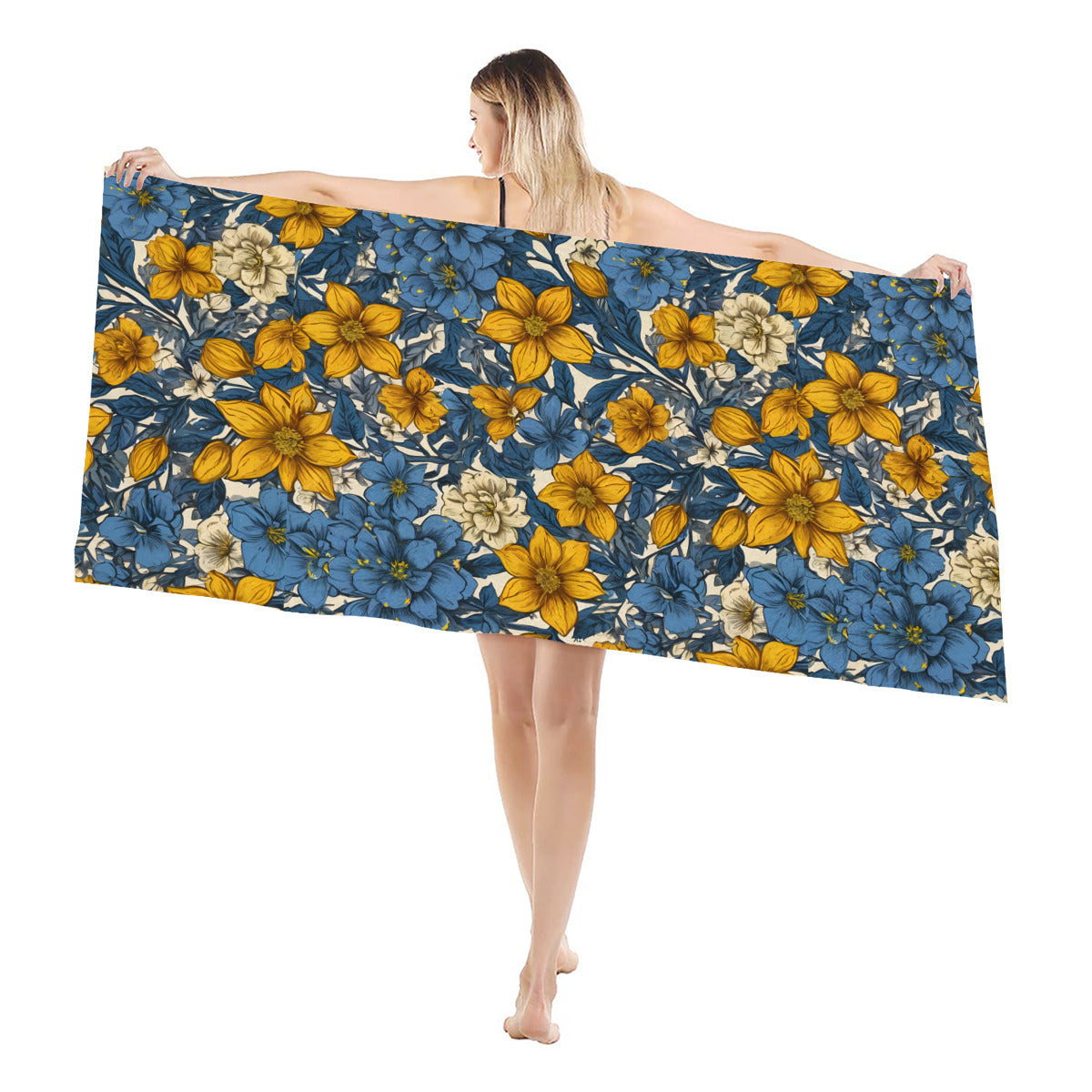 Design area: All-Over Print Abstract Yellow Floral Beach towel (comfortable model)|Polyester