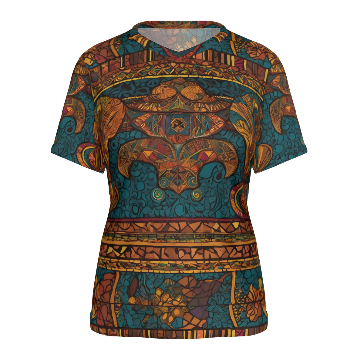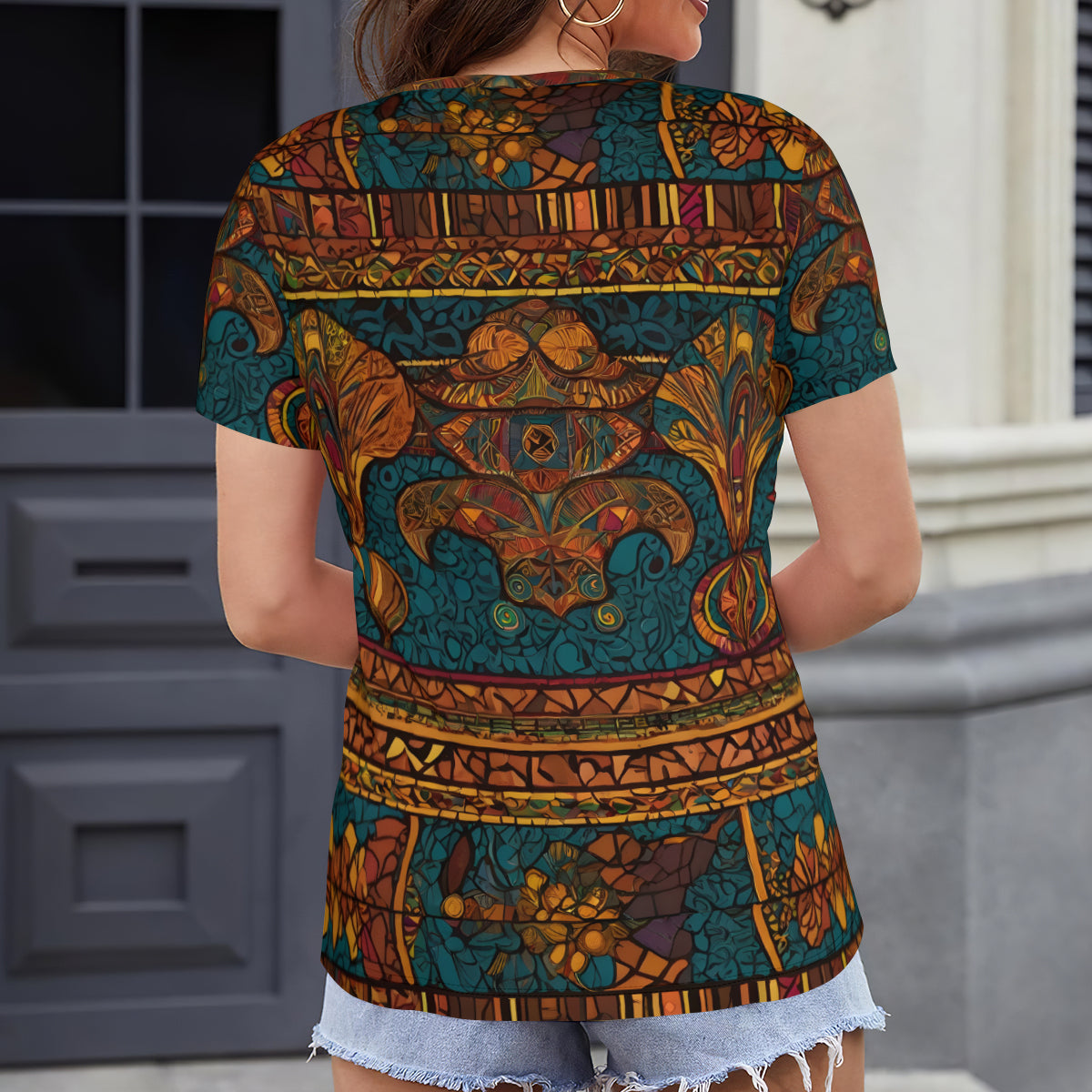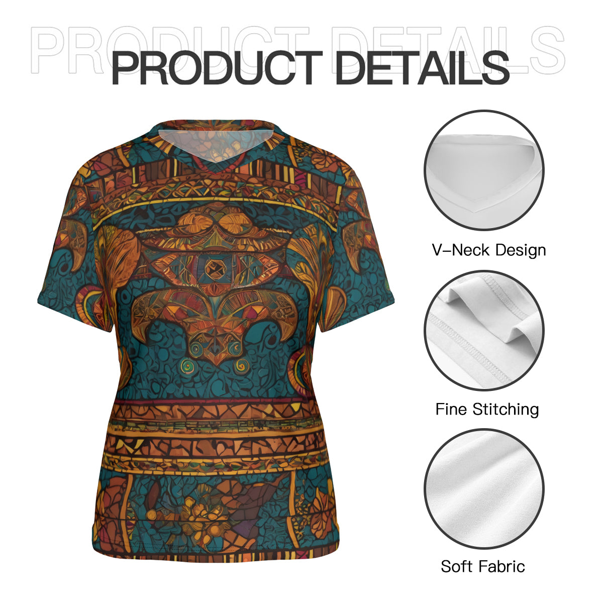 African Design Women's V-Neck Short Sleeve T-Shirt | Polyester