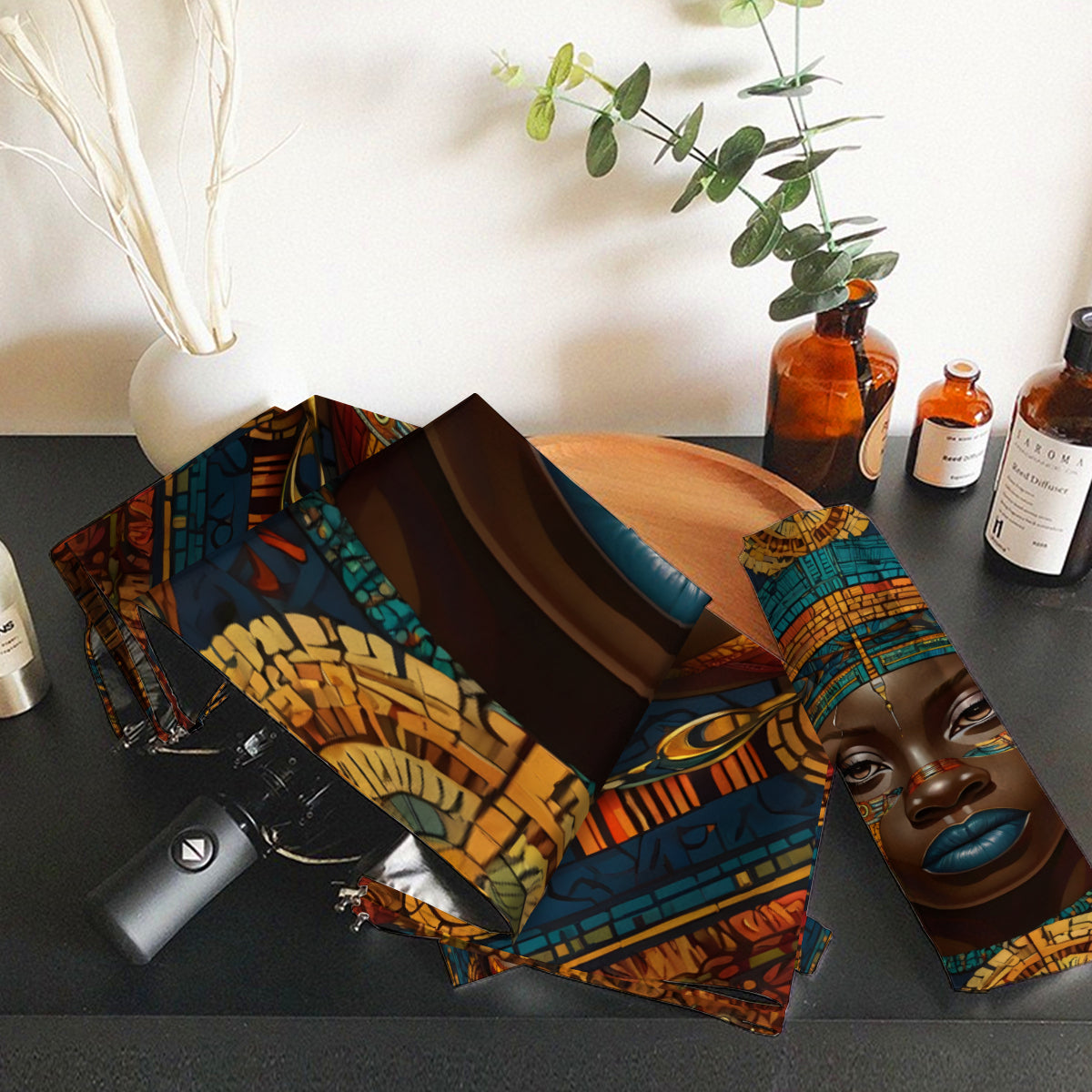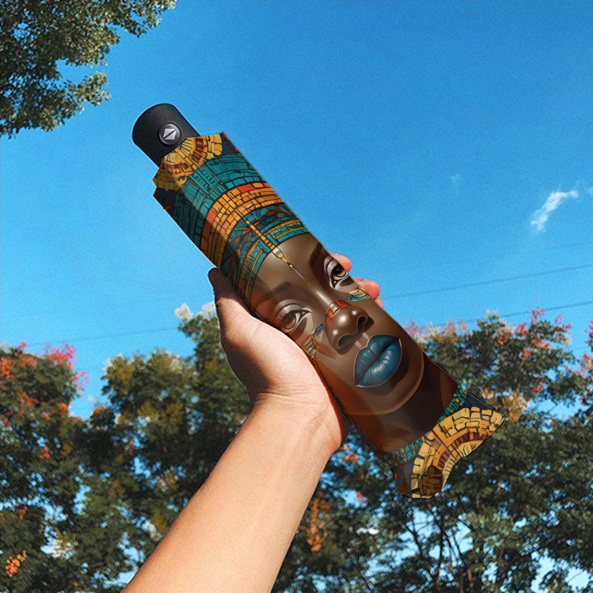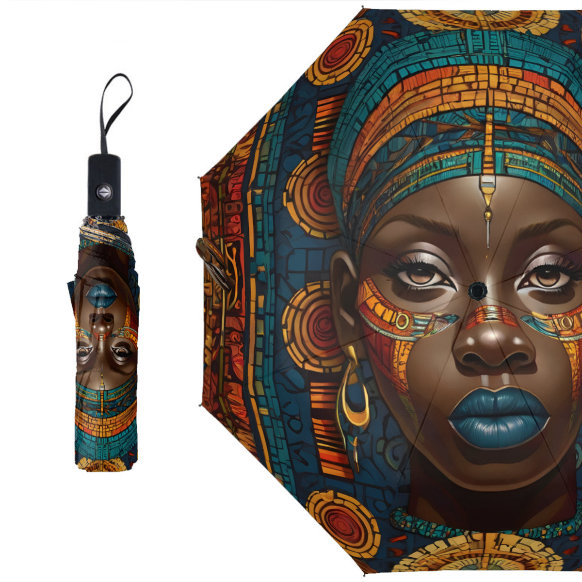 African Image Automatic Tri-Fold Black Rubber Umbrella (Outside Printing)|Polyester