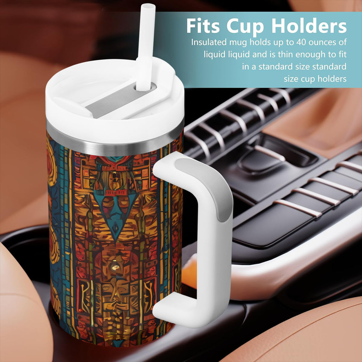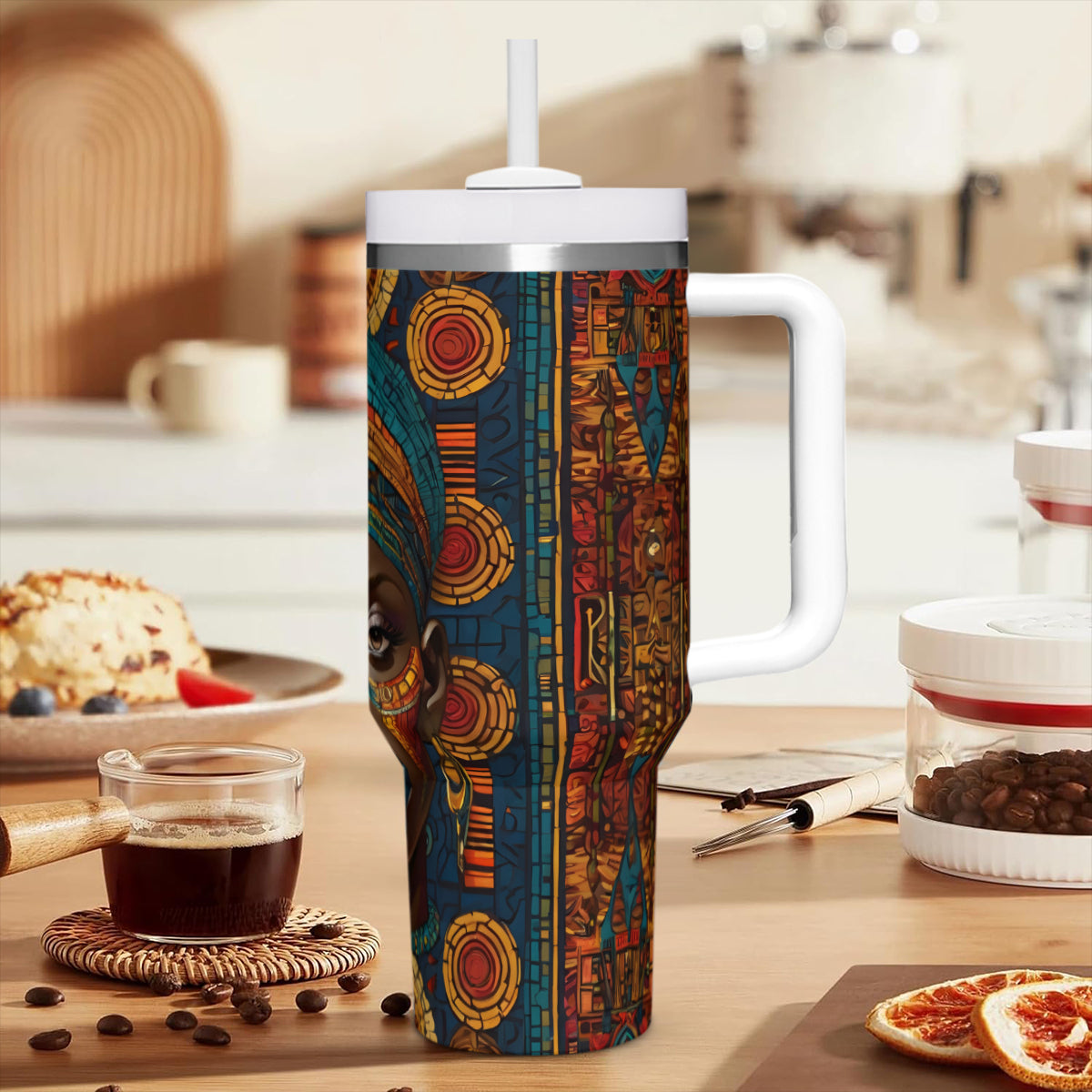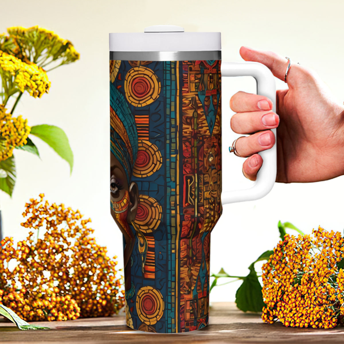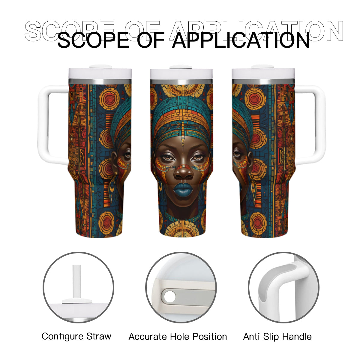 African Image Large Capacity Tumbler with Handle(1100ml/40oz) | Stainless Steel 304