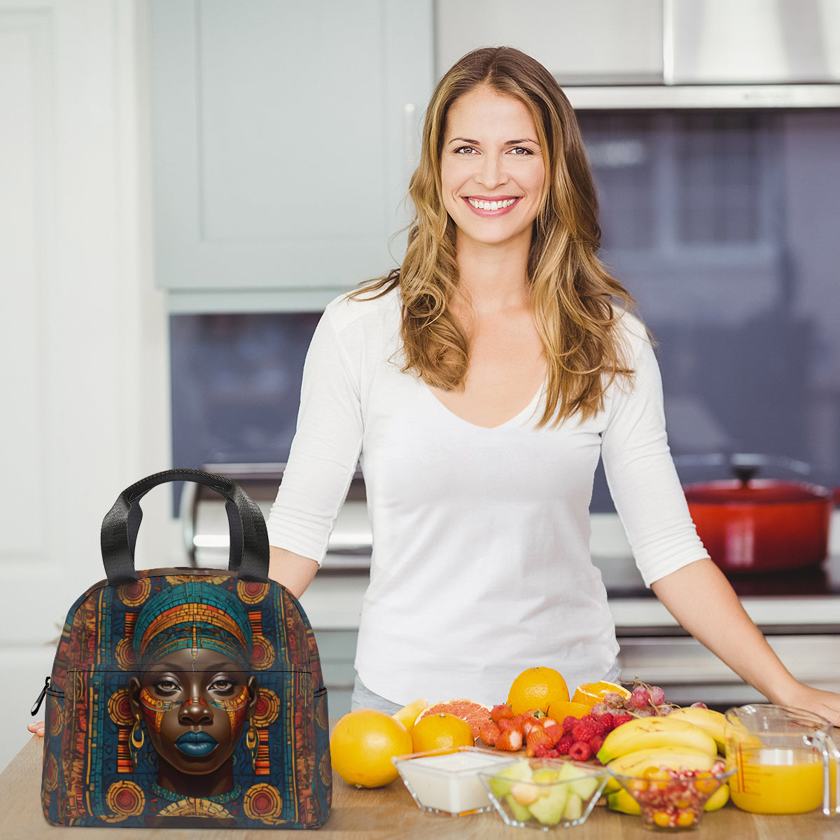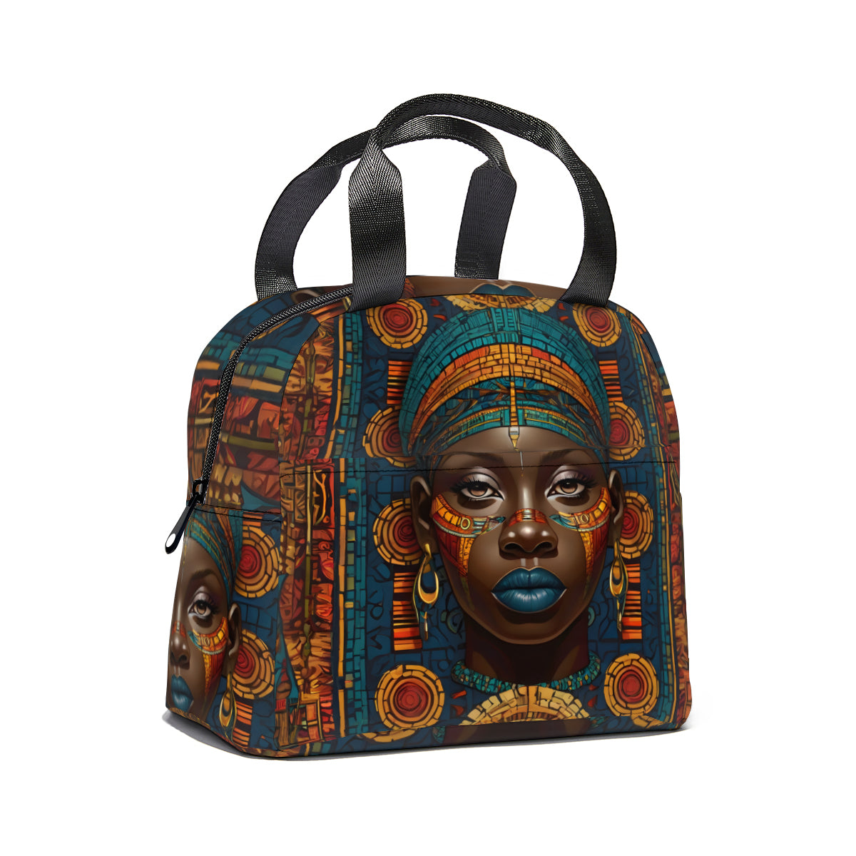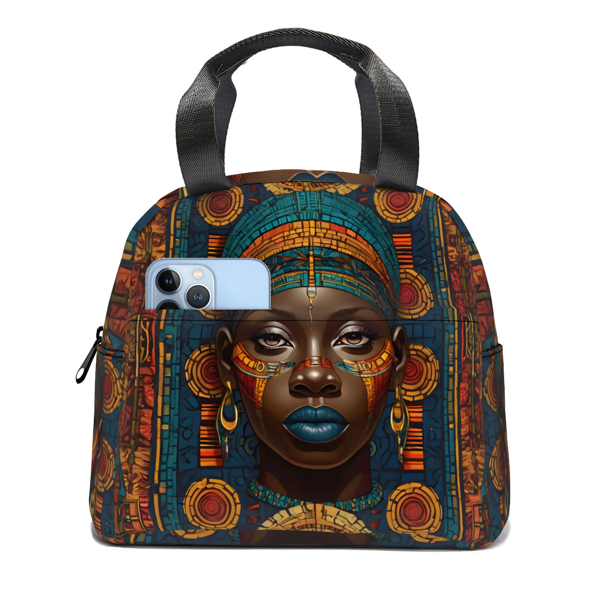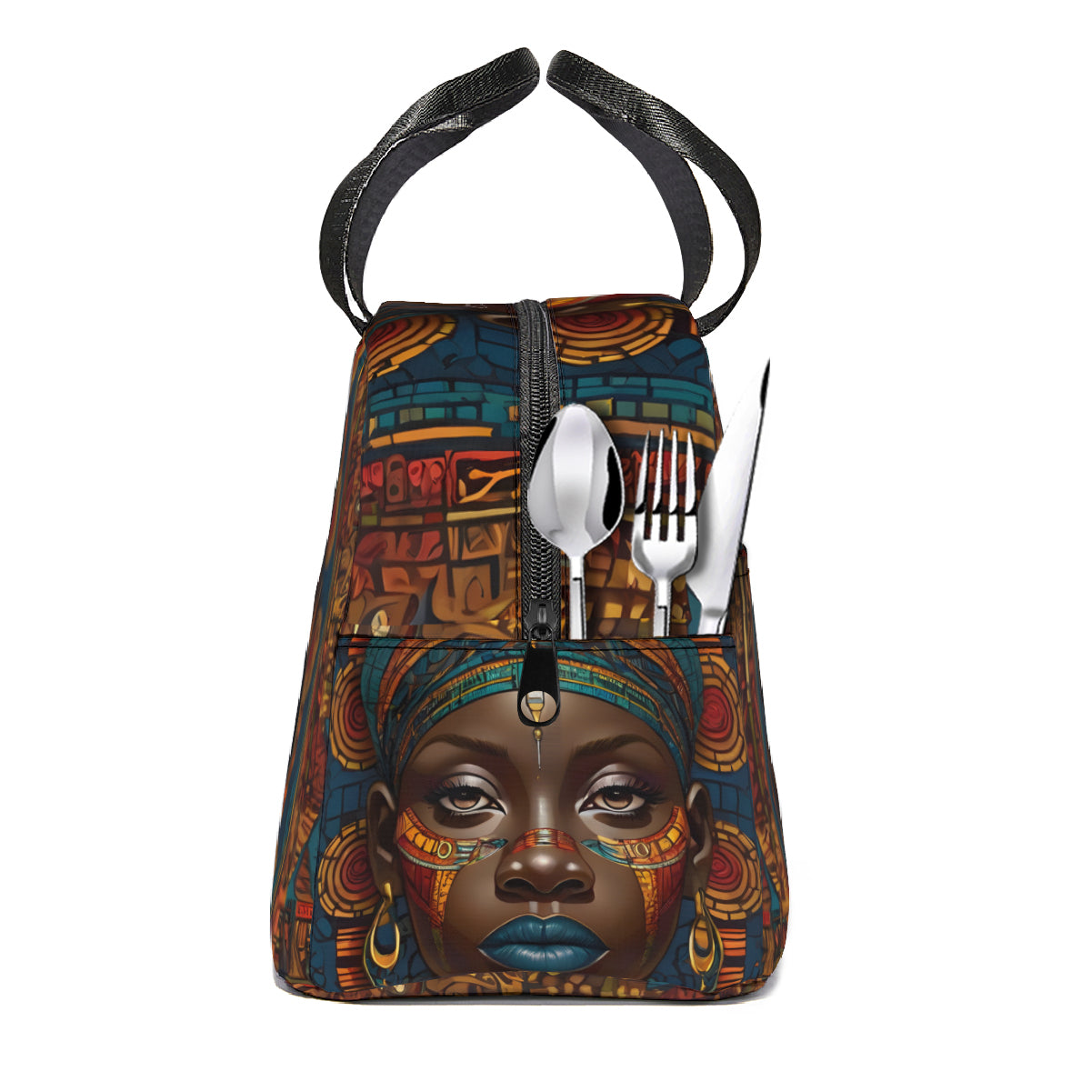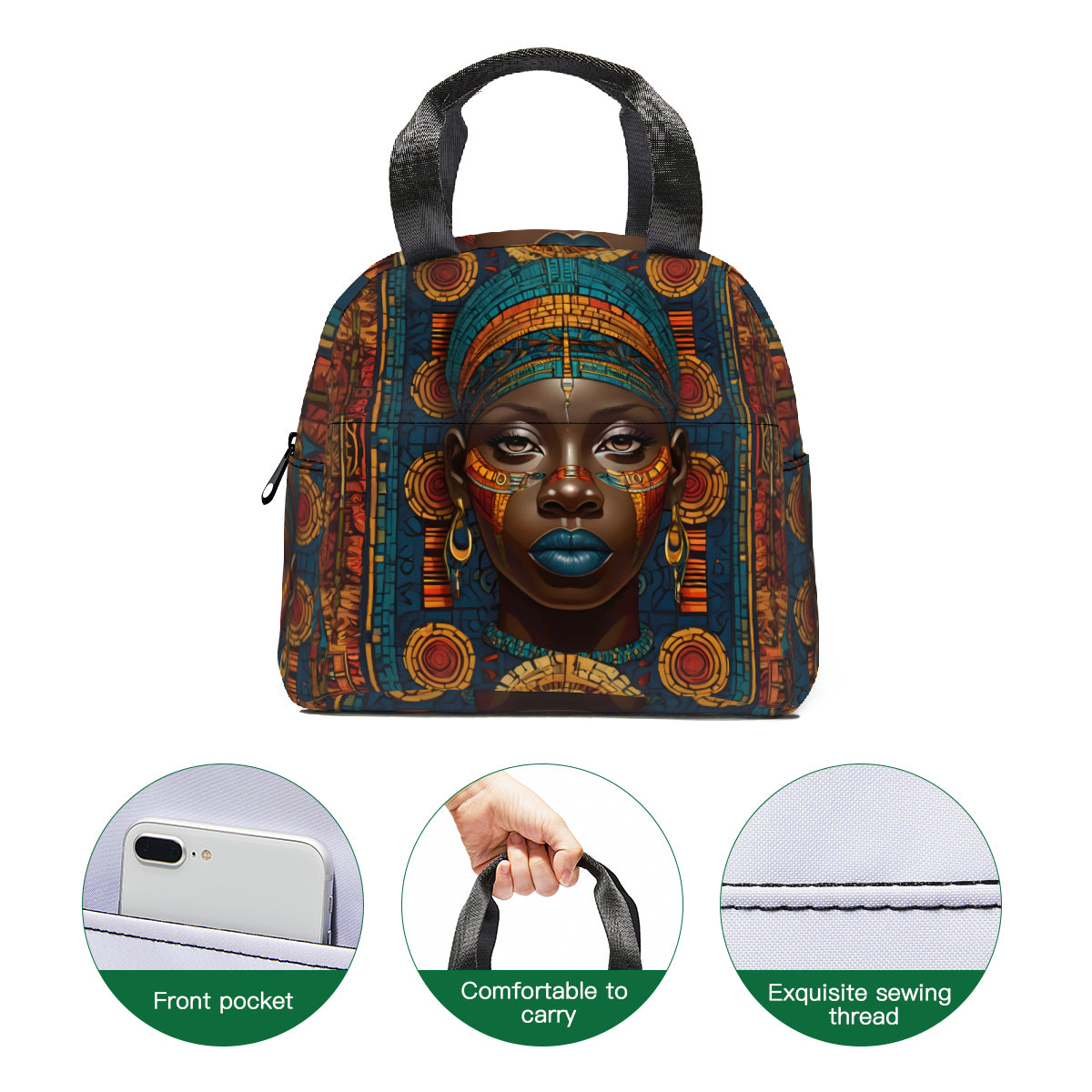 Product Description: African Image Personalised canvas handheld insulated lunch bag (with side pocket)|Polyester