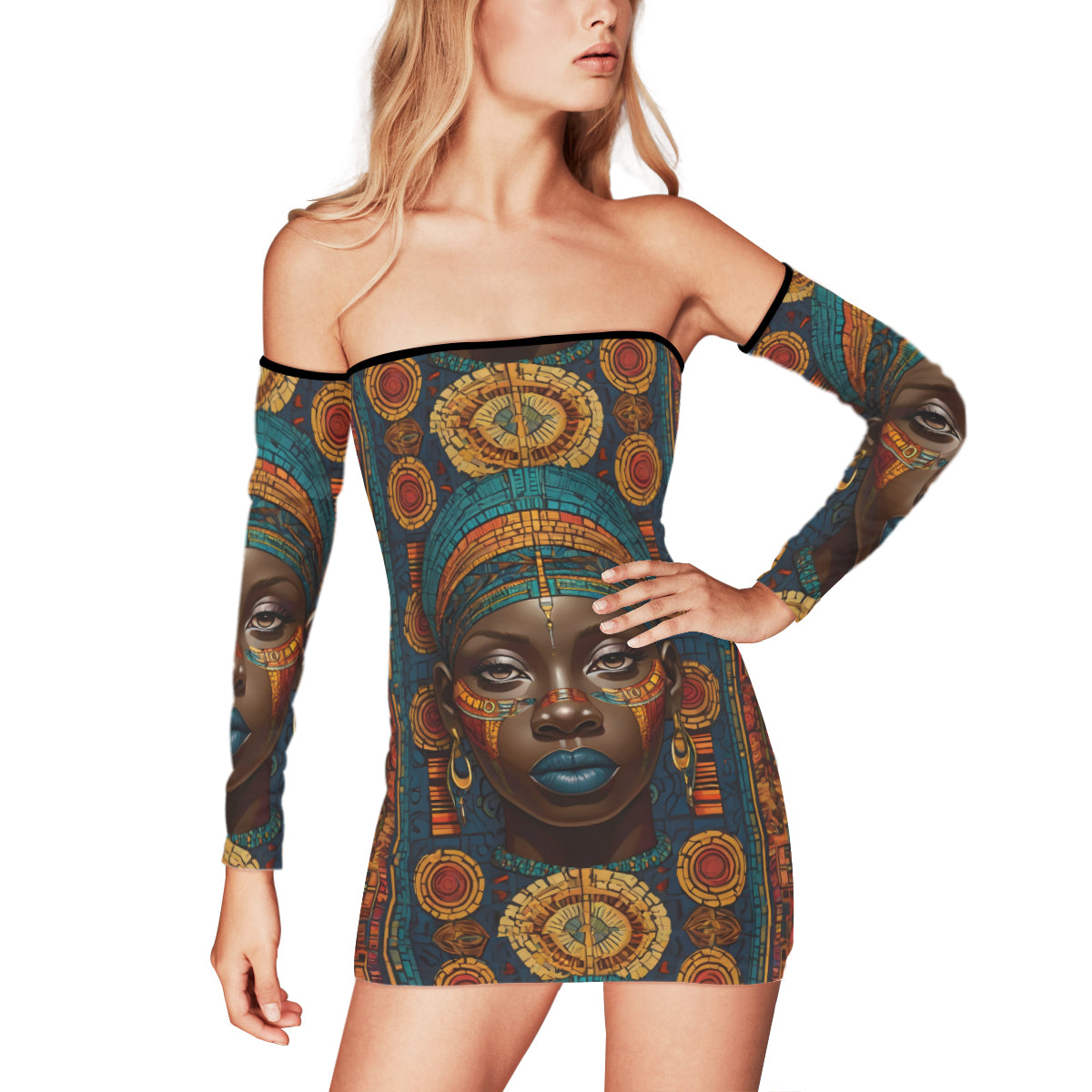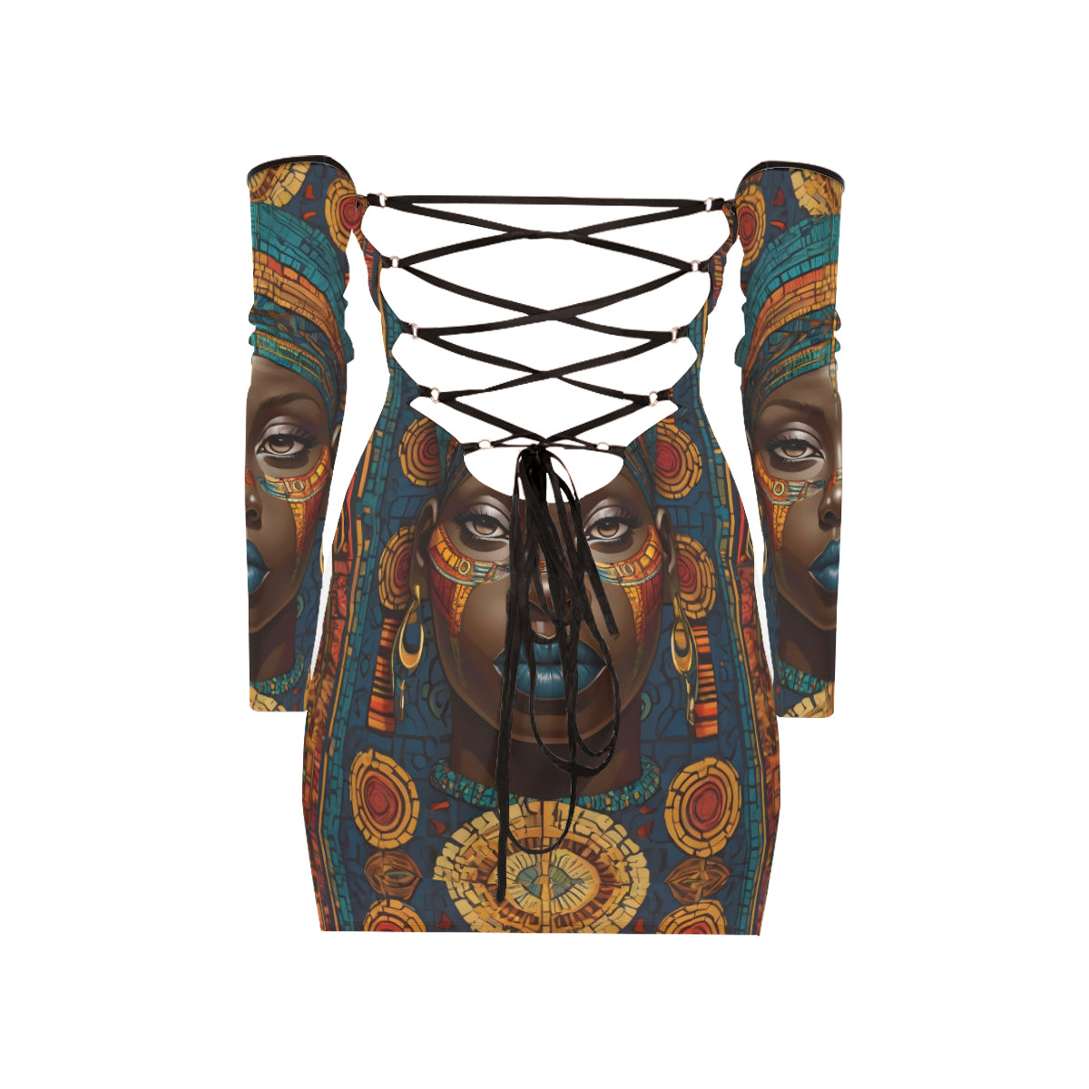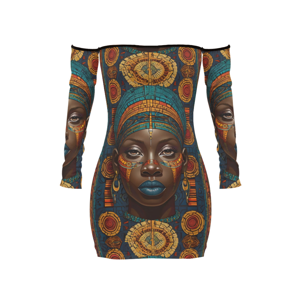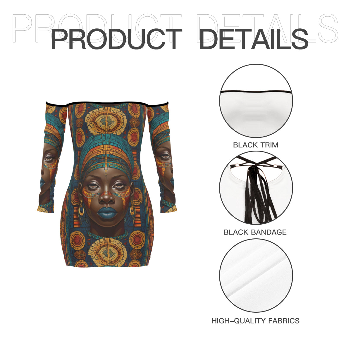 African Image Women's Off-shoulder Back Lace-up Dress | Polyester