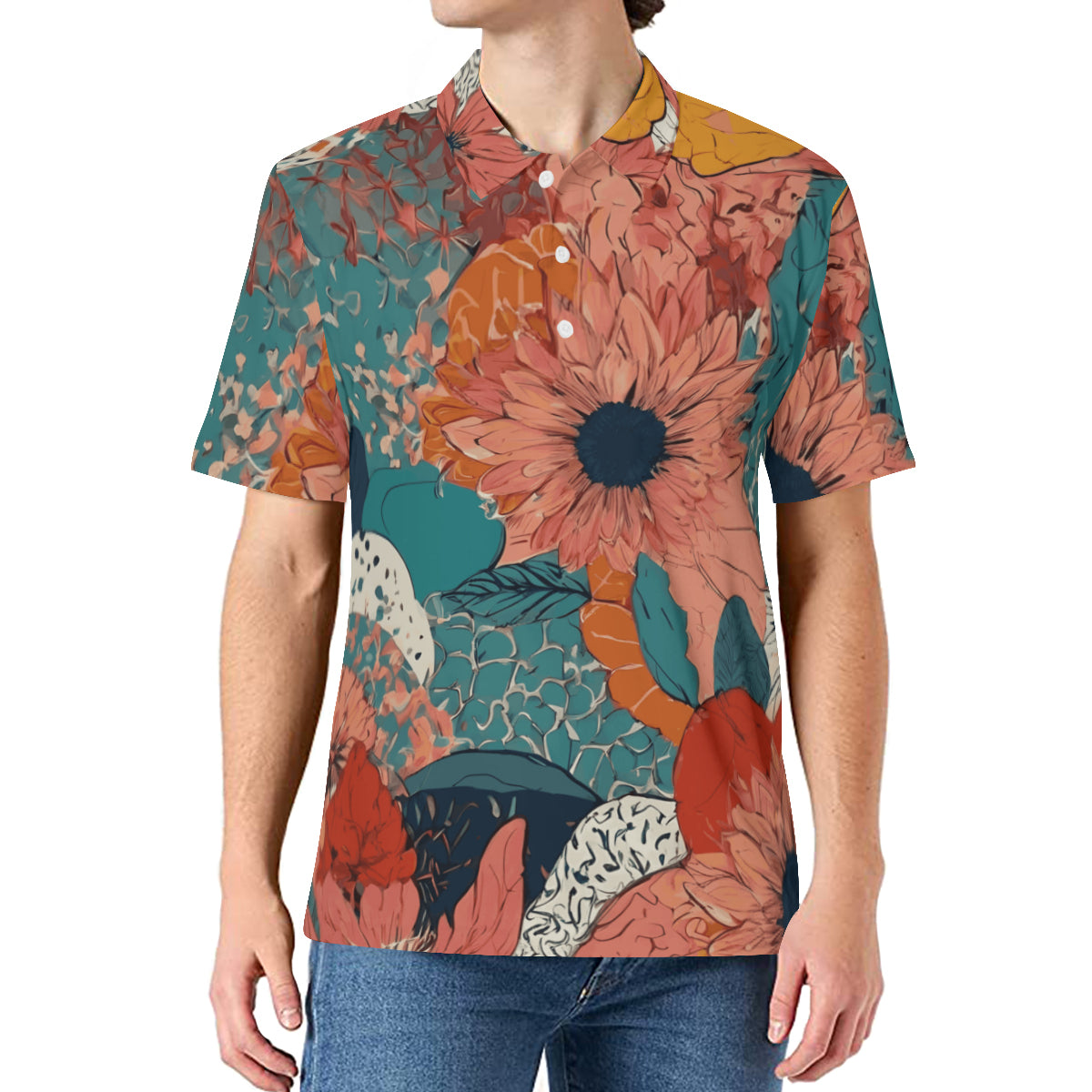 Awesome Floral Men's Premium European Size POLO Shirt | 95% Polyester+5% Spandex