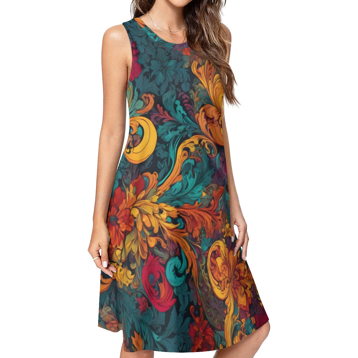 - Casual and comfortable, cool and breathable, unique all-over print sleeveless dress