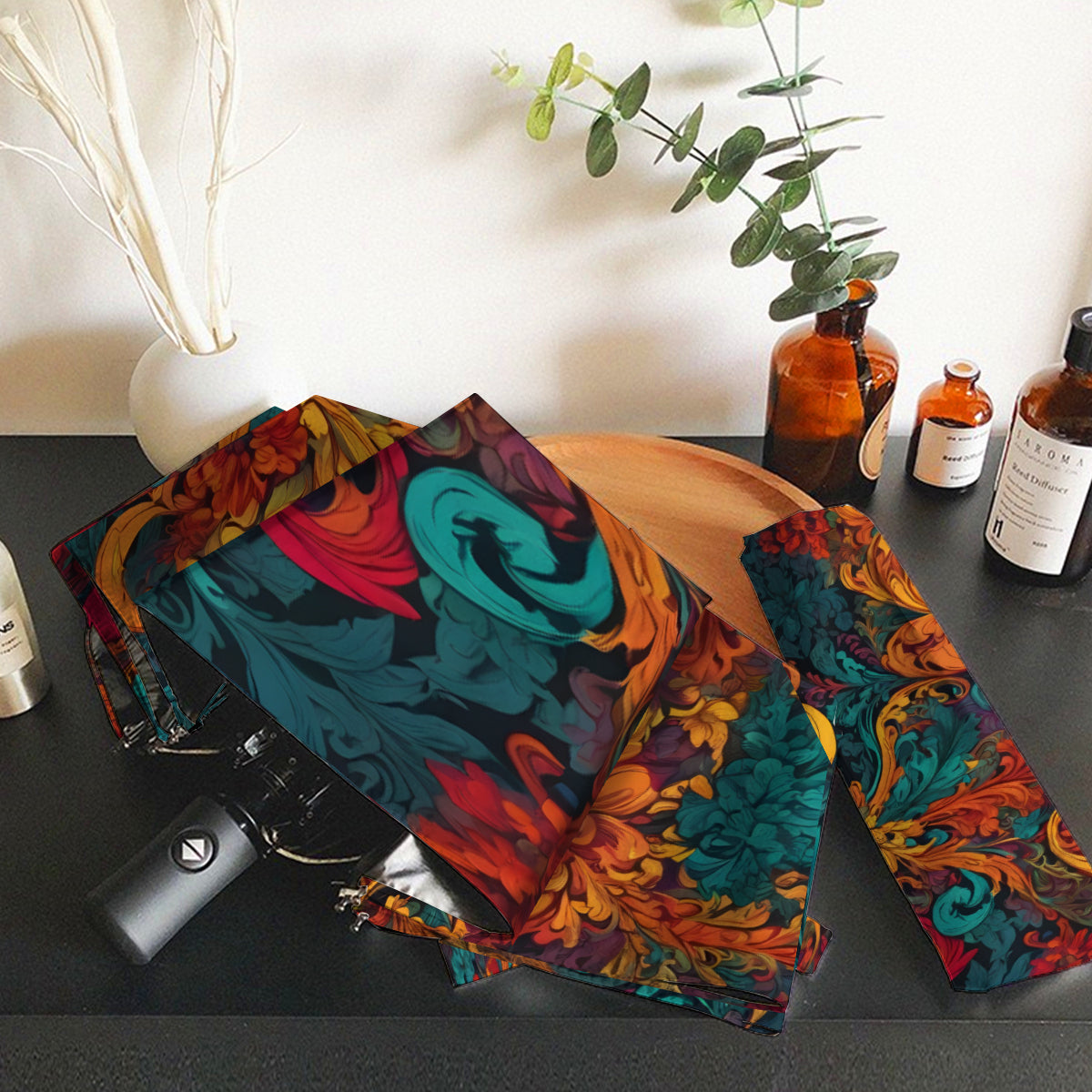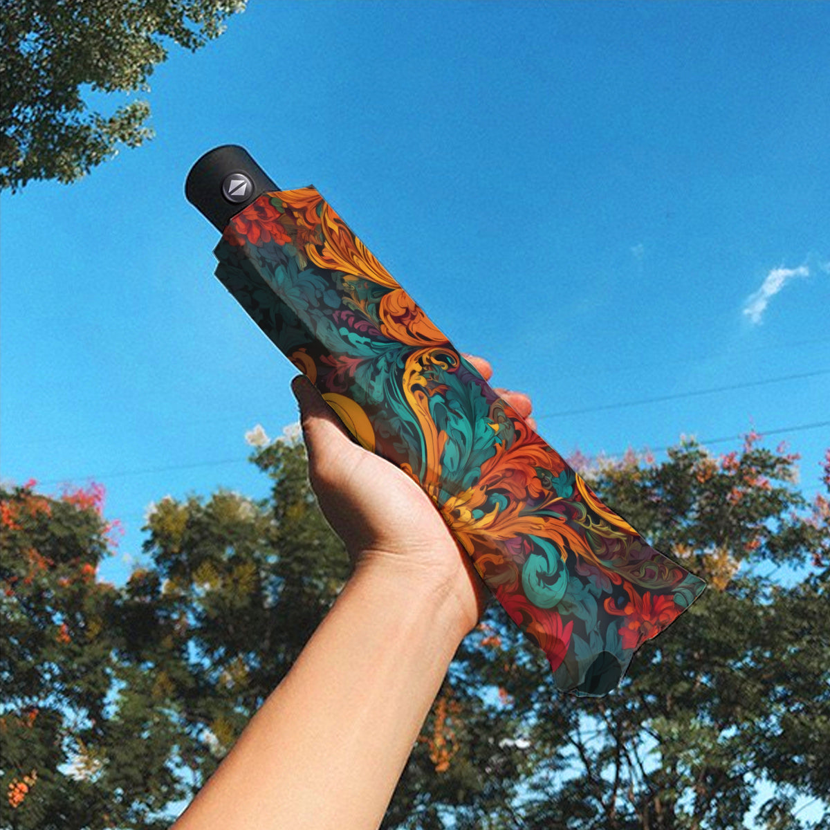 Awesome Flower Design Automatic Tri-Fold Black Rubber Umbrella (Outside Printing)|Polyester