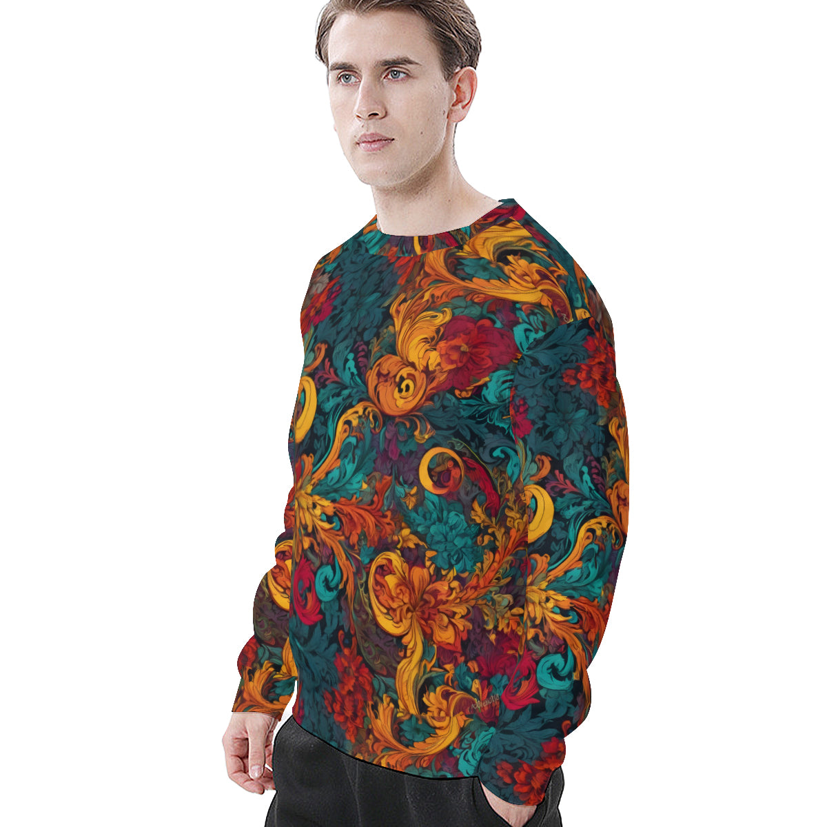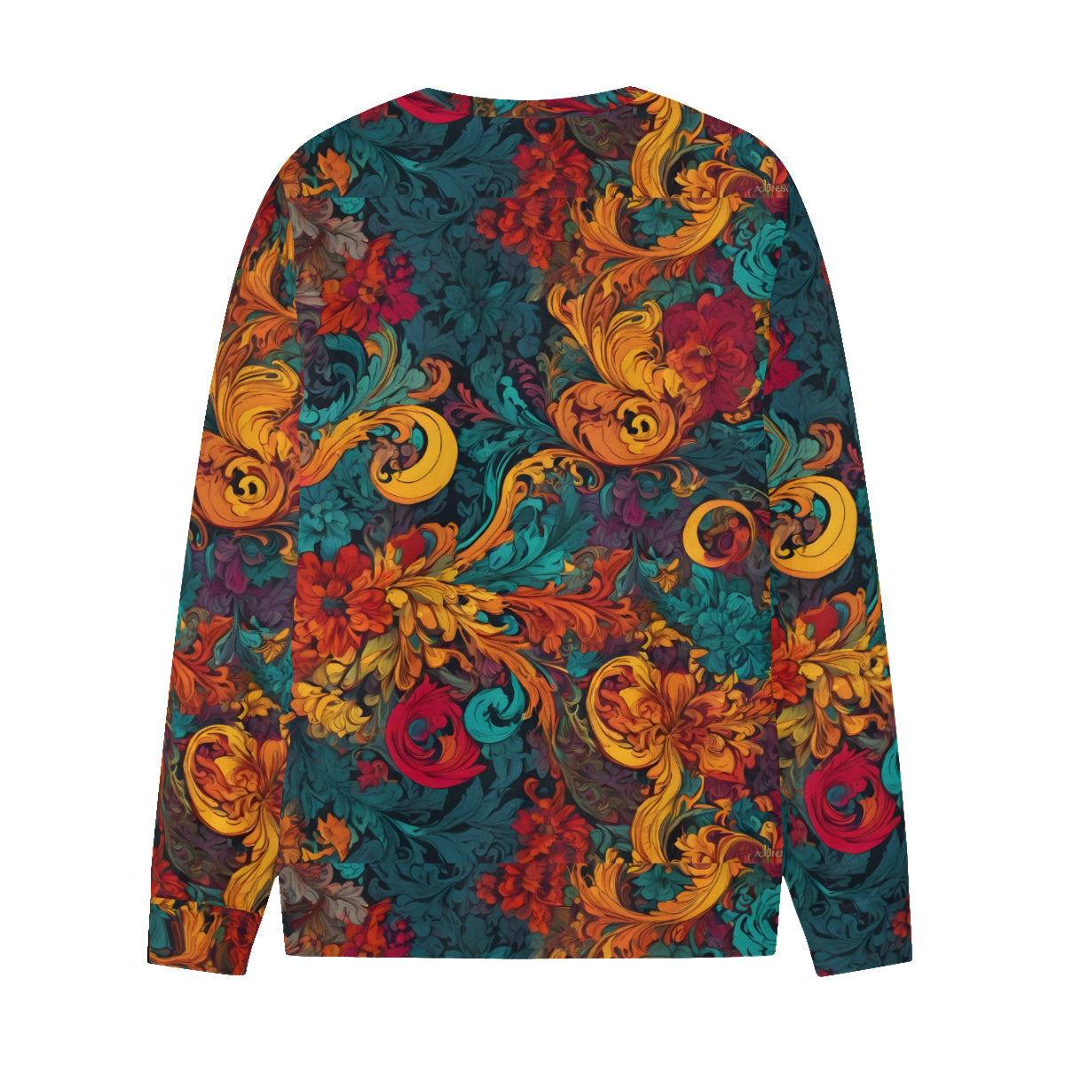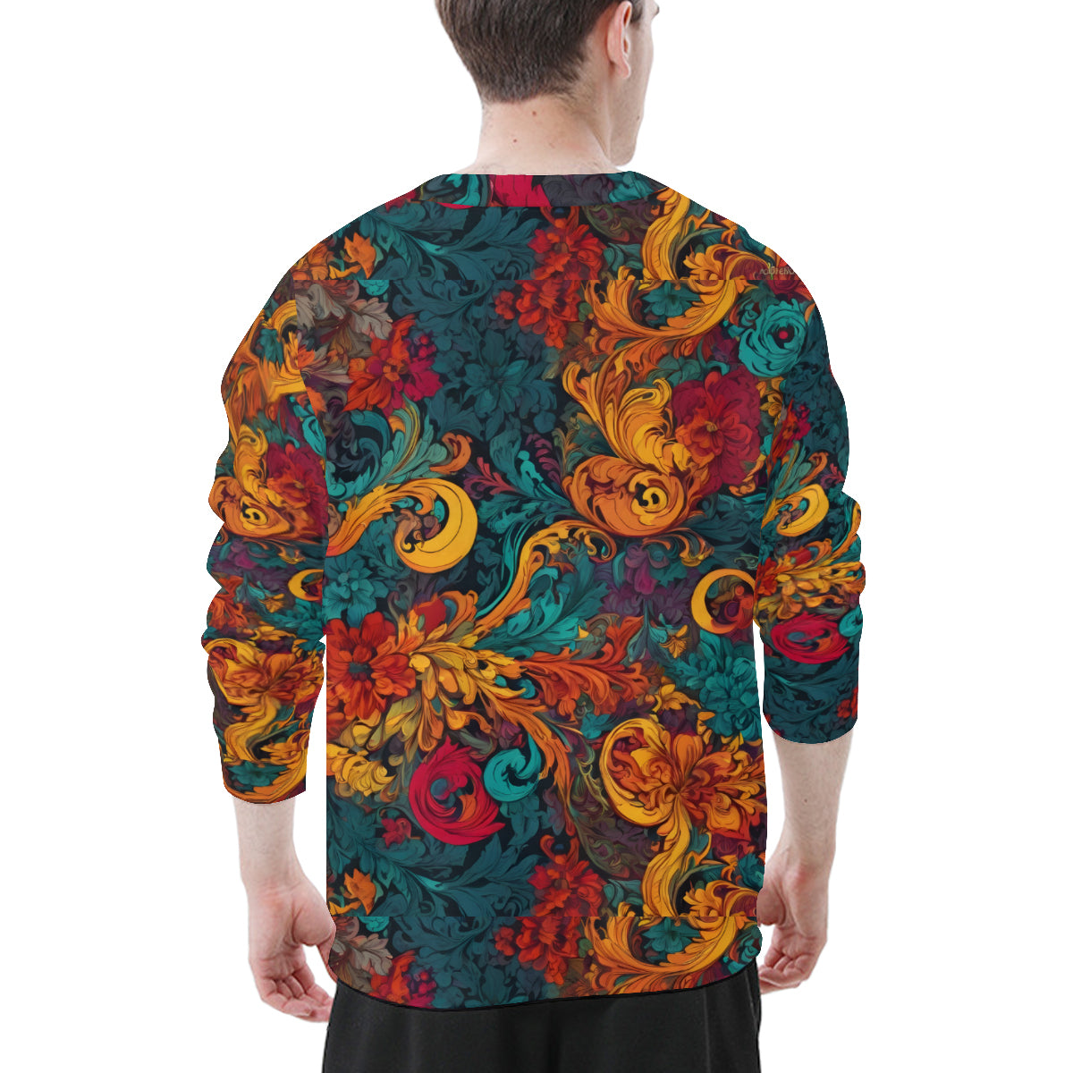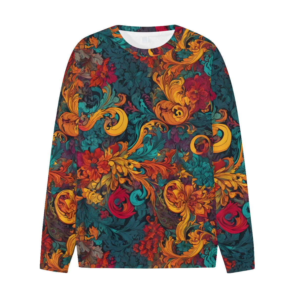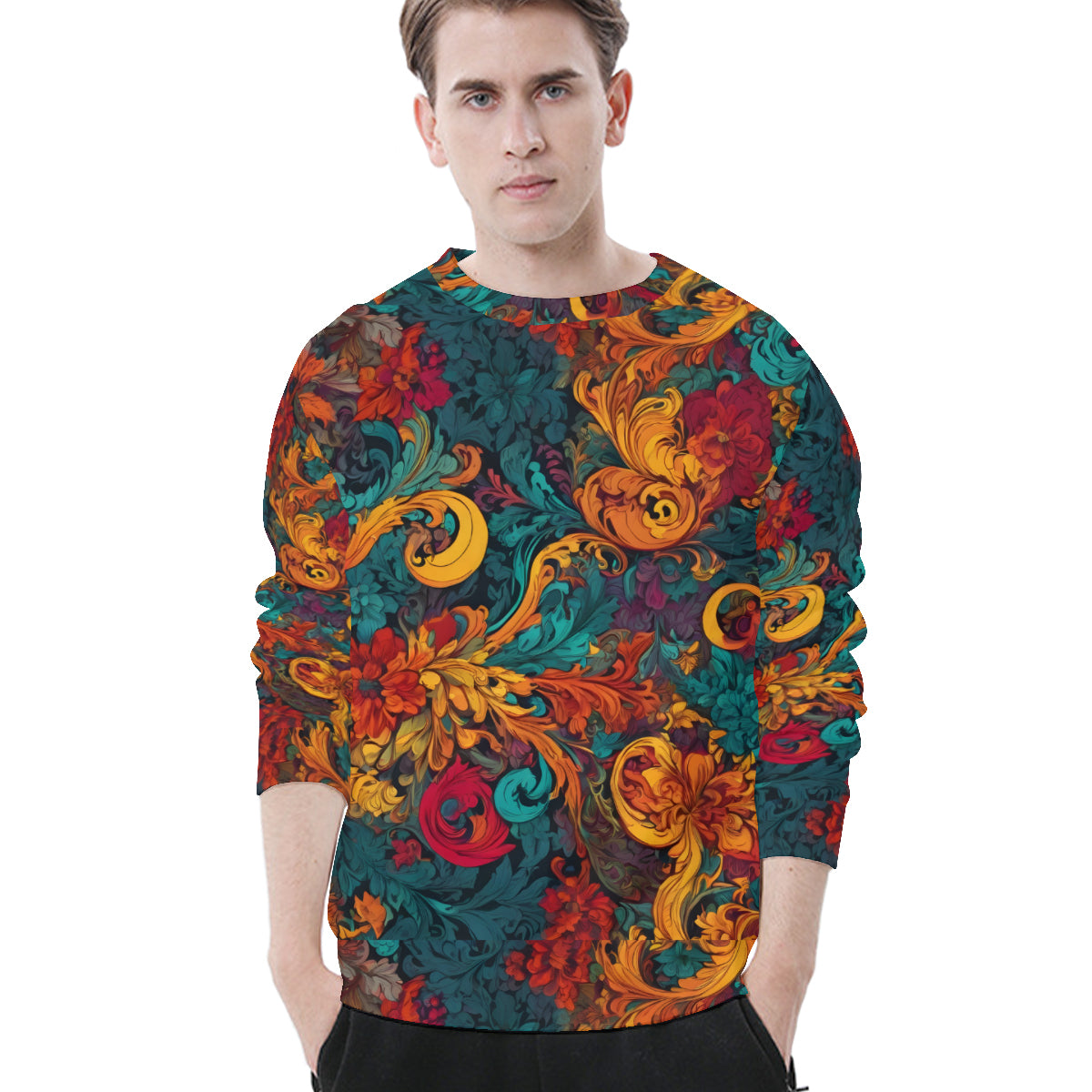 Design area: All-Over Print Awesome Flower Design Men's O-Neck EU Size Long-Sleeved T-Shirt | 180GSM Cotton
