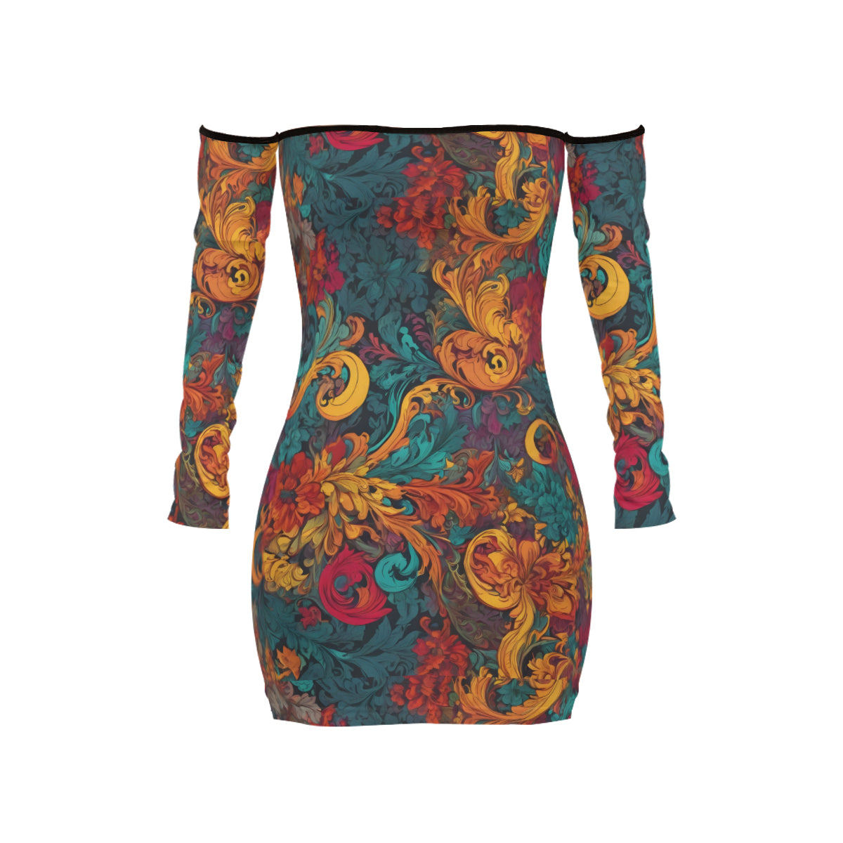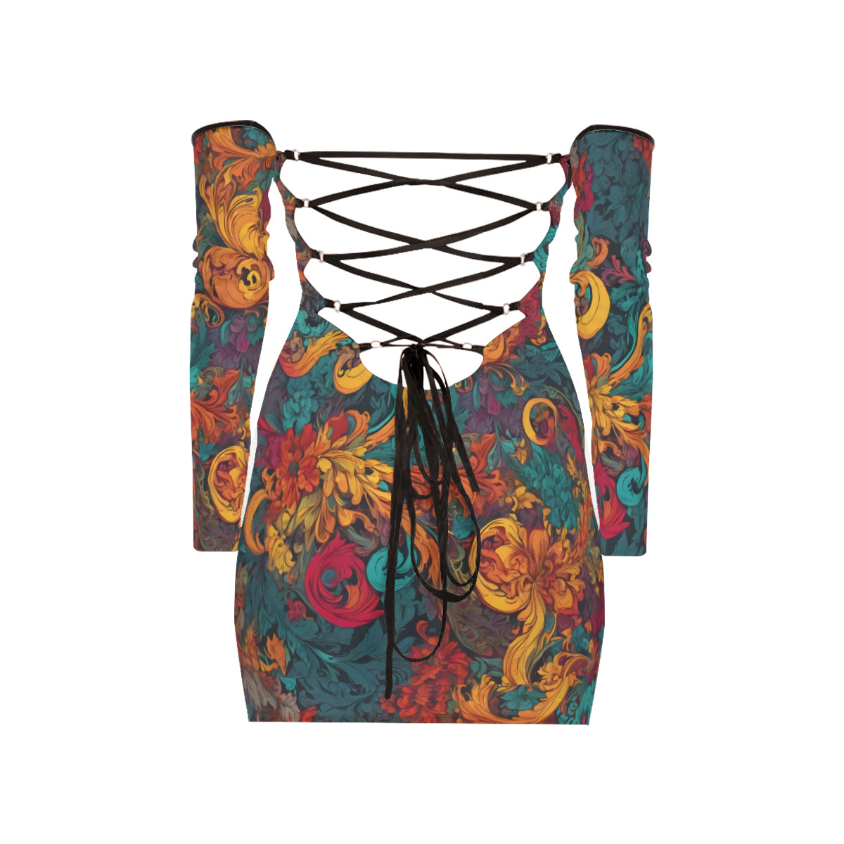 Design area: Awesome Flower Design Women's Off-shoulder Back Lace-up Dress | Polyester