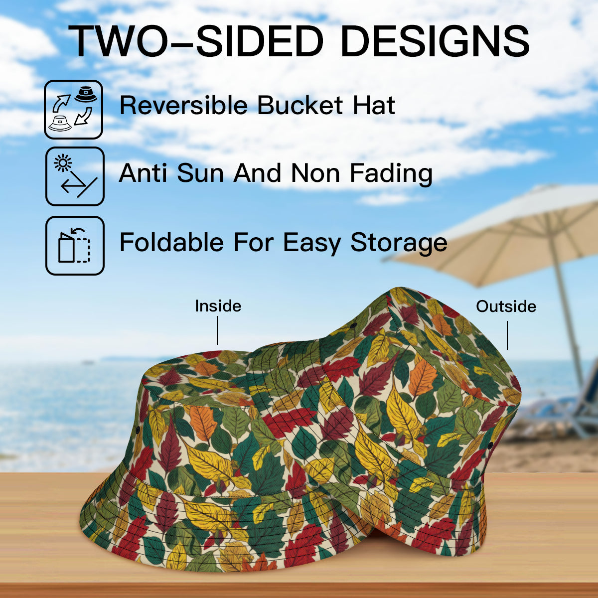 Design description: Double-Sided All-Over Printing Awesome Leaves Fisherman Hat | Polyester