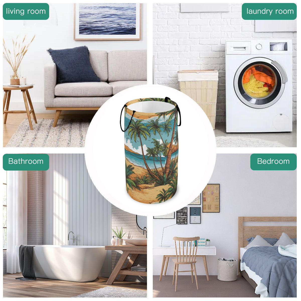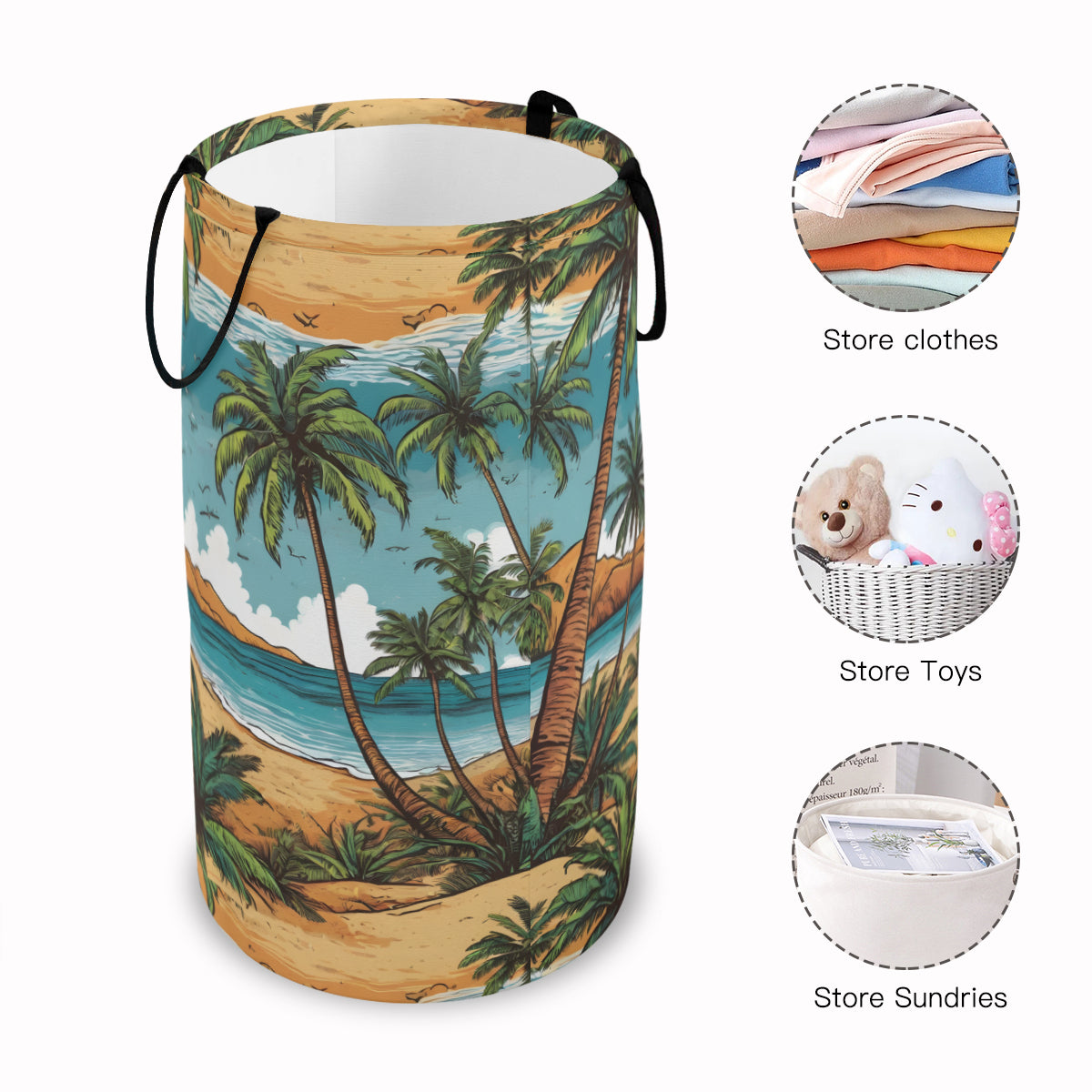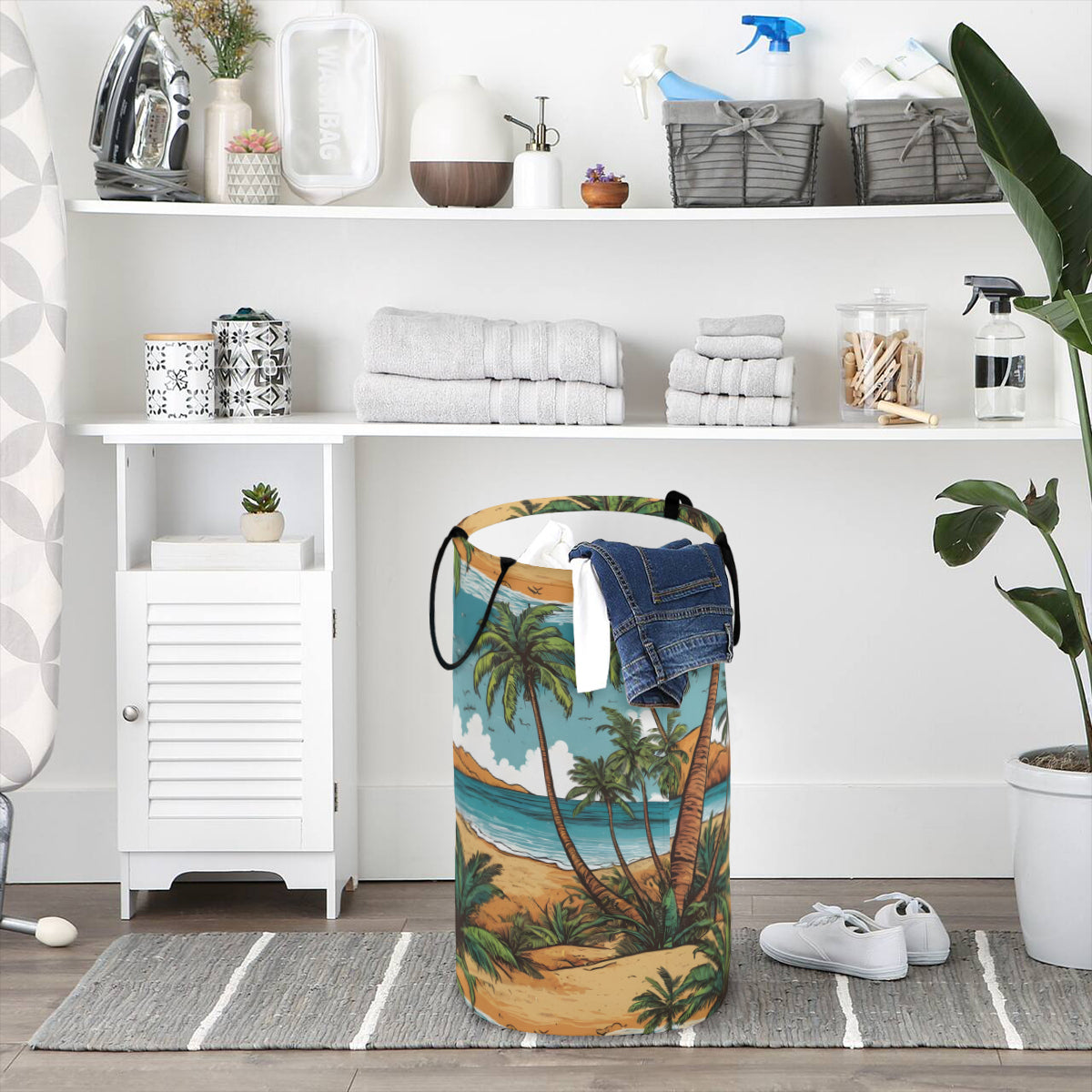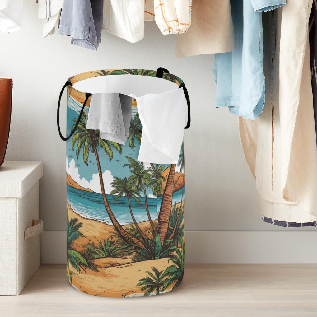 Beach Front Large Capacity Foldable Laundry Basket | Polyester