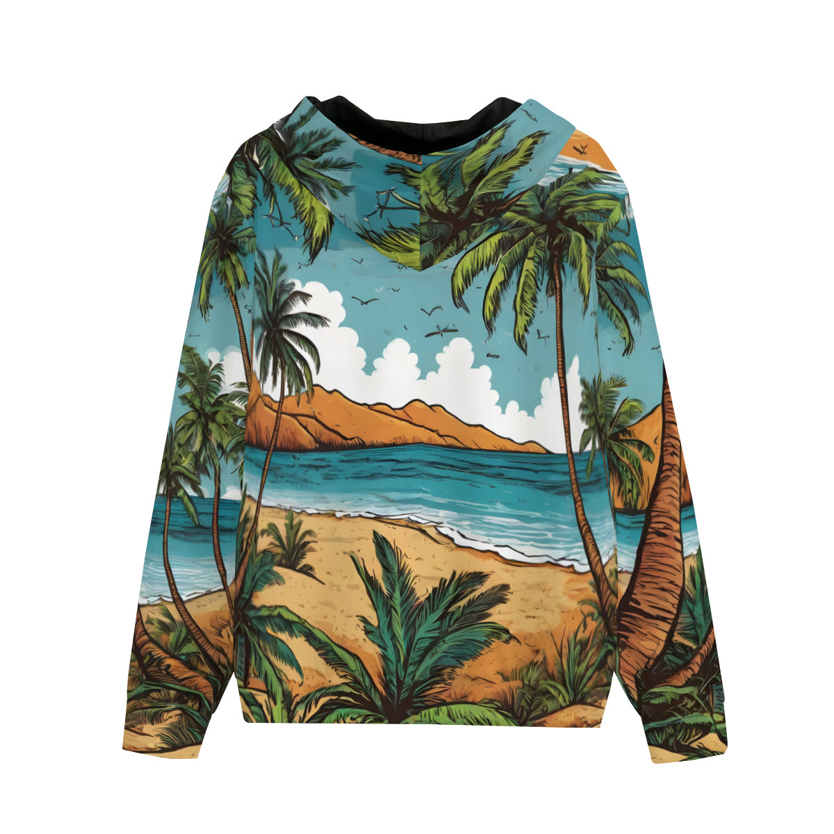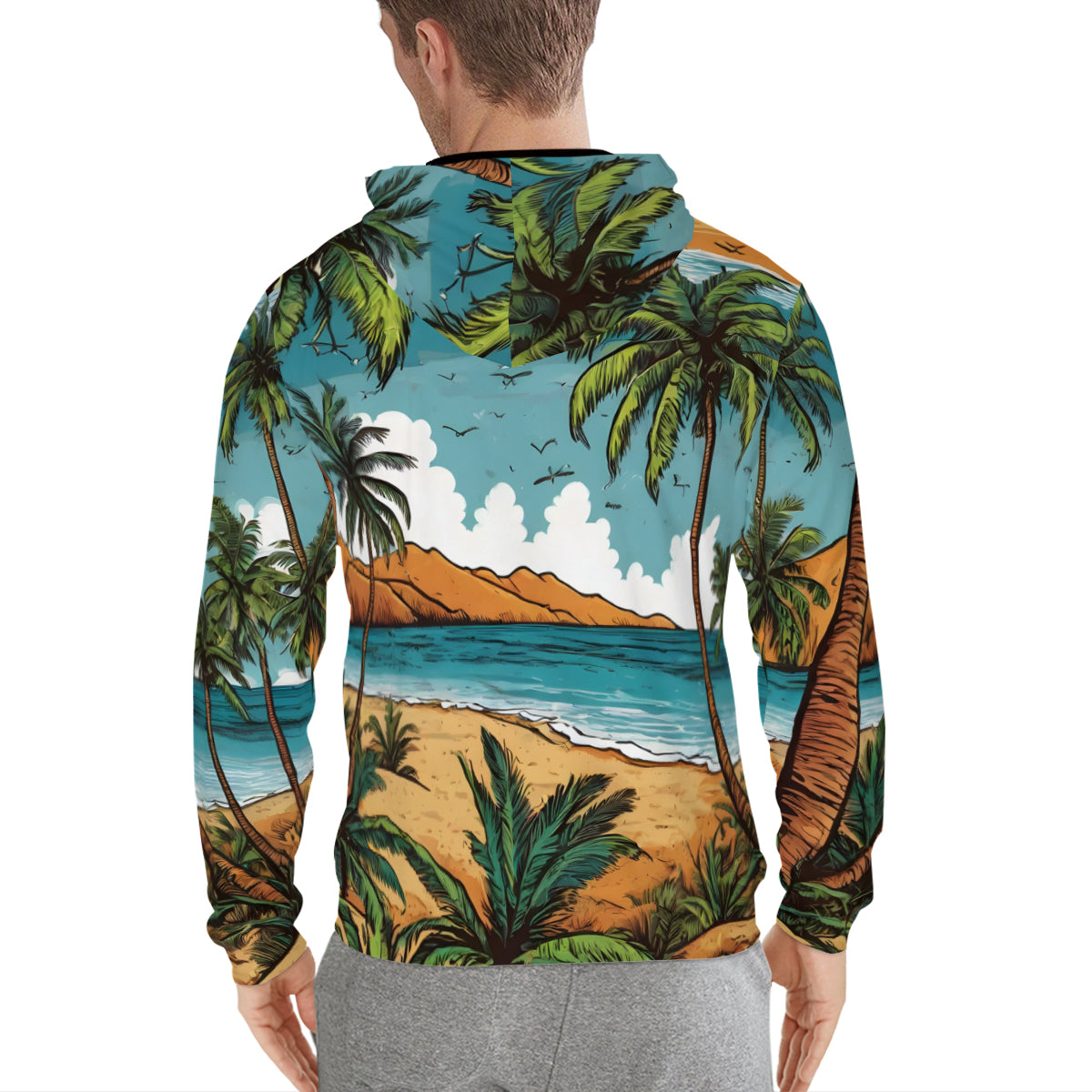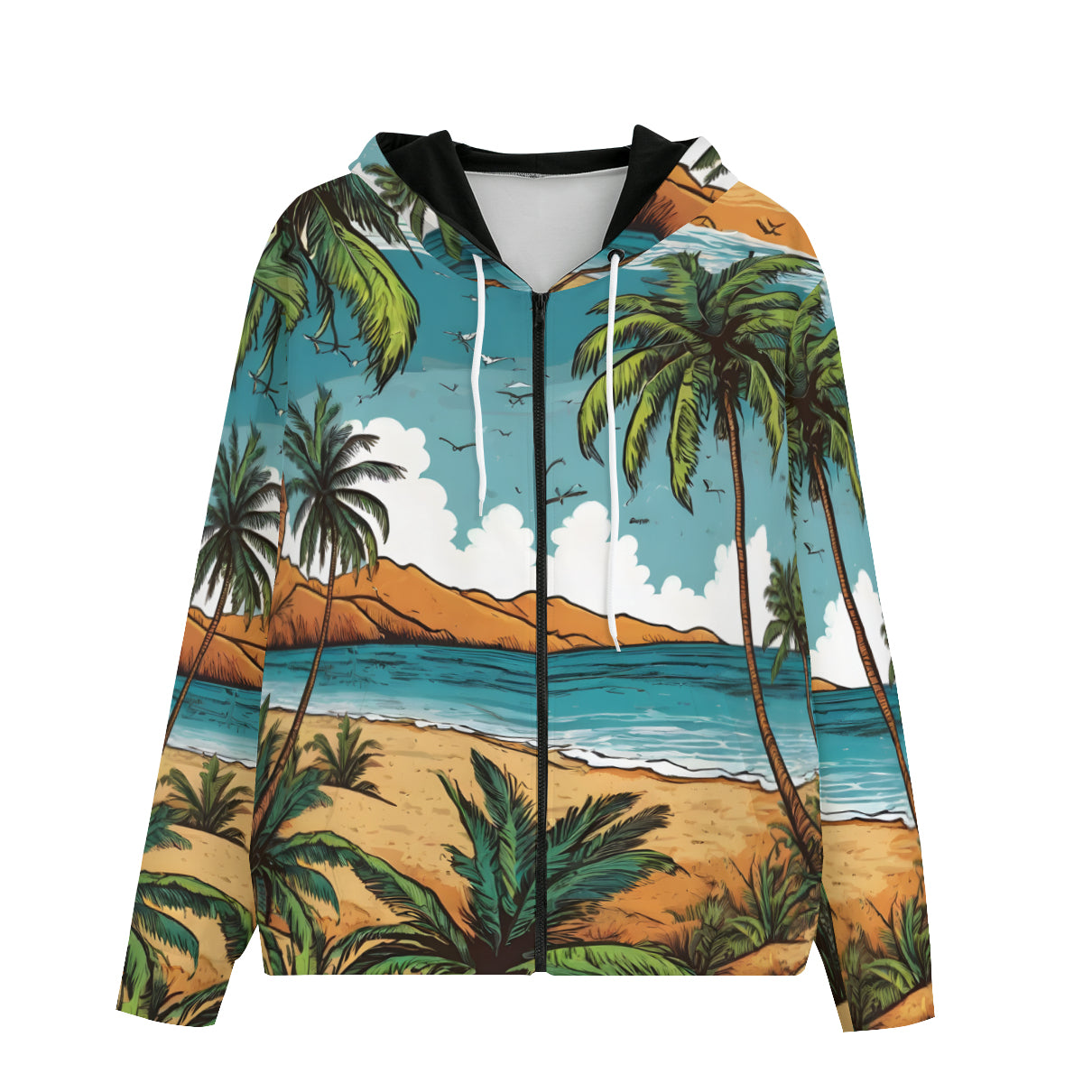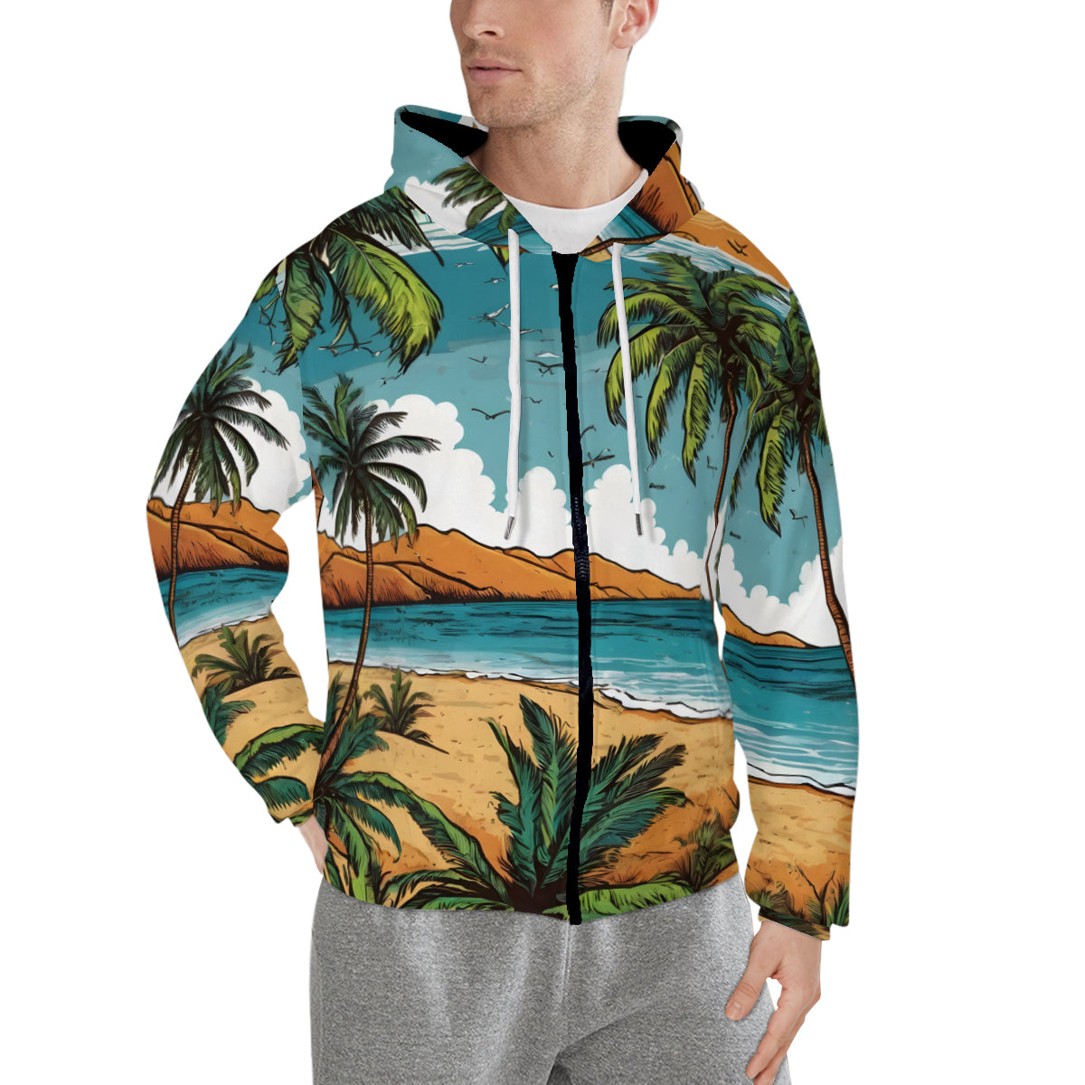 Beach Front All-Over Print Men's Zip Hoodie with Pockets | Polyester