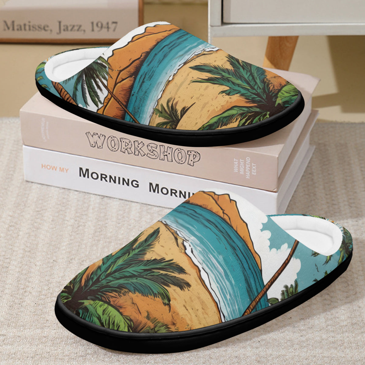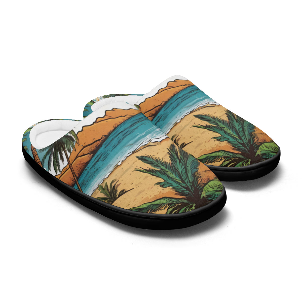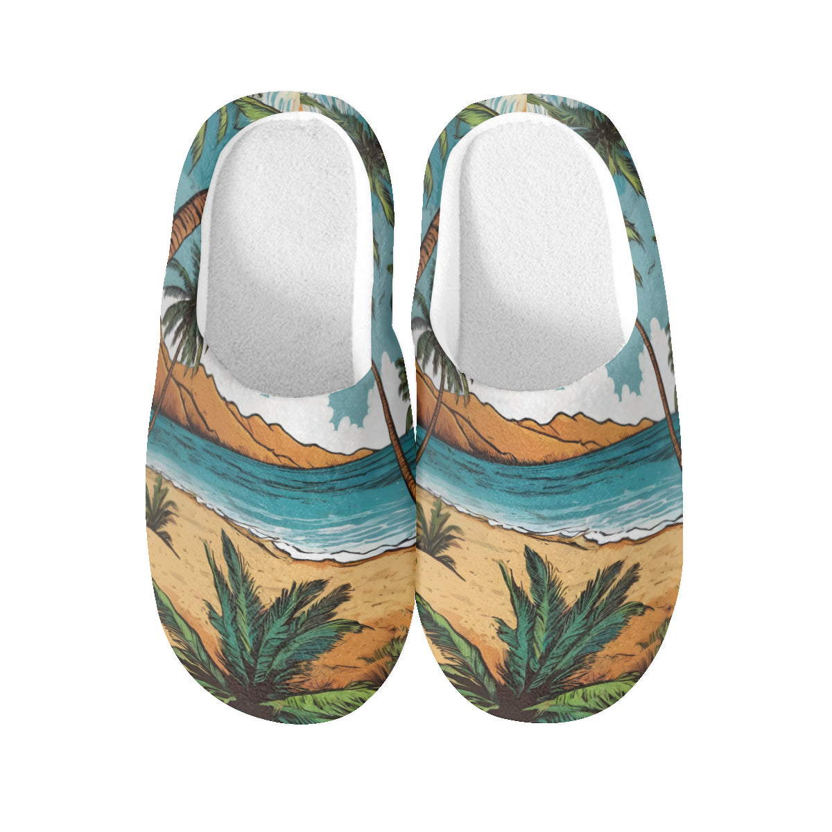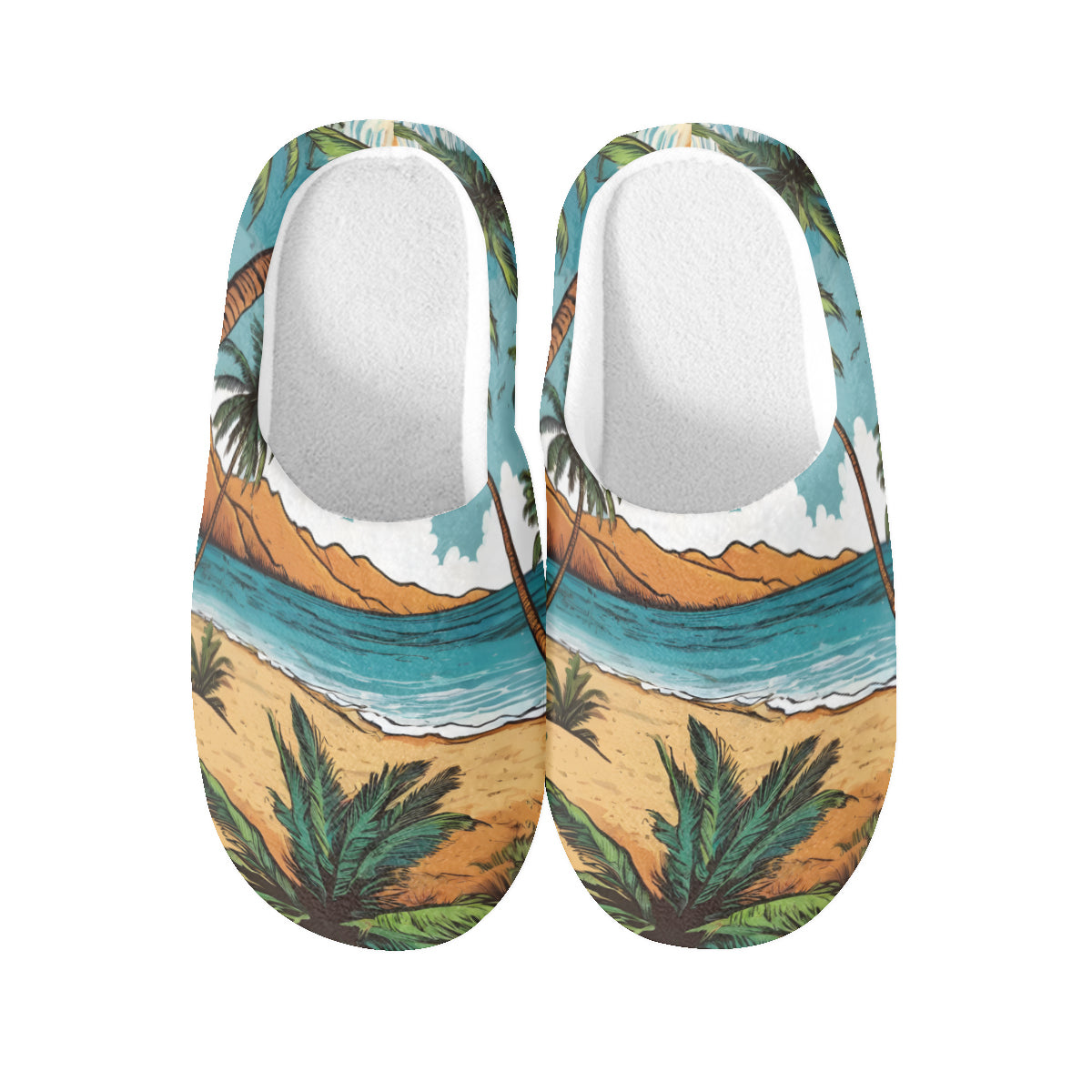 Beach Front Personalized Warm Cotton Slippers | Flannel