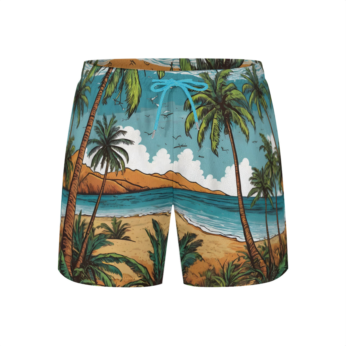 Design area: All-Over Print Beach Front Short Sports Beach Shorts (Multifaceted Design) | Polyester