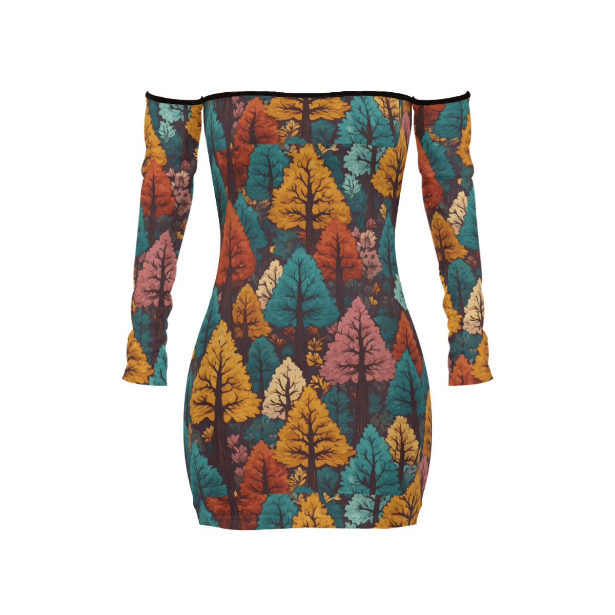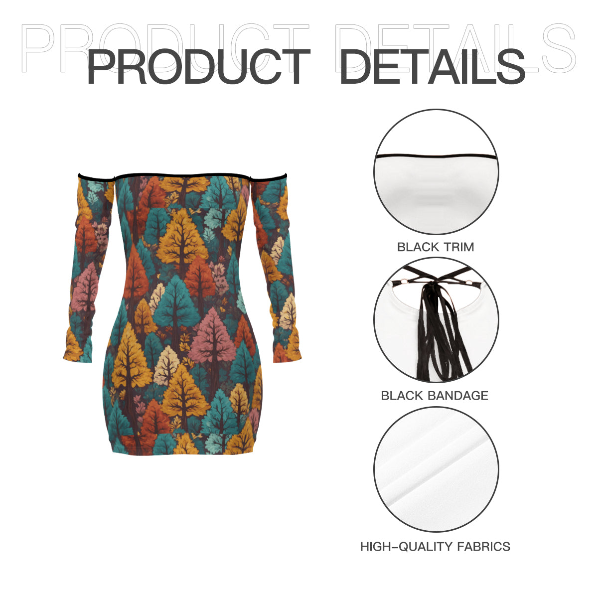 Design area: All-Over Print Beautiful Floral Women's Off-shoulder Back Lace-up Dress | Polyester