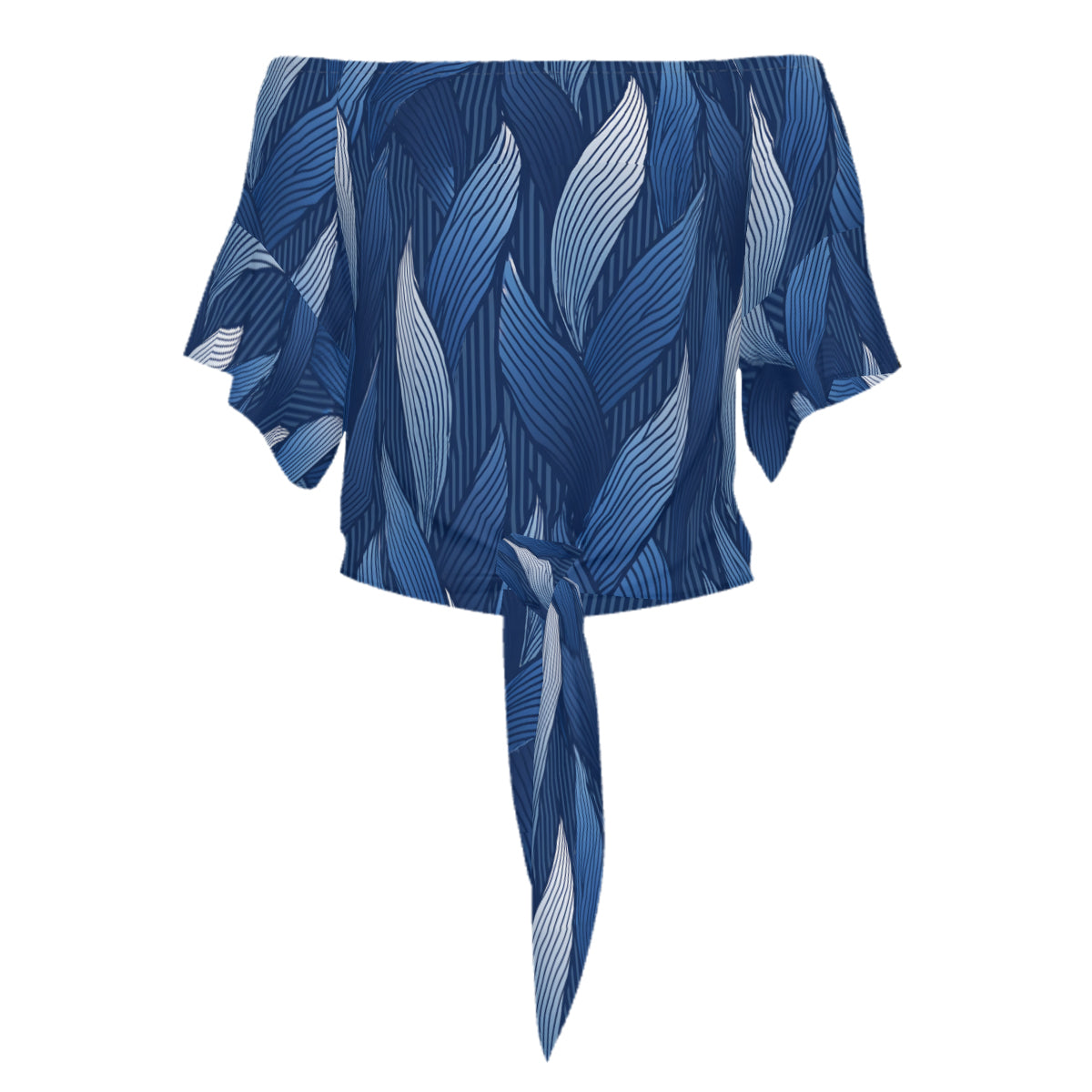 Design area: All-Over Print Blue Style Women's One-shoulder Tie Short Sleeves T-shirt | Polyester