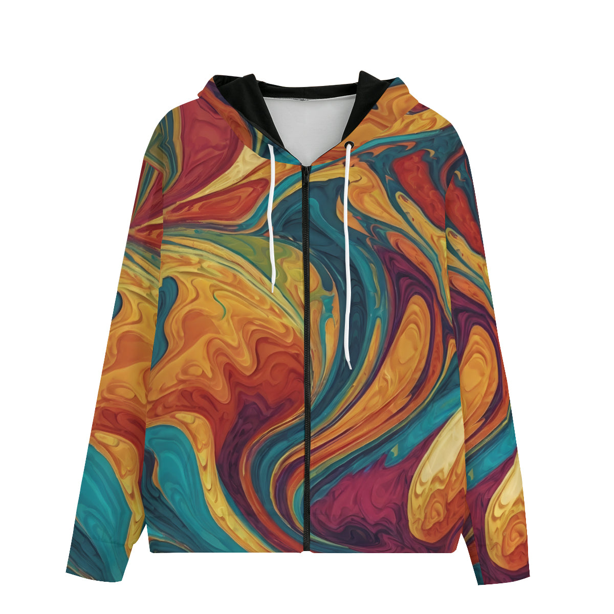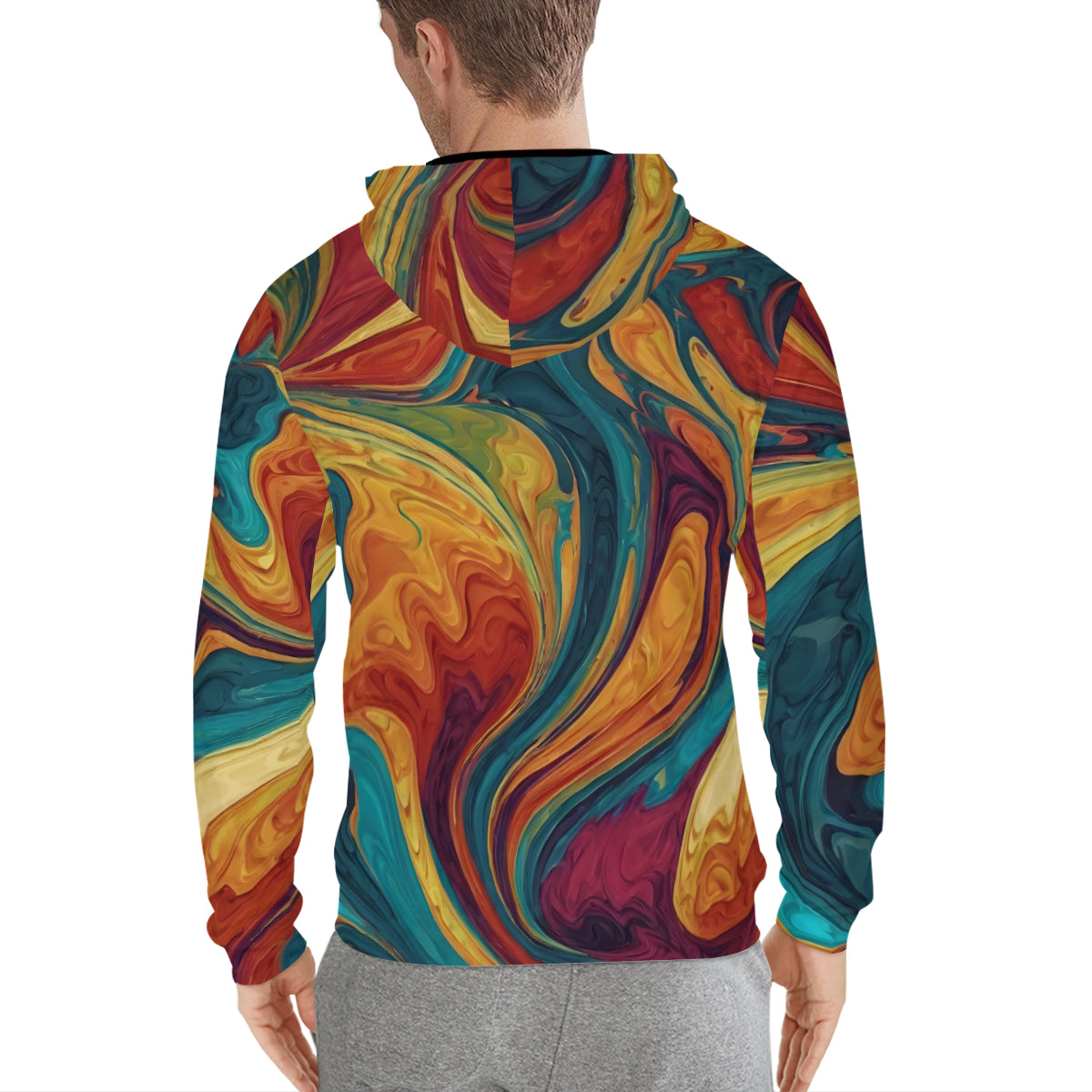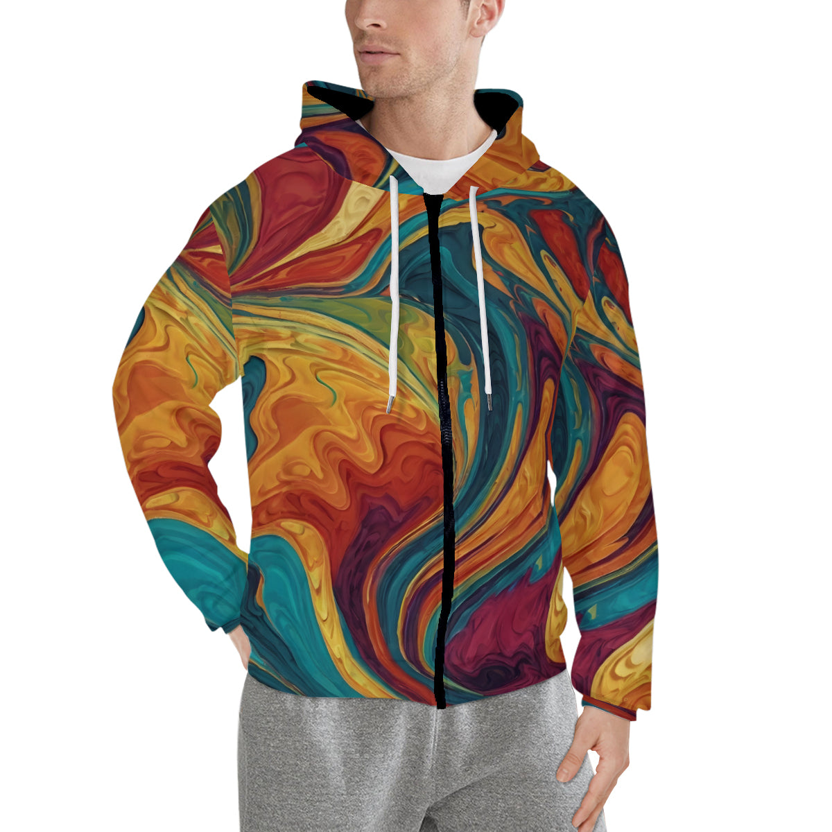 Colorful Design All-Over Print Men's Zip Hoodie with Pockets | Polyester