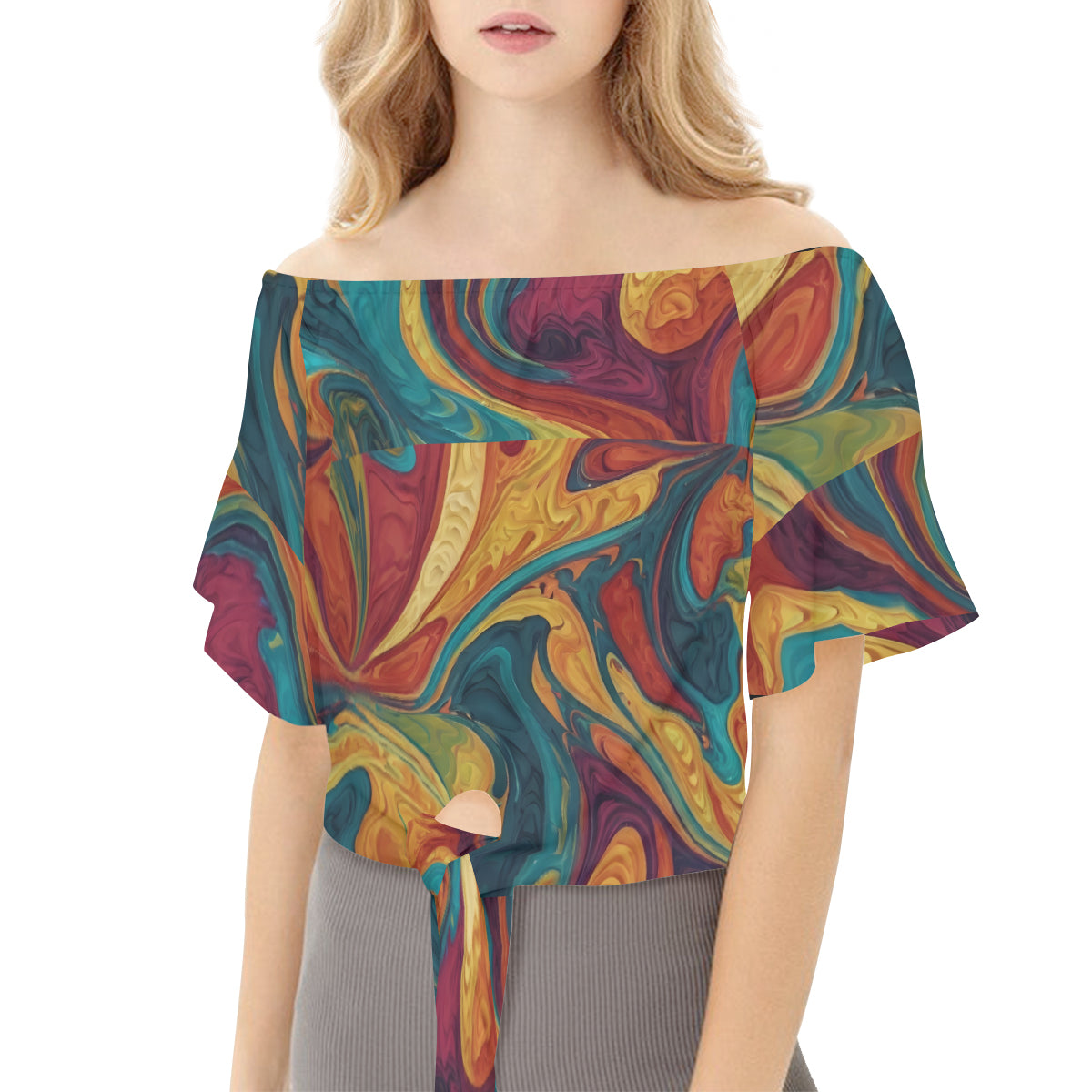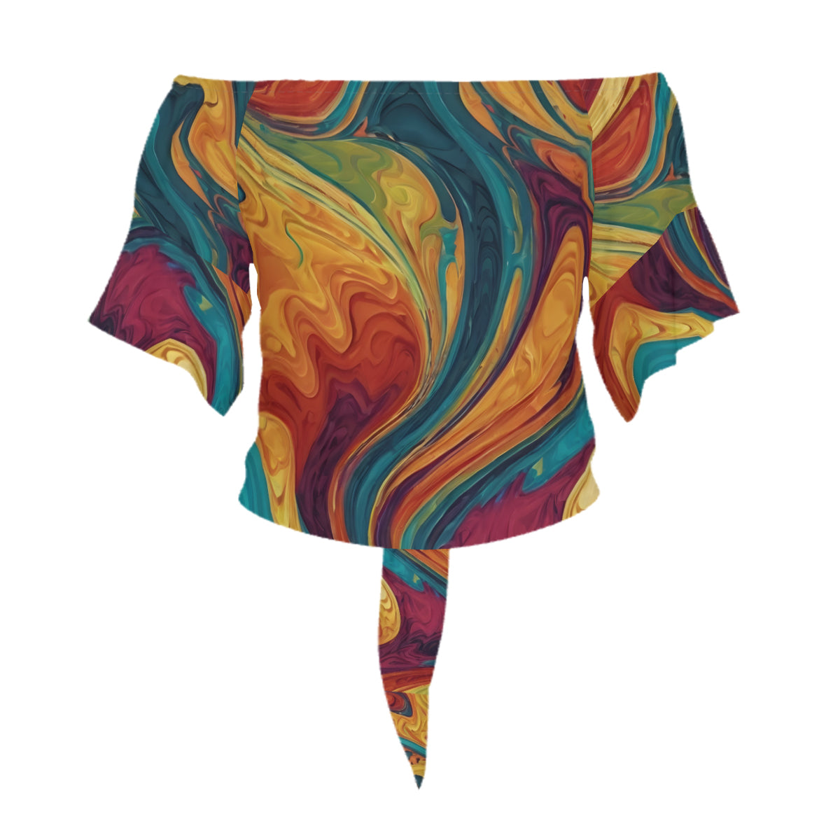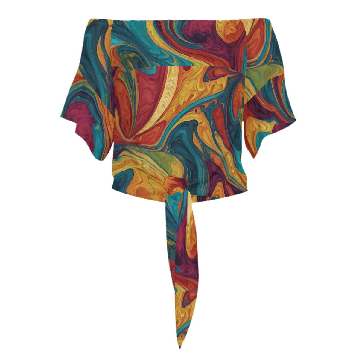 All-Over Print Women's One-shoulder Tie Short Sleeves T-shirt | Polyester