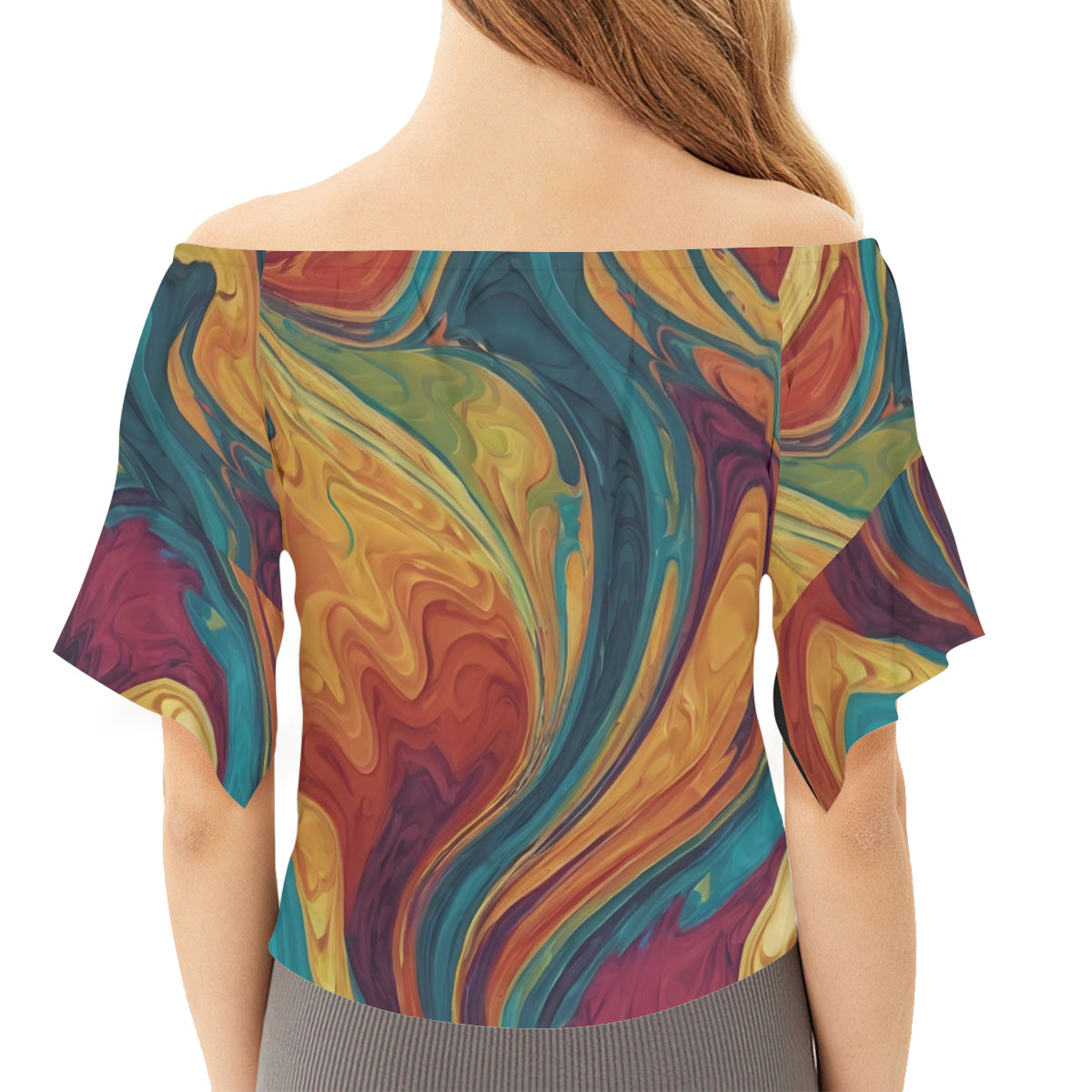 Colorful Design Women's One-shoulder Tie Short Sleeves T-shirt | Polyester