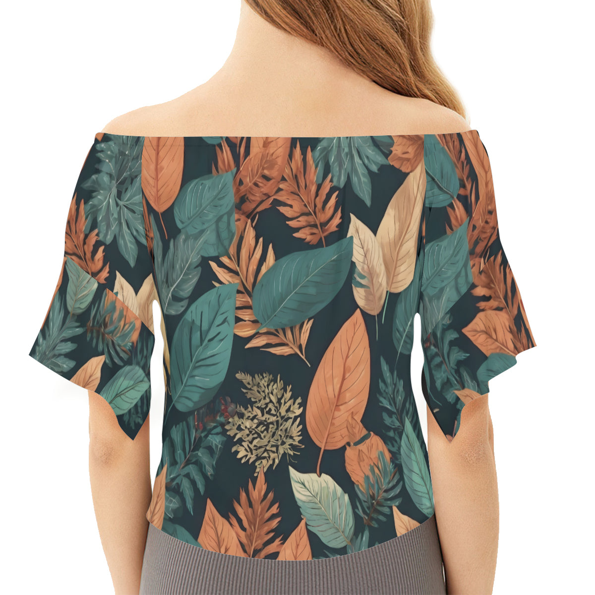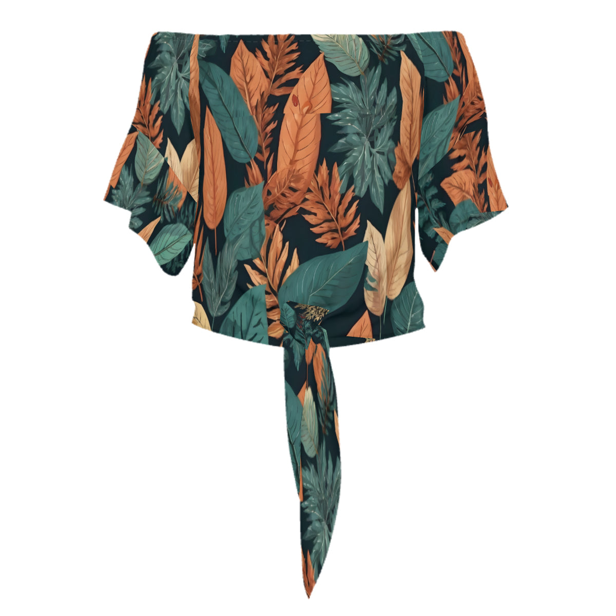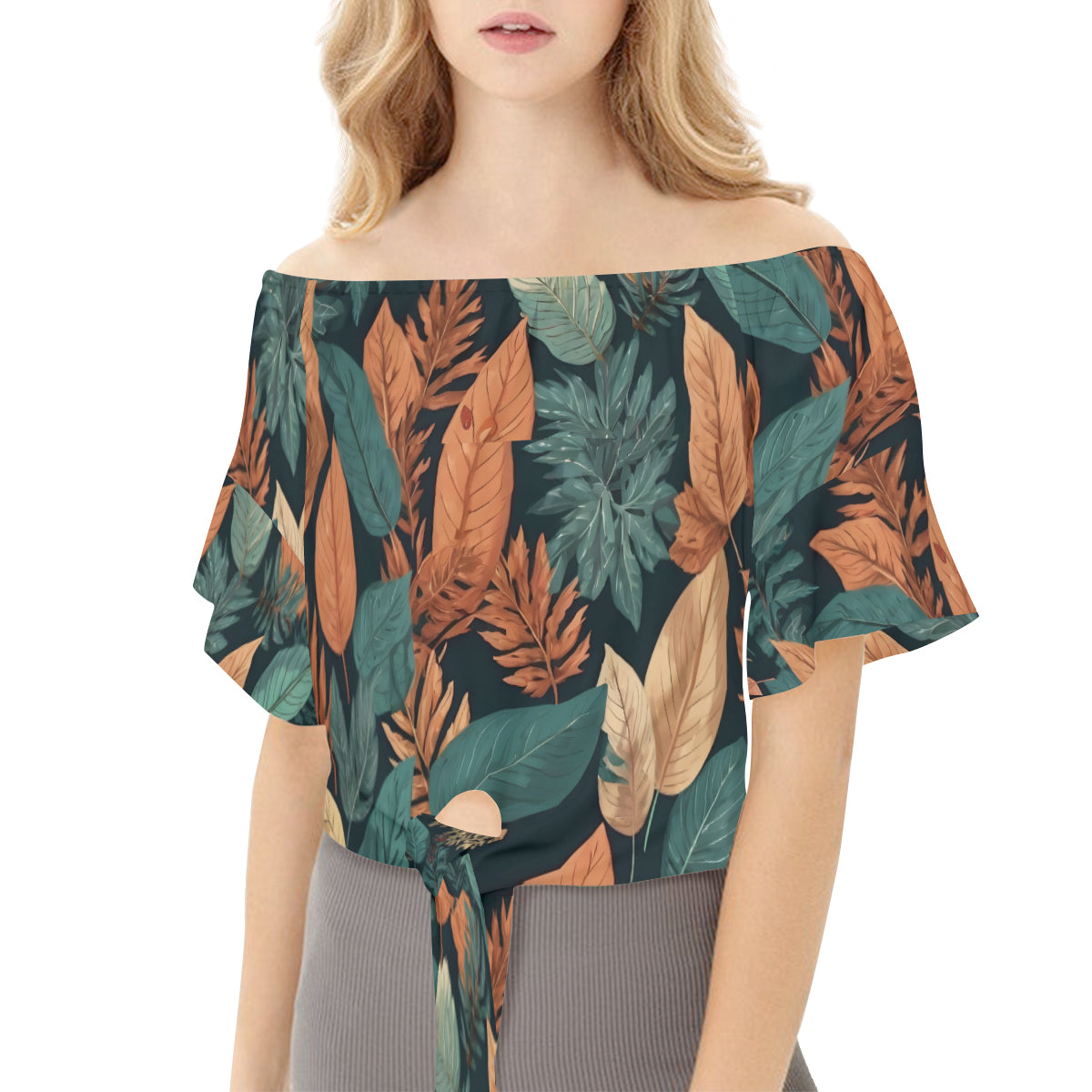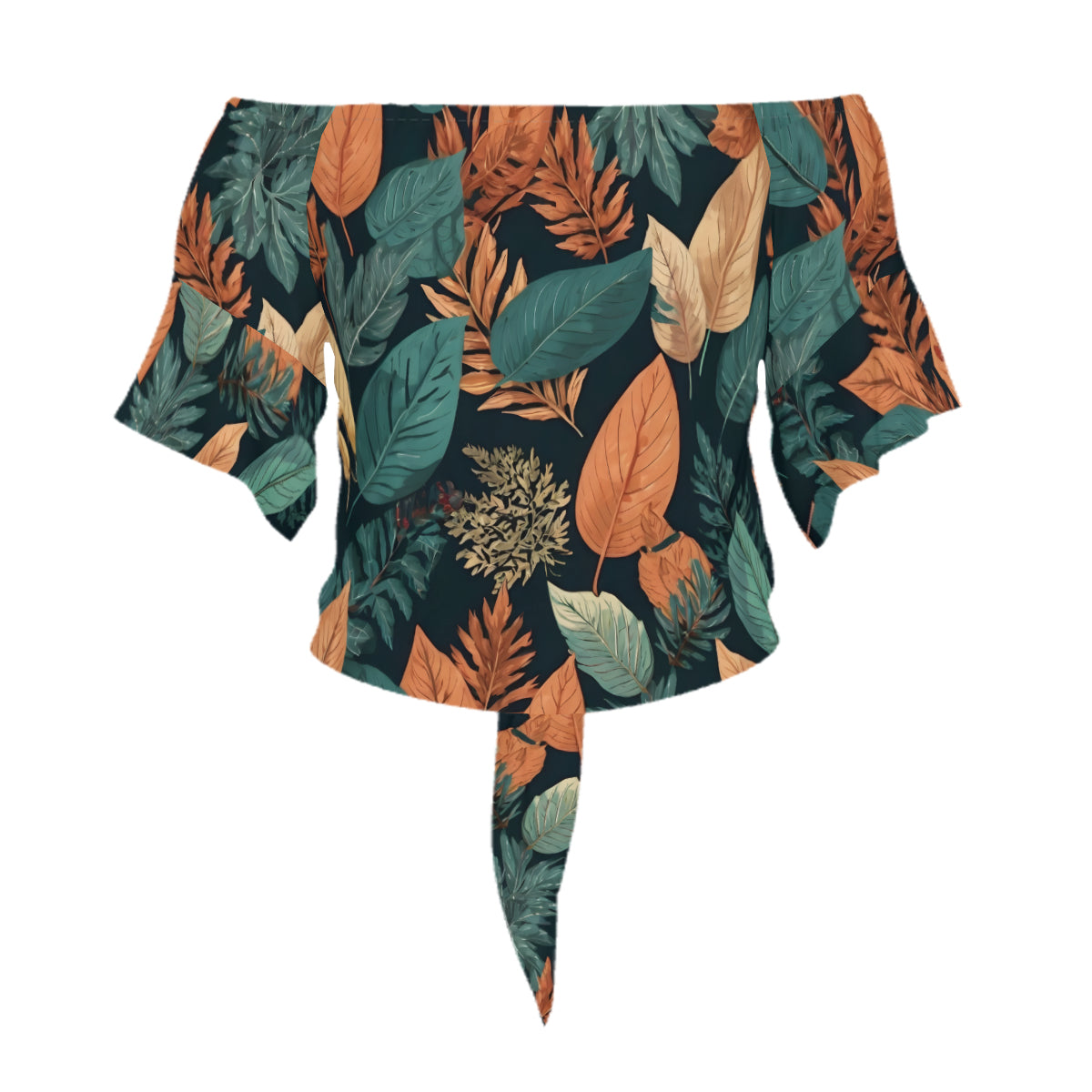 Design area: All-Over Print Colorful Leaves Women's One-shoulder Tie Short Sleeves T-shirt | Polyester