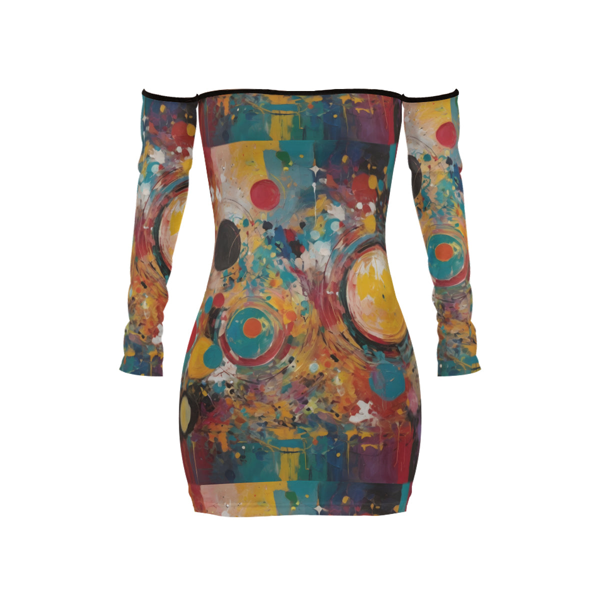 Design area: All-Over Print Crazy Design Women's Off-shoulder Back Lace-up Dress | Polyester