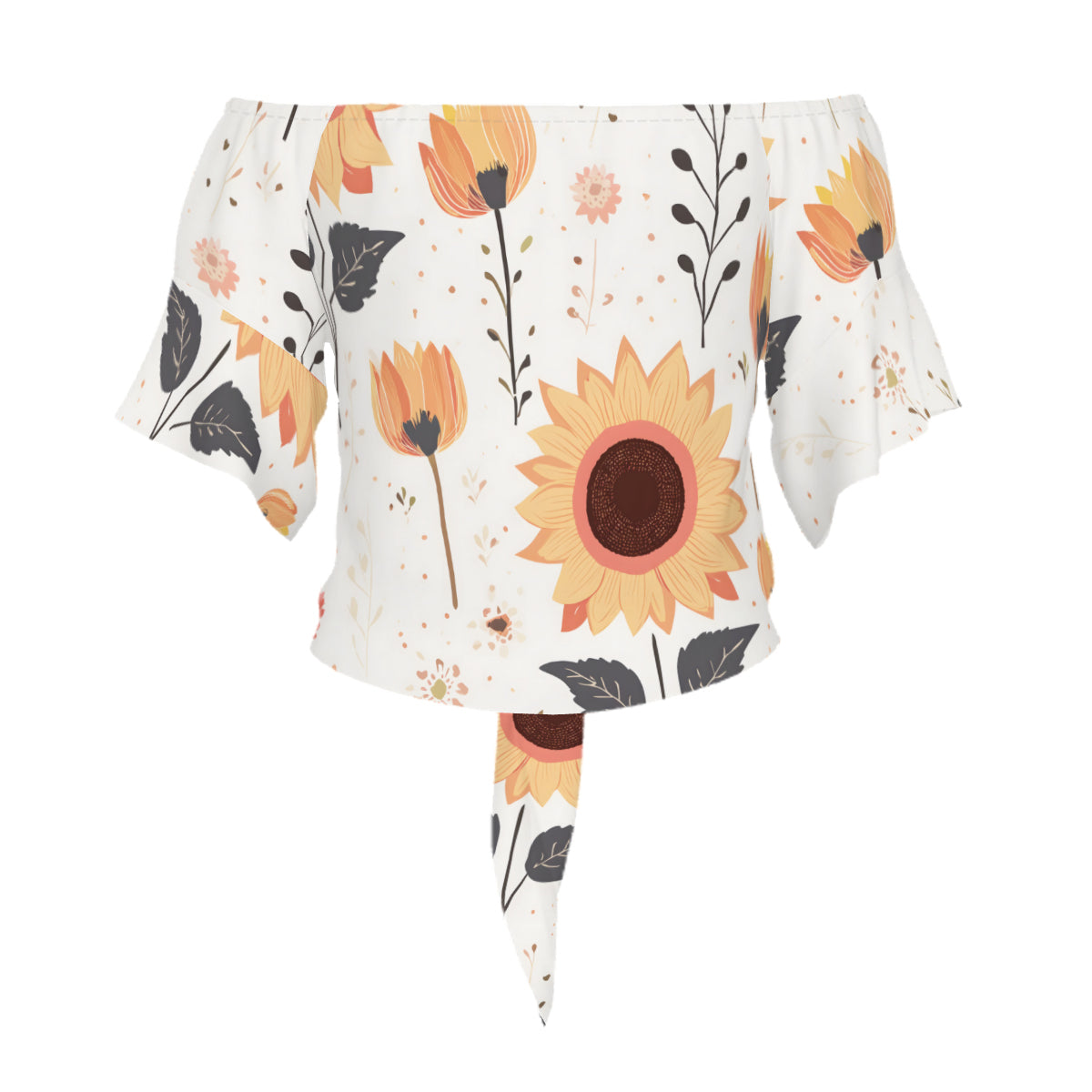 Design area: All-Over Print Floral Beauty Women's One-shoulder Tie Short Sleeves T-shirt | Polyester