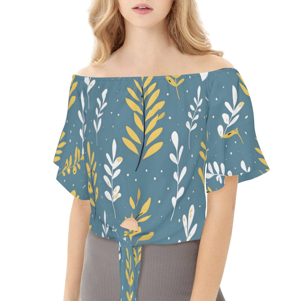 Design area: All-Over Print Floral Blue Women's One-shoulder Tie Short Sleeves T-shirt | Polyester