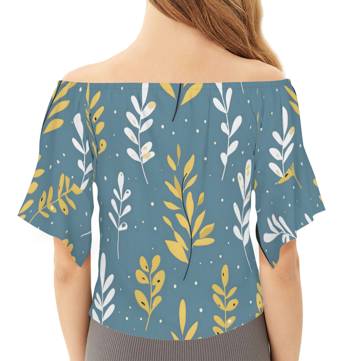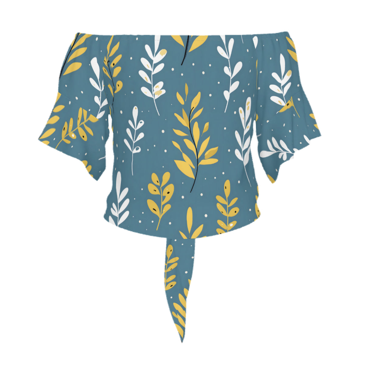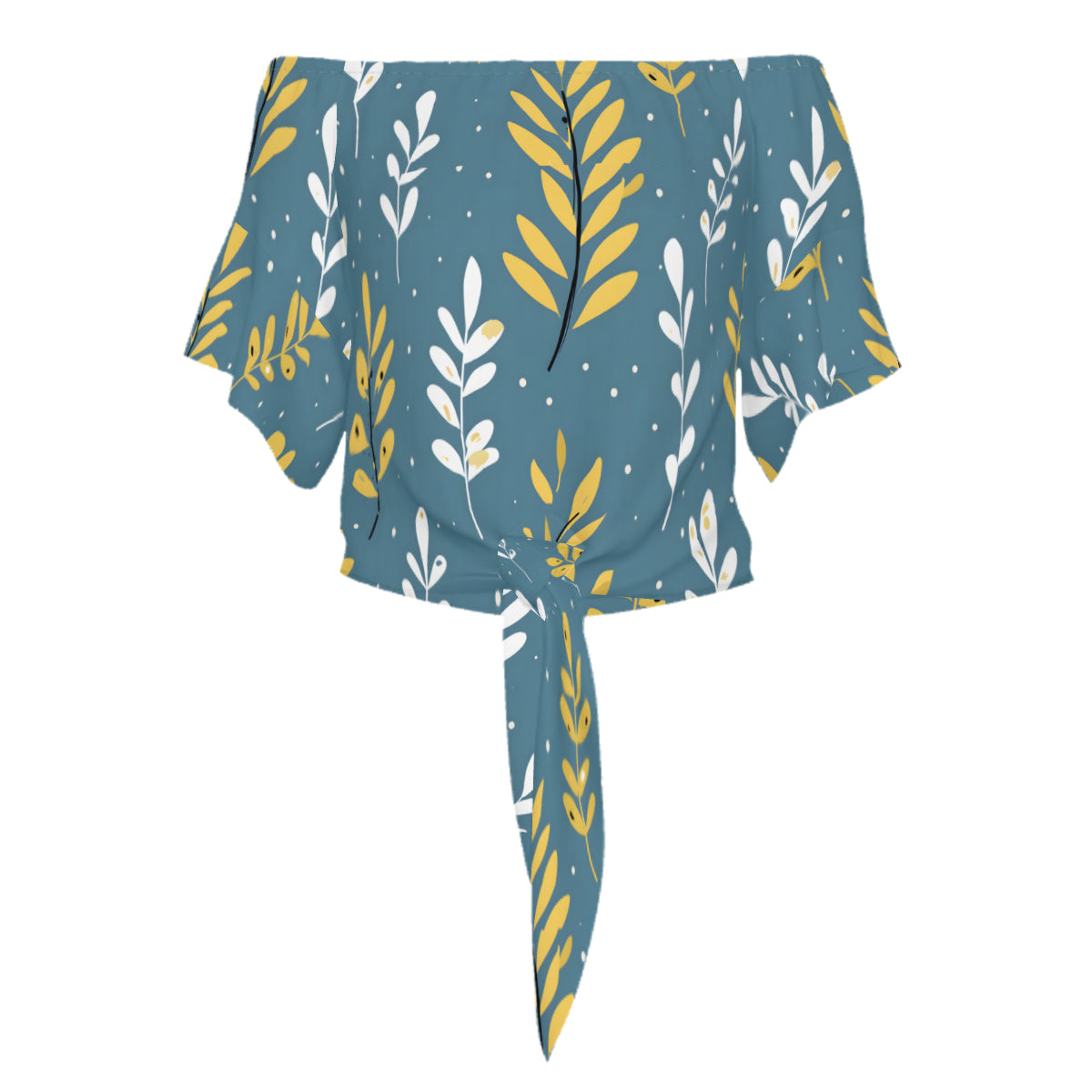 Floral Blue Women's One-shoulder Tie Short Sleeves T-shirt | Polyester