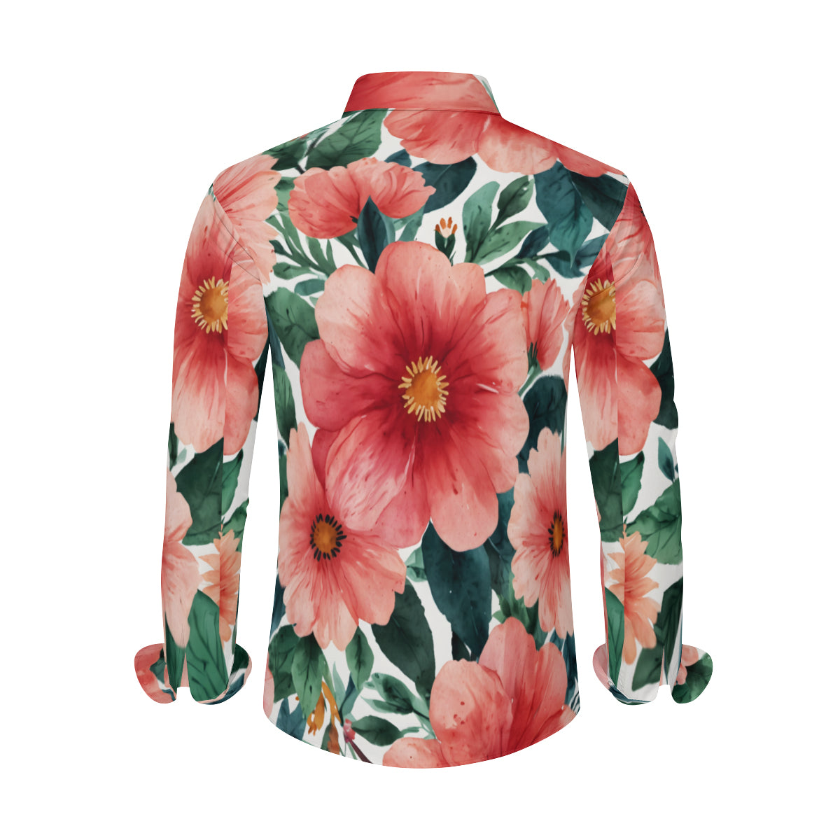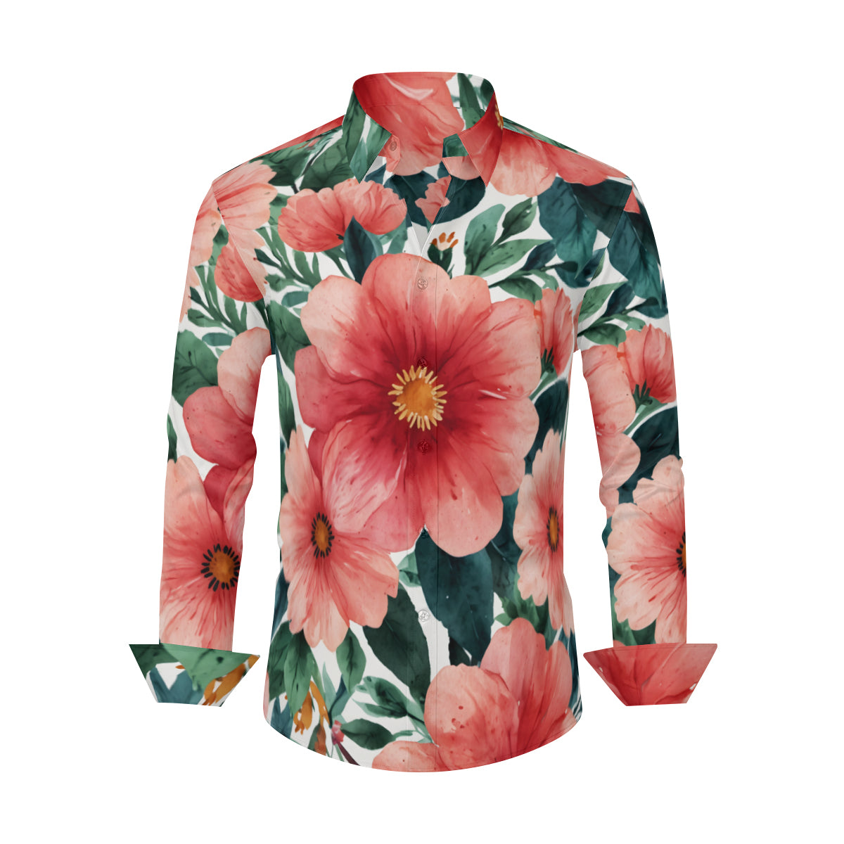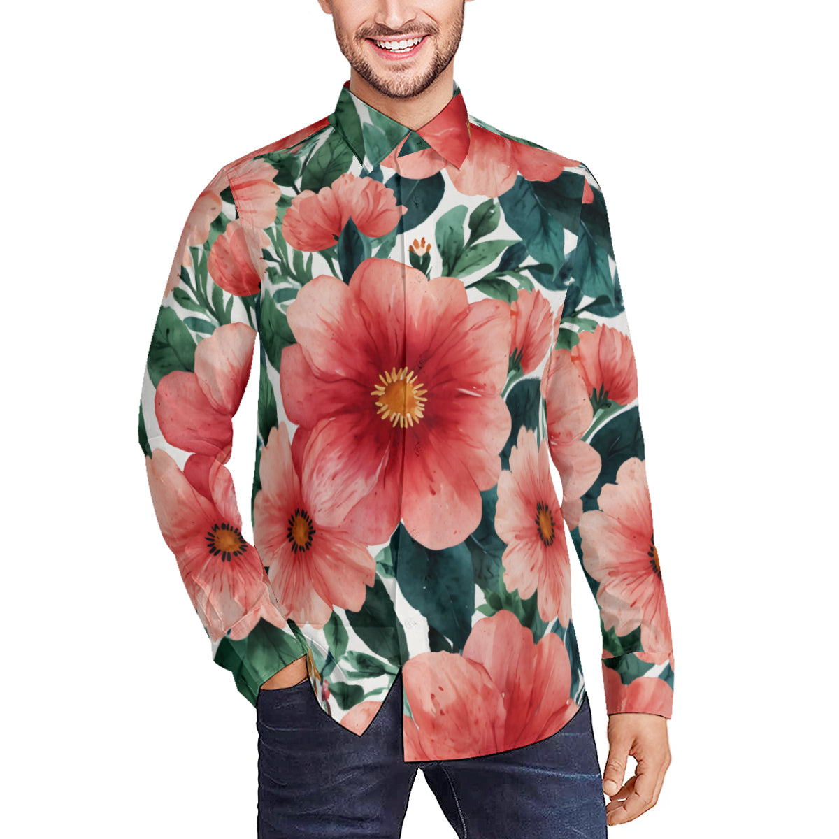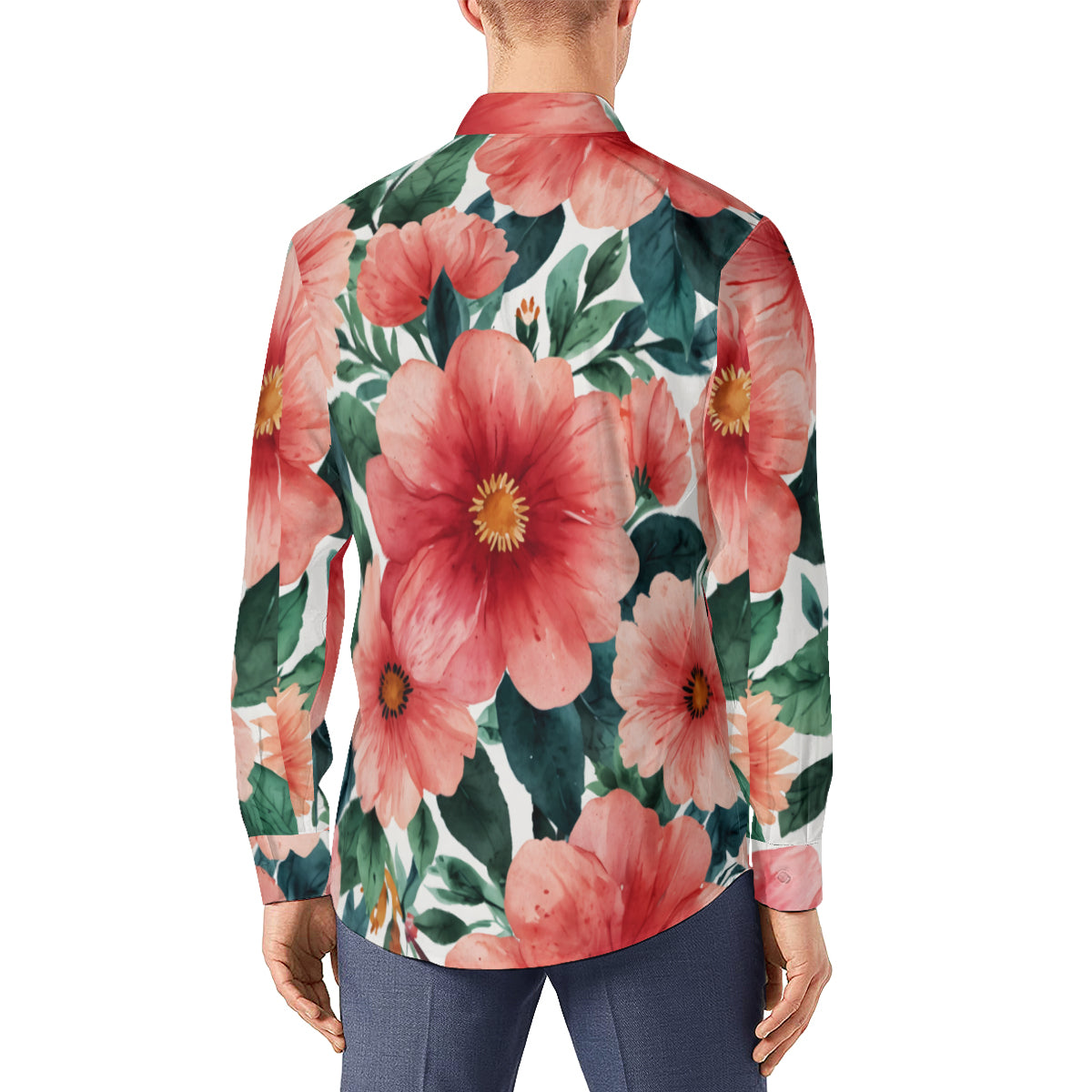 Floral Men's Classic Long-Sleeved Shirt | Polyester