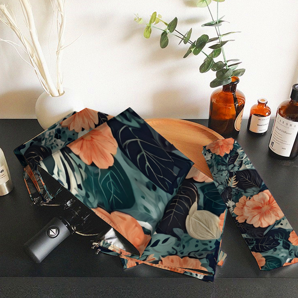 Floral Red Automatic Tri-Fold Black Rubber Umbrella (Outside Printing)|Polyester
