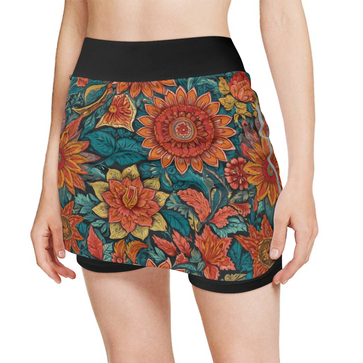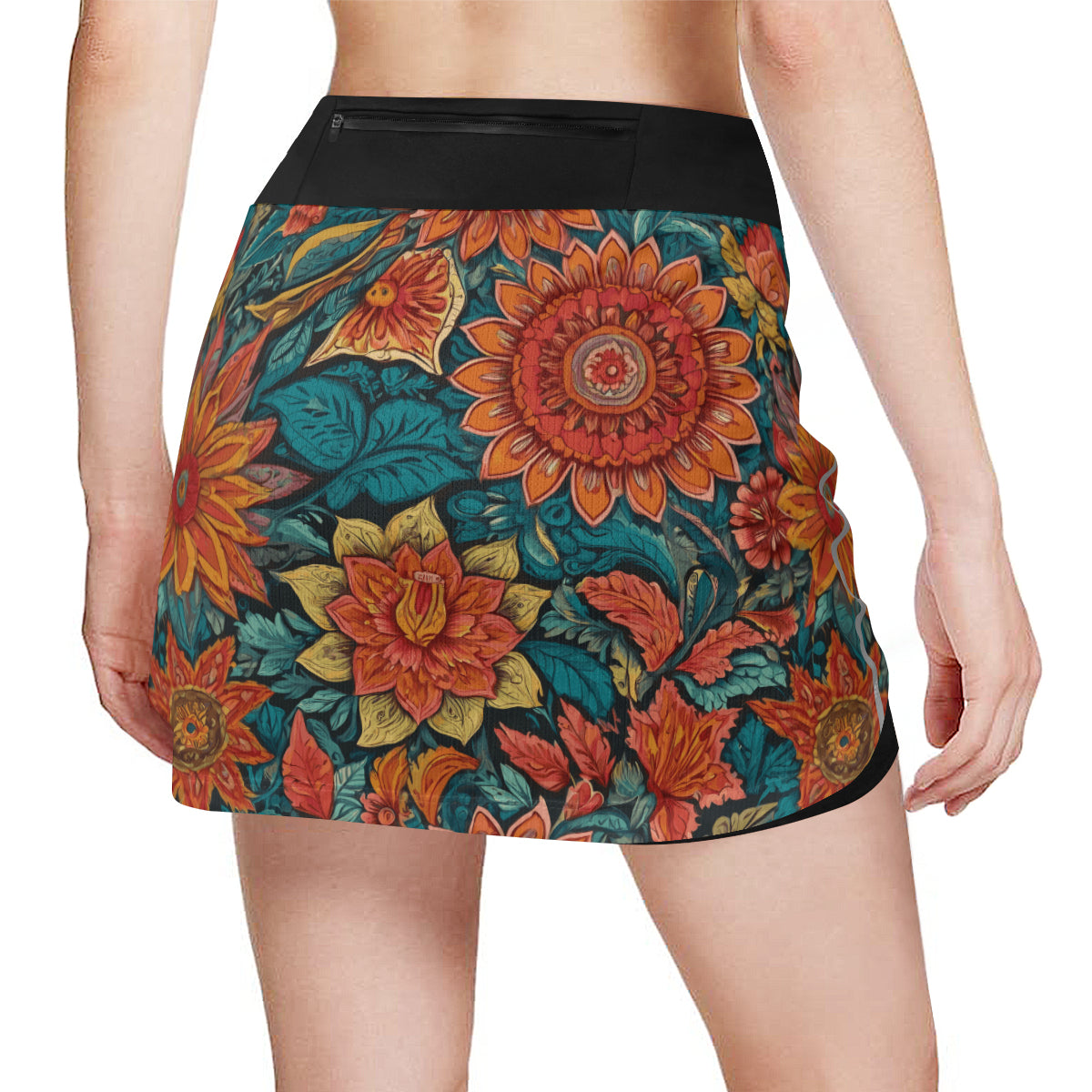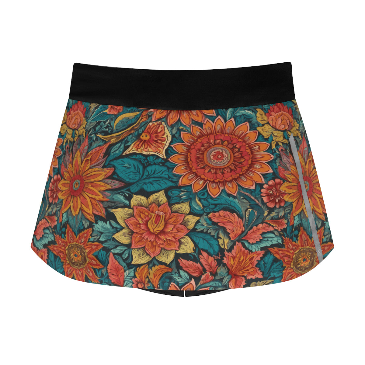 Floral Red All-Over Print Women's Sports Skirt | Polyester